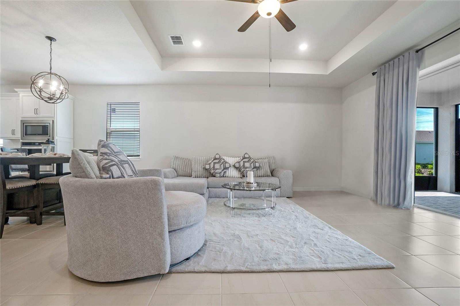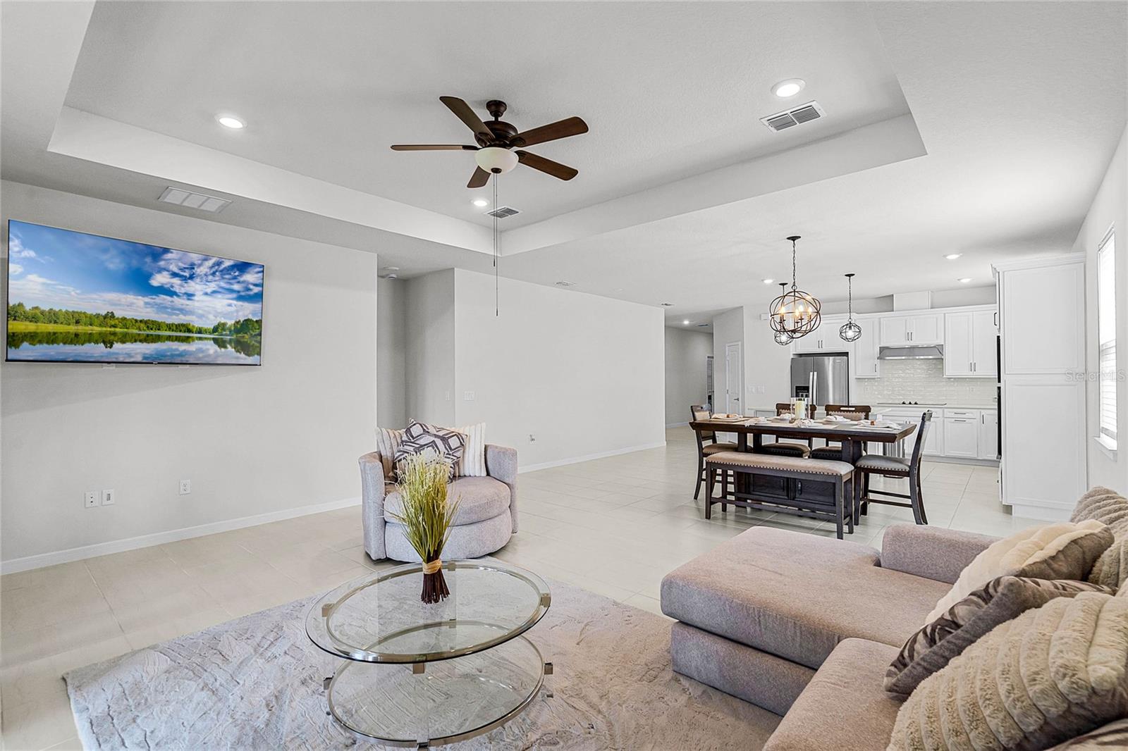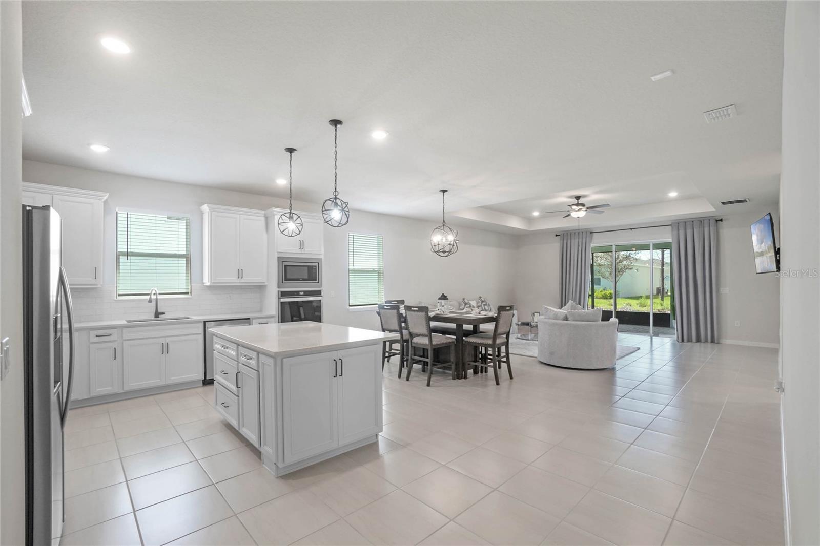 Melhor do que o novo modelo Spruce que está pronto para morar. Meticulosamente elaborado, 3 quartos e 2 banheiros oferecem um ambiente versátil e flexível e uma abundância de luz natural por toda parte. A cozinha de conceito aberto dos sonhos do chef, elegantes bancadas de quartzo Lyra, grande ilha central, armários claros com gavetas com fechamento suave. Despensa de canto, eletrodomésticos embutidos, geladeira de aço inoxidável e backsplash elegante de azulejos de metrô chanfrados. O exaustor com ventilação direta e eficiência energética acrescenta estilo e função. Café convidativo que flui para a sala de reunião, tetos com bandejas, TV de tela plana de 75" e está perfeitamente conectado à varanda coberta através de portas deslizantes - ideal para entretenimento e relaxamento. Azulejos cerâmicos enfeitam as áreas de estar, enquanto carpetes macios e resistentes a manchas realçam conforto nos quartos e na sala flexível. A suíte master é um retiro privado com tetos de bandeja, amplo closet e banheiro privativo, pias duplas, box amplo com azulejos de design e box com moldura de vidro. luminárias de cozinha, varanda com tela, piso frio, garagem grande para 2 carros com armazenamento extra, entrada de automóveis pavimentada em pedra e atualização de fiação de piscina/banheira de hidromassagem. Rodeado pela natureza, campos de golfe locais, restaurantes encantadores, lojas de antiguidades e entretenimento a poucos minutos de distância. Passe os fins de semana explorando as fontes naturais próximas ou relaxando em New Smyrna Beach. O condomínio oferece tranquilidade e arborização, privacidade e comodidades fantásticas: internet de alta velocidade, TV, tecnologia Smart Home, trilhas arborizadas para caminhada, mesas de piquenique, piscina com cabana, playground. HOA baixo, sem taxas de CDD. Mistura perfeita de vida moderna e beleza natural, casa deslumbrante. Não perca a chance de torná-lo seu! (uma foto foi virtualmente encenada.)