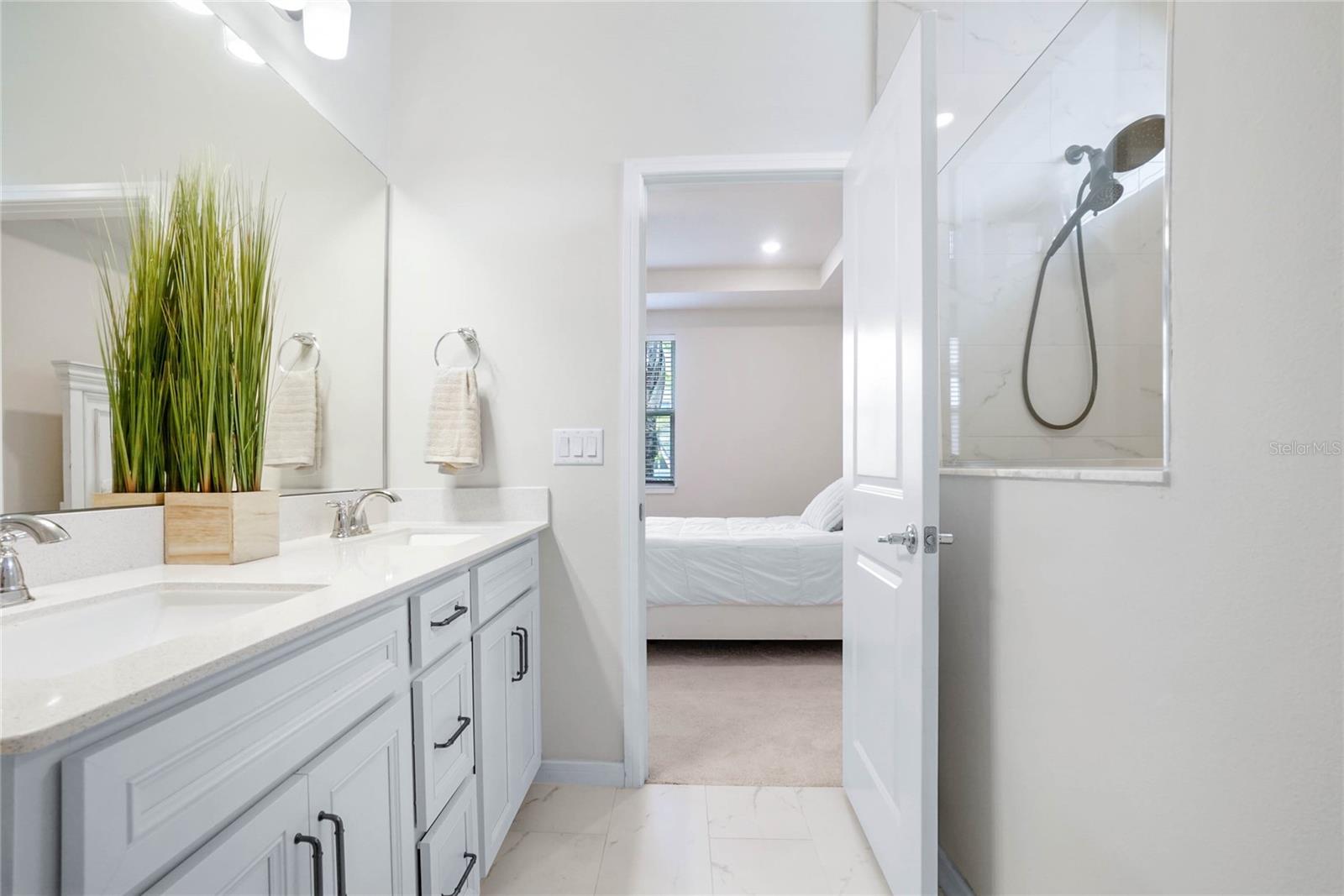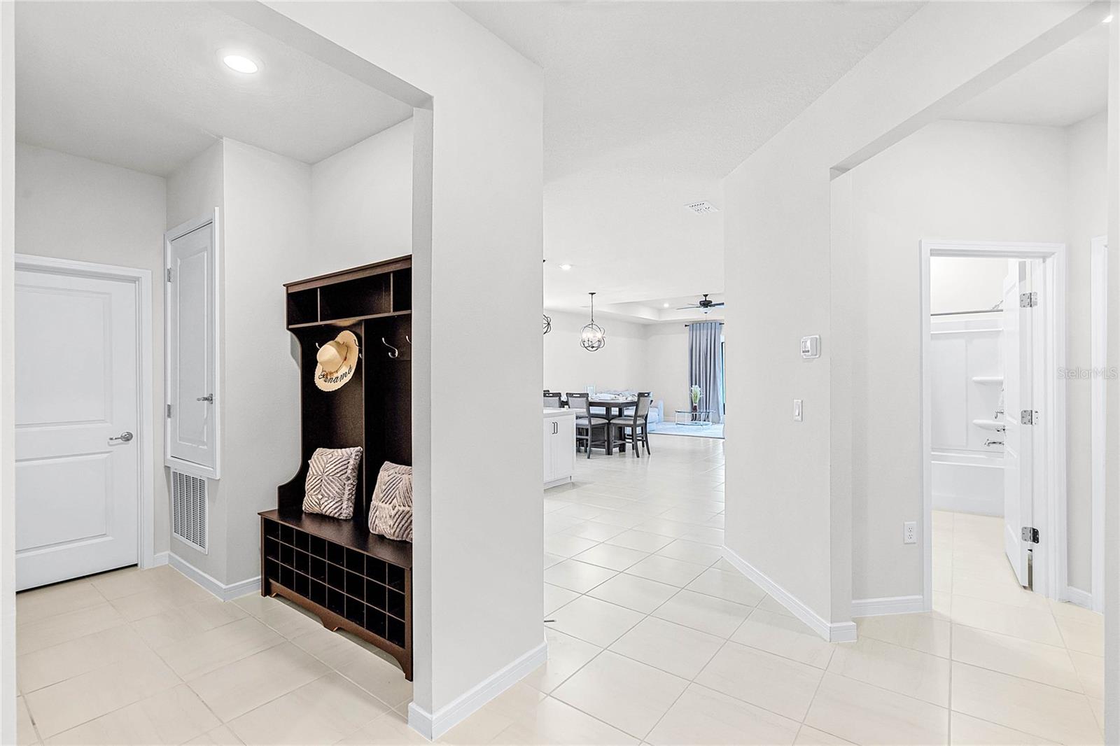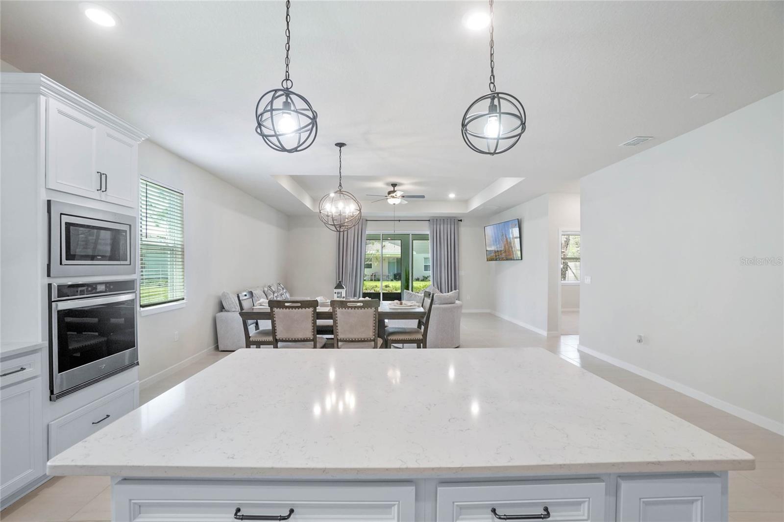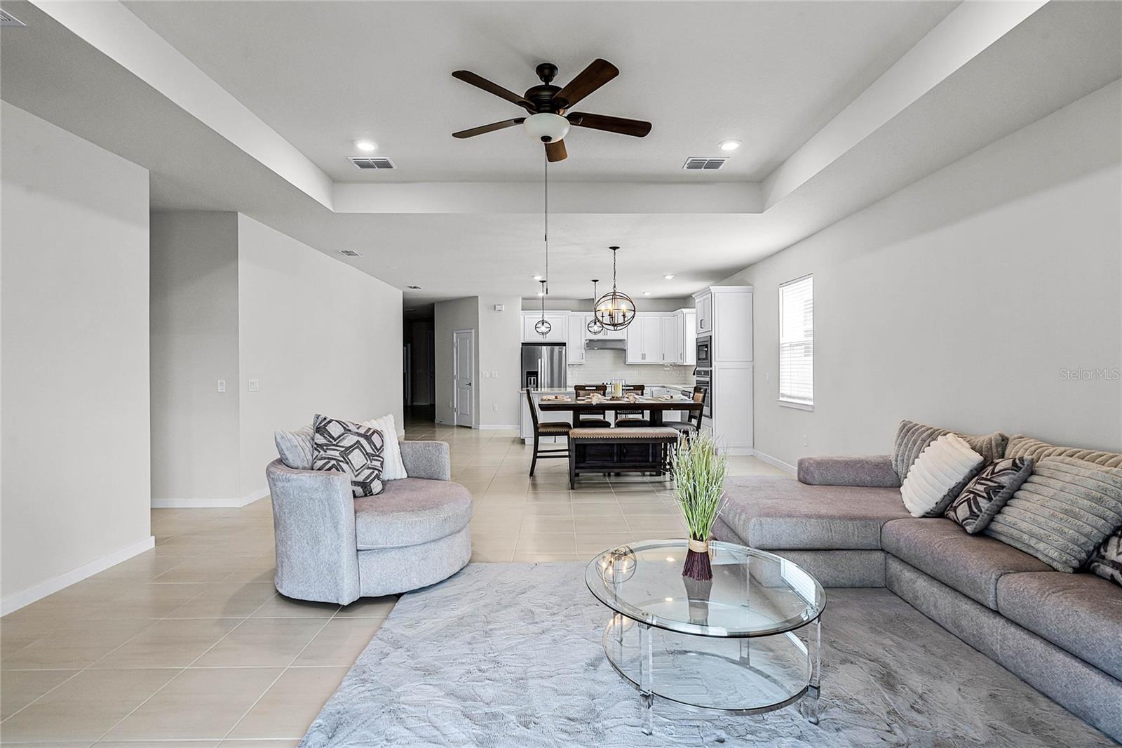 Melhor do que o novo modelo Spruce que está pronto para morar. Meticulosamente elaborado, 3 quartos e 2 banheiros oferecem um ambiente versátil e flexível e uma abundância de luz natural por toda parte. A cozinha de conceito aberto dos sonhos do chef, elegantes bancadas de quartzo Lyra, grande ilha central, armários claros com gavetas com fechamento suave. Despensa de canto, eletrodomésticos embutidos, geladeira de aço inoxidável e backsplash elegante de azulejos de metrô chanfrados. O exaustor com ventilação direta e eficiência energética acrescenta estilo e função. Café convidativo que flui para a sala de reunião, tetos com bandejas, TV de tela plana de 75" e está perfeitamente conectado à varanda coberta através de portas deslizantes - ideal para entretenimento e relaxamento. Azulejos cerâmicos enfeitam as áreas de estar, enquanto carpetes macios e resistentes a manchas realçam conforto nos quartos e na sala flexível. A suíte master é um retiro privado com tetos de bandeja, amplo closet e banheiro privativo, pias duplas, box amplo com azulejos de design e box com moldura de vidro. luminárias de cozinha, varanda com tela, piso frio, garagem grande para 2 carros com armazenamento extra, entrada de automóveis pavimentada em pedra e atualização de fiação de piscina/banheira de hidromassagem. Rodeado pela natureza, campos de golfe locais, restaurantes encantadores, lojas de antiguidades e entretenimento a poucos minutos de distância. Passe os fins de semana explorando as fontes naturais próximas ou relaxando em New Smyrna Beach. O condomínio oferece tranquilidade e arborização, privacidade e comodidades fantásticas: internet de alta velocidade, TV, tecnologia Smart Home, trilhas arborizadas para caminhada, mesas de piquenique, piscina com cabana, playground. HOA baixo, sem taxas de CDD. Mistura perfeita de vida moderna e beleza natural, casa deslumbrante. Não perca a chance de torná-lo seu! (uma foto foi virtualmente encenada.)