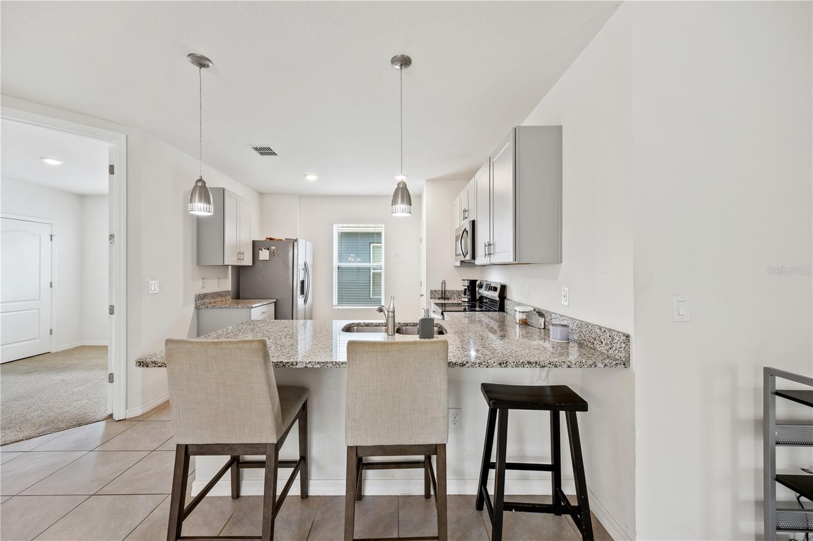 Bem-vindo a esta bela casa de 3 quartos e 2 banheiros localizada na procurada comunidade de Victoria Oaks em Deland, FL. Construída em 2019, esta residência meticulosamente mantida oferece uma vida moderna com uma espaçosa garagem para 2 carros e uma construção em bloco durável. No interior, a casa apresenta um layout aberto e arejado, apresentando a popular planta Flex Space que permite o uso versátil do espaço. A cozinha gourmet é um destaque, equipada com bancadas em granito, eletrodomésticos em aço inox e um prático balcão para café da manhã, perfeito para refeições casuais e divertidas. As áreas de estar estão repletas de luz natural, criando um ambiente acolhedor e convidativo. A Suíte Master é espaçosa e possui closet, além de banheiro privativo com pia dupla de granito e box amplo. Os quartos de hóspedes adicionais são espaçosos e o banheiro de hóspedes está bem equipado. Os residentes de Victoria Oaks têm acesso a uma variedade de comodidades, incluindo piscina com entrada zero, academia, quadras de tênis, vôlei de praia e trilhas panorâmicas para caminhada. Os entusiastas do golfe irão apreciar a proximidade do Campo de Golfe Victoria Hills. O pátio privado é ideal para reuniões ao ar livre ou relaxar sob o sol da Flórida, e o sistema automático de irrigação do gramado mantém o paisagismo vibrante durante todo o ano. O HOA oferece valor agregado com serviços como plano Spectrum TV Select, Internet de fibra com WiFi e cuidado de gramado. Esta casa pronta para morar oferece uma oportunidade fantástica de experimentar o estilo de vida e as comodidades excepcionais de Victoria Oaks e Deland, FL. Contate-nos hoje para agendar uma visita e tornar esta casa deslumbrante sua!