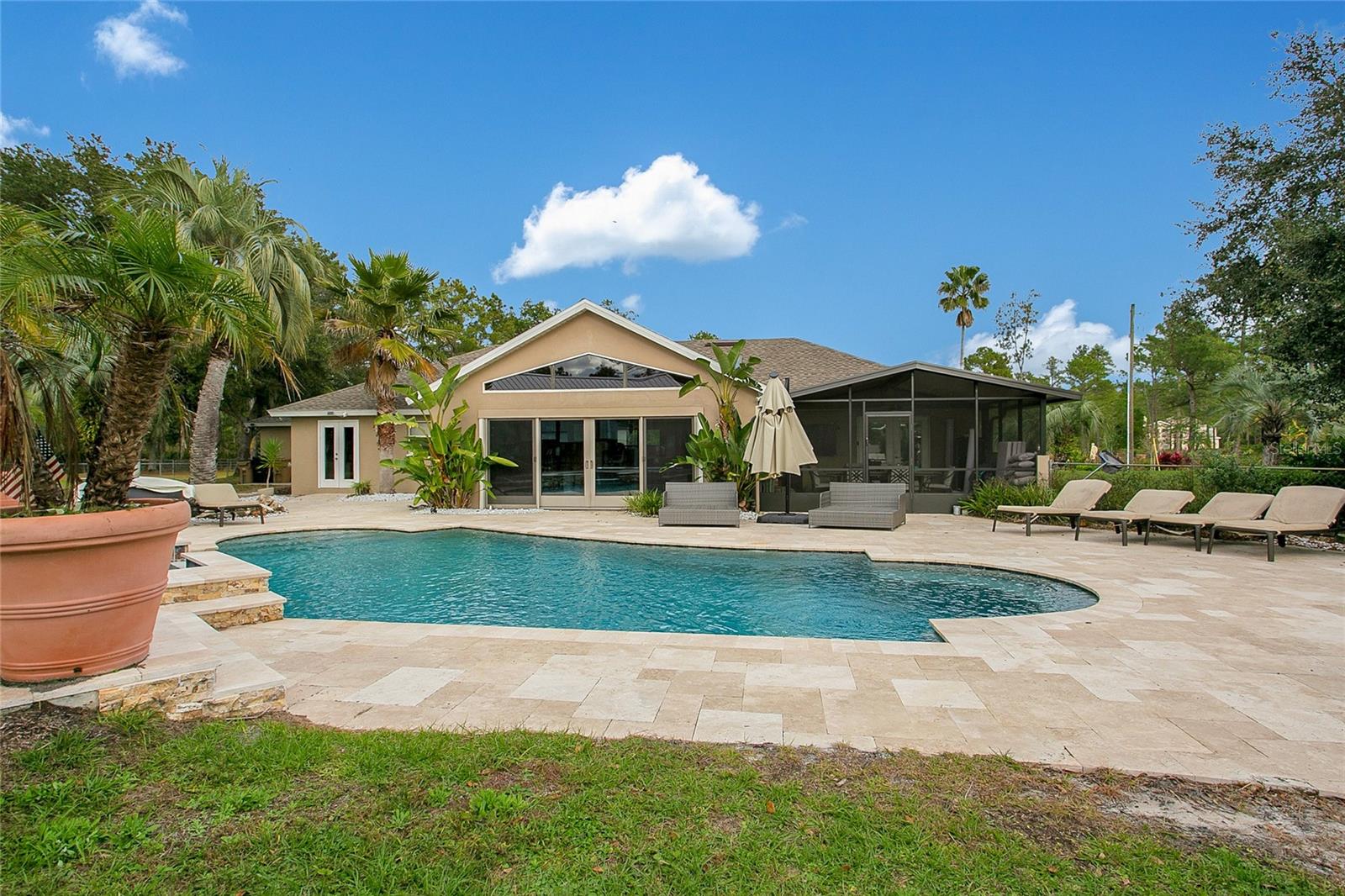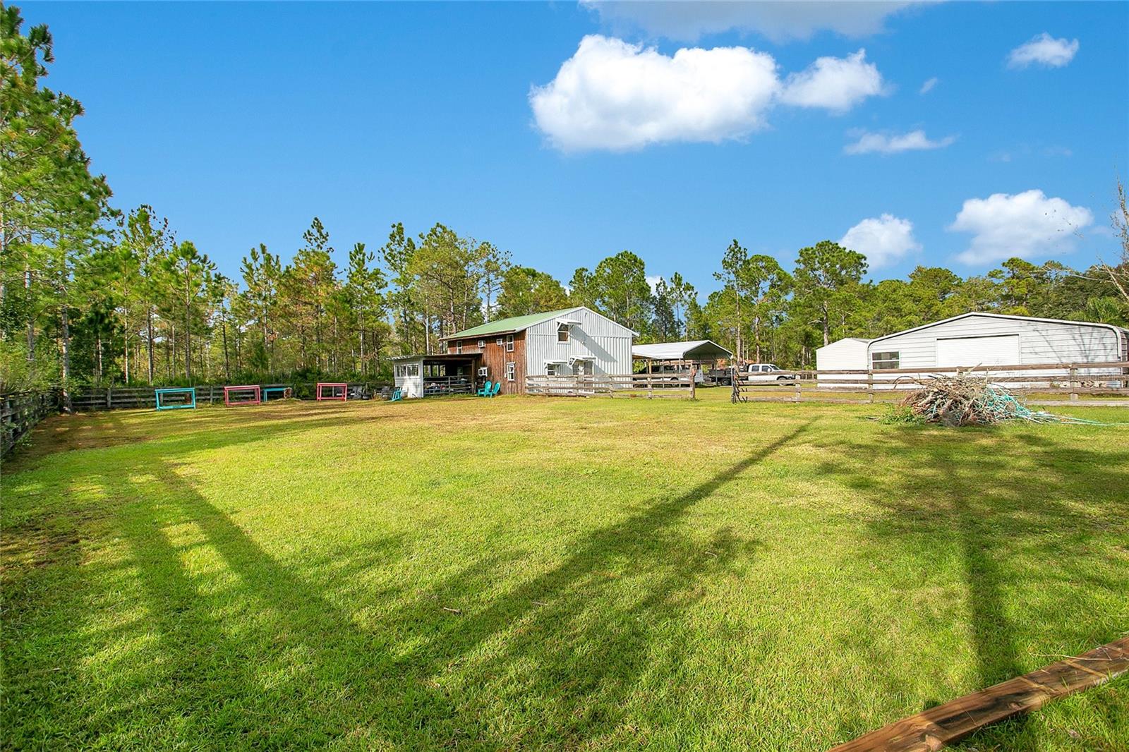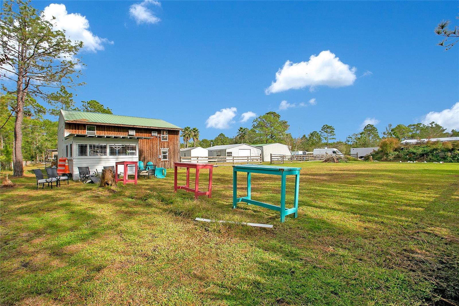 Bem-vindo a Deland, Flórida. Esta propriedade imaculada está situada em 5 acres exuberantes na pitoresca DeLand, FL, e oferece uma oportunidade excepcional para uma vida de luxo combinada com um potencial de renda lucrativo. Com mais de 7.200 pés quadrados de área total, esta propriedade inclui três casas geradoras de renda, tornando-a perfeita para investidores ou para quem deseja ter várias propriedades. Começando pela residência principal, ampla e elegante, com uma planta espaçosa que inclui vários quartos, acabamentos luxuosos e muito espaço para entretenimento. Além disso, desfrute de um fluxo constante de receitas provenientes das casas adicionais na propriedade, cada uma com seu próprio espaço privativo. Embora esta casa tenha muitos recursos excelentes, o lindo quintal onde você pode mergulhar para relaxar em sua piscina estilo resort, perfeita para reuniões familiares ou receber convidados, até mesmo sessões de fotos para capas de revistas. As possibilidades são infinitas com este quintal de tirar o fôlego. Enquanto estiver no quintal, você pode caminhar até sua oficina automotiva coberta de grandes dimensões, um sonho tornado realidade para amadores ou profissionais, a oficina está equipada para qualquer necessidade automotiva. Esta propriedade possui espaço de armazenamento adicional no local para oferecer bastante espaço para manter seus pertences organizados e seguros. Aproveite a paz e a privacidade da vida no campo e ao mesmo tempo esteja perto de todas as comodidades de DeLand. O fácil acesso às principais rodovias garante viagens rápidas para Orlando, Daytona Beach e outras áreas vizinhas. Não perca esta oportunidade única! Esteja você procurando uma casa luxuosa com espaço para crescer ou uma propriedade de investimento com potencial de renda imediata, esta propriedade DeLand é um achado raro. Agende hoje mesmo seu tour privado e experimente as possibilidades.
