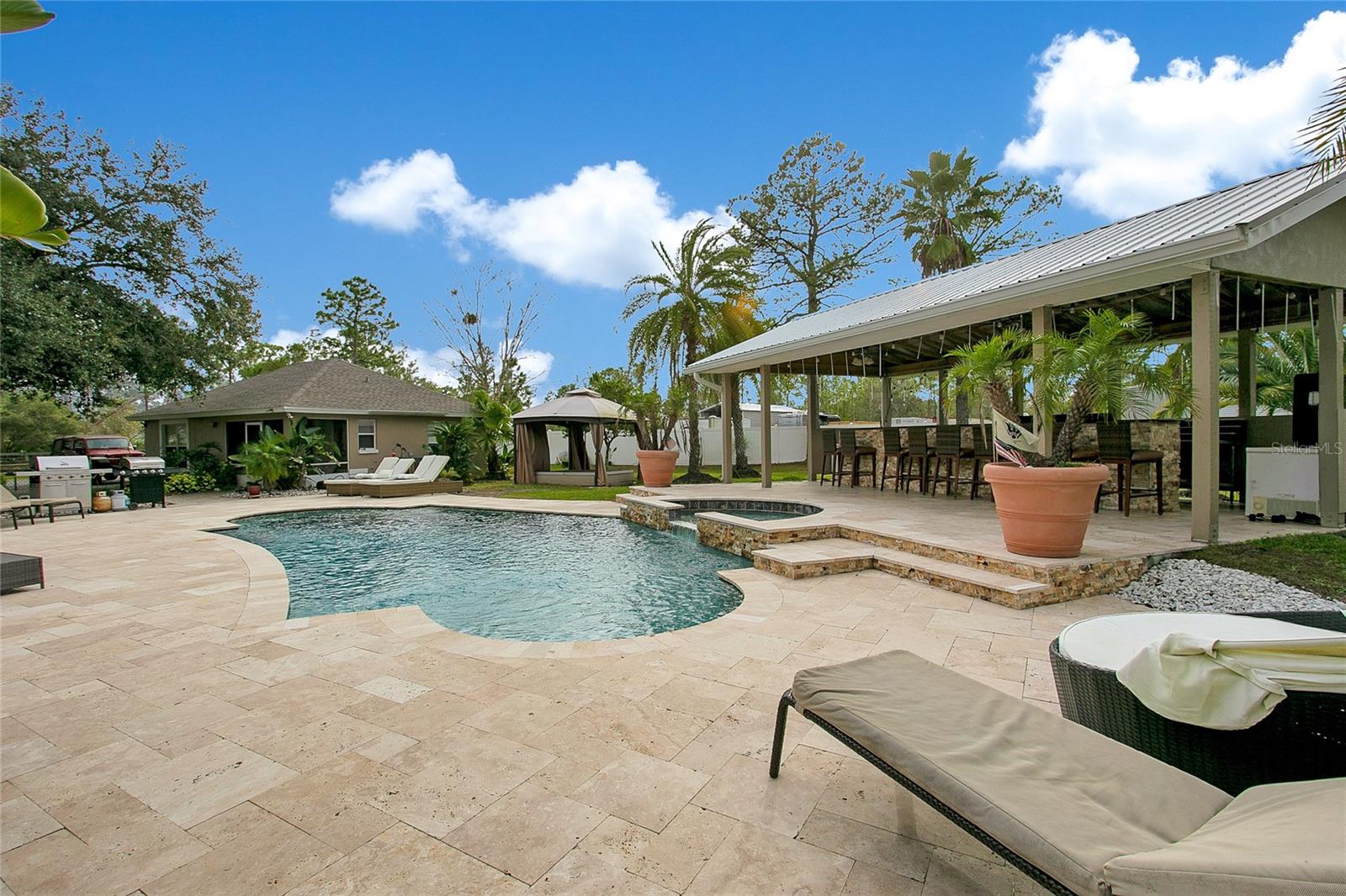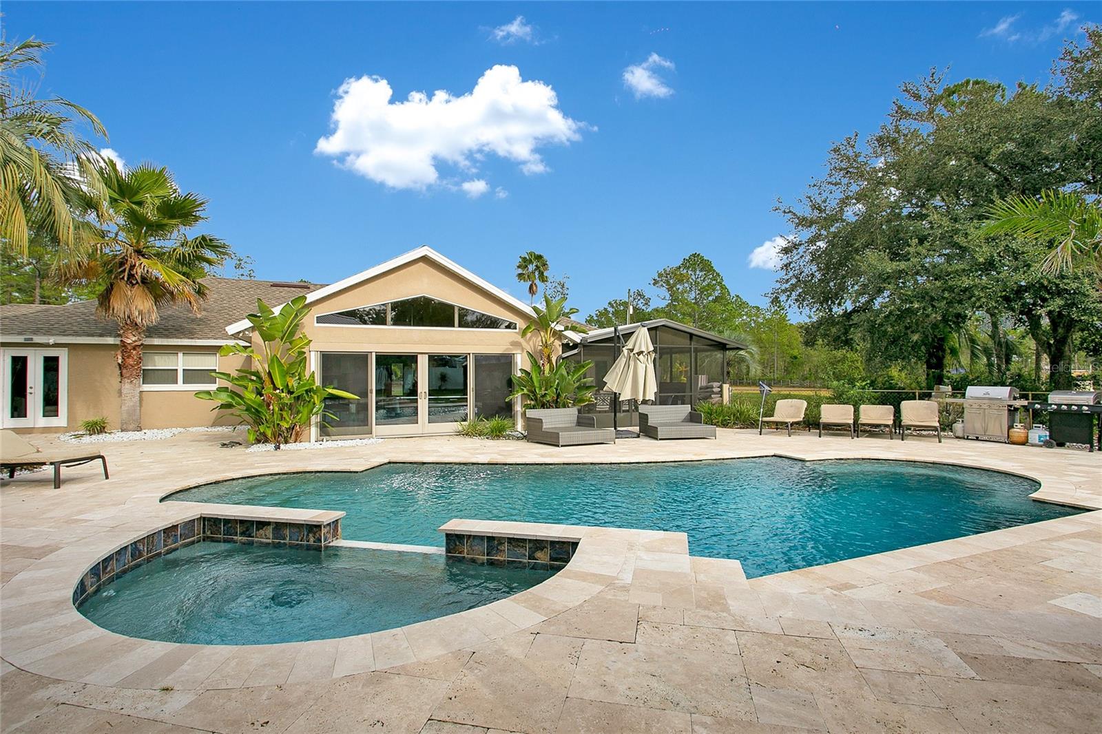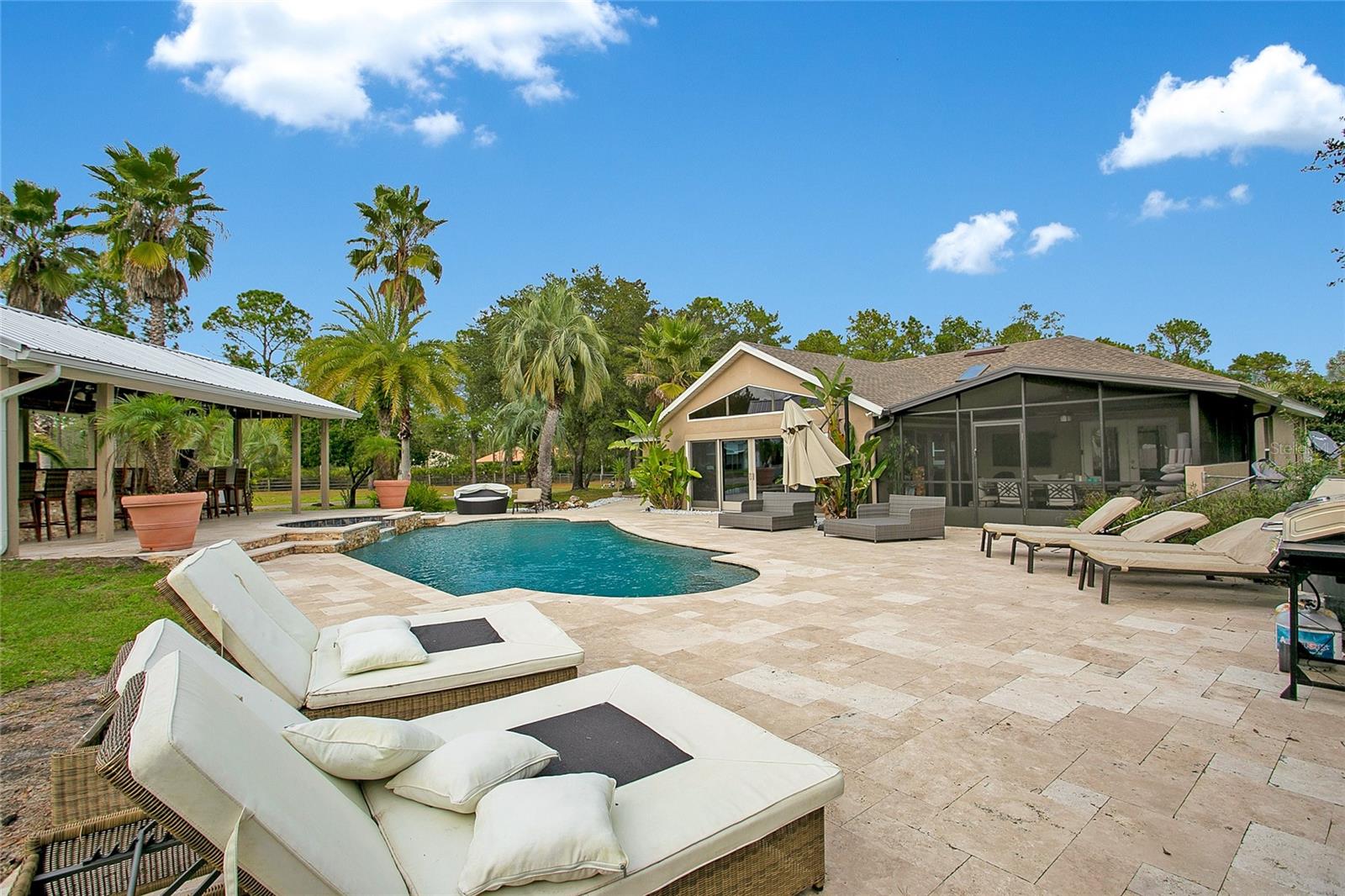Bem-vindo a Deland, Flórida. Esta propriedade imaculada está situada em 5 acres exuberantes na pitoresca DeLand, FL, e oferece uma oportunidade excepcional para uma vida de luxo combinada com um potencial de renda lucrativo. Com mais de 7.200 pés quadrados de área total, esta propriedade inclui três casas geradoras de renda, tornando-a perfeita para investidores ou para quem deseja ter várias propriedades. Começando pela residência principal, ampla e elegante, com uma planta espaçosa que inclui vários quartos, acabamentos luxuosos e muito espaço para entretenimento. Além disso, desfrute de um fluxo constante de receitas provenientes das casas adicionais na propriedade, cada uma com seu próprio espaço privativo. Embora esta casa tenha muitos recursos excelentes, o lindo quintal onde você pode mergulhar para relaxar em sua piscina estilo resort, perfeita para reuniões familiares ou receber convidados, até mesmo sessões de fotos para capas de revistas. As possibilidades são infinitas com este quintal de tirar o fôlego. Enquanto estiver no quintal, você pode caminhar até sua oficina automotiva coberta de grandes dimensões, um sonho tornado realidade para amadores ou profissionais, a oficina está equipada para qualquer necessidade automotiva. Esta propriedade possui espaço de armazenamento adicional no local para oferecer bastante espaço para manter seus pertences organizados e seguros. Aproveite a paz e a privacidade da vida no campo e ao mesmo tempo esteja perto de todas as comodidades de DeLand. O fácil acesso às principais rodovias garante viagens rápidas para Orlando, Daytona Beach e outras áreas vizinhas. Não perca esta oportunidade única! Esteja você procurando uma casa luxuosa com espaço para crescer ou uma propriedade de investimento com potencial de renda imediata, esta propriedade DeLand é um achado raro. Agende hoje mesmo seu tour privado e experimente as possibilidades.