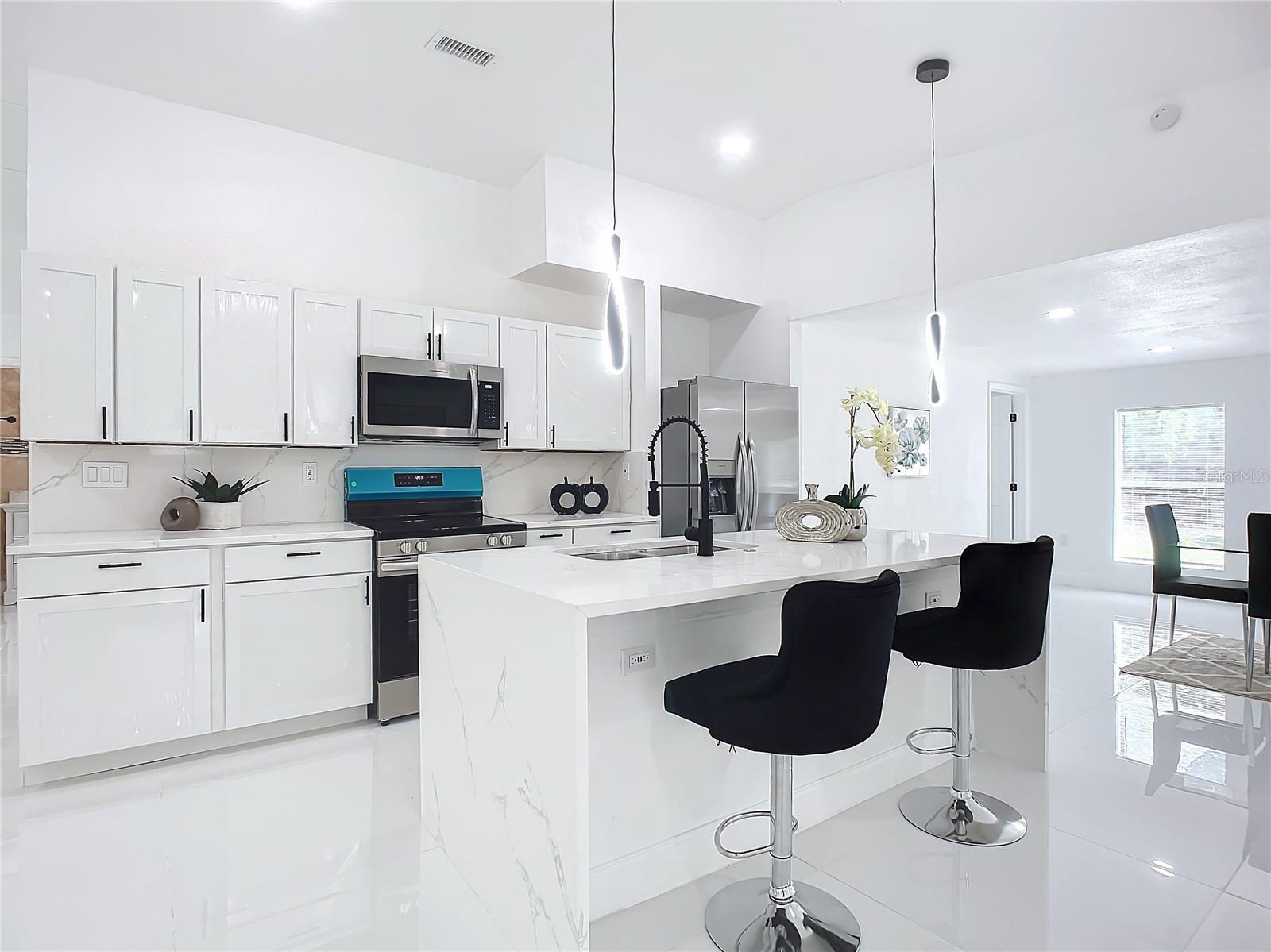 LINDA CASA COM PLANTA MODERNA E LOTE DUPLO GRANDE ESTÁ PRONTA PARA UM NOVO COMPRADOR! Não perca esta fantástica oportunidade de possuir um oásis encantador na localização perfeita, a apenas uma curta distância de carro do centro de DeLand, das faculdades Stetson University/Daytona State, dos parques estaduais, das praias e a menos de 1,6 km das escolas locais. Com 4 quartos e 3 banheiros, esta casa recebe você com um layout aberto convidativo. Dois quartos com banheiros privativos. A partir do momento em que você entra em sua casa, você ficará surpreso com os lindos pisos de porcelanato e uma planta aberta e cheia de luz natural. Layouts modernos com muito espaço para uma família numerosa. Esta residência possui um total de mais de 2.100 m² em um terreno sombreado por árvores e tem tudo que você precisa para se sentir em casa. A cozinha gourmet possui eletrodomésticos de aço inoxidável de última geração (incluindo forno de convecção e racks para lava-louças em aço inoxidável), armários com prateleiras para plantas, pia dupla de aço inoxidável com torneira pulverizadora suspensa e bancadas de granito. Retire-se para o seu espaçoso e privado quarto principal com um grande closet. Os quartos adicionais têm armários espaçosos e compartilham 2 banheiros completos bem equipados. Existe uma lavandaria interior com arrumação extra e porta de acesso às zonas comuns de convívio. Com este preço esta casa não vai durar muito no mercado, NÃO HESITE - LIGUE E AGENDE HOJE A SUA MOSTRA!