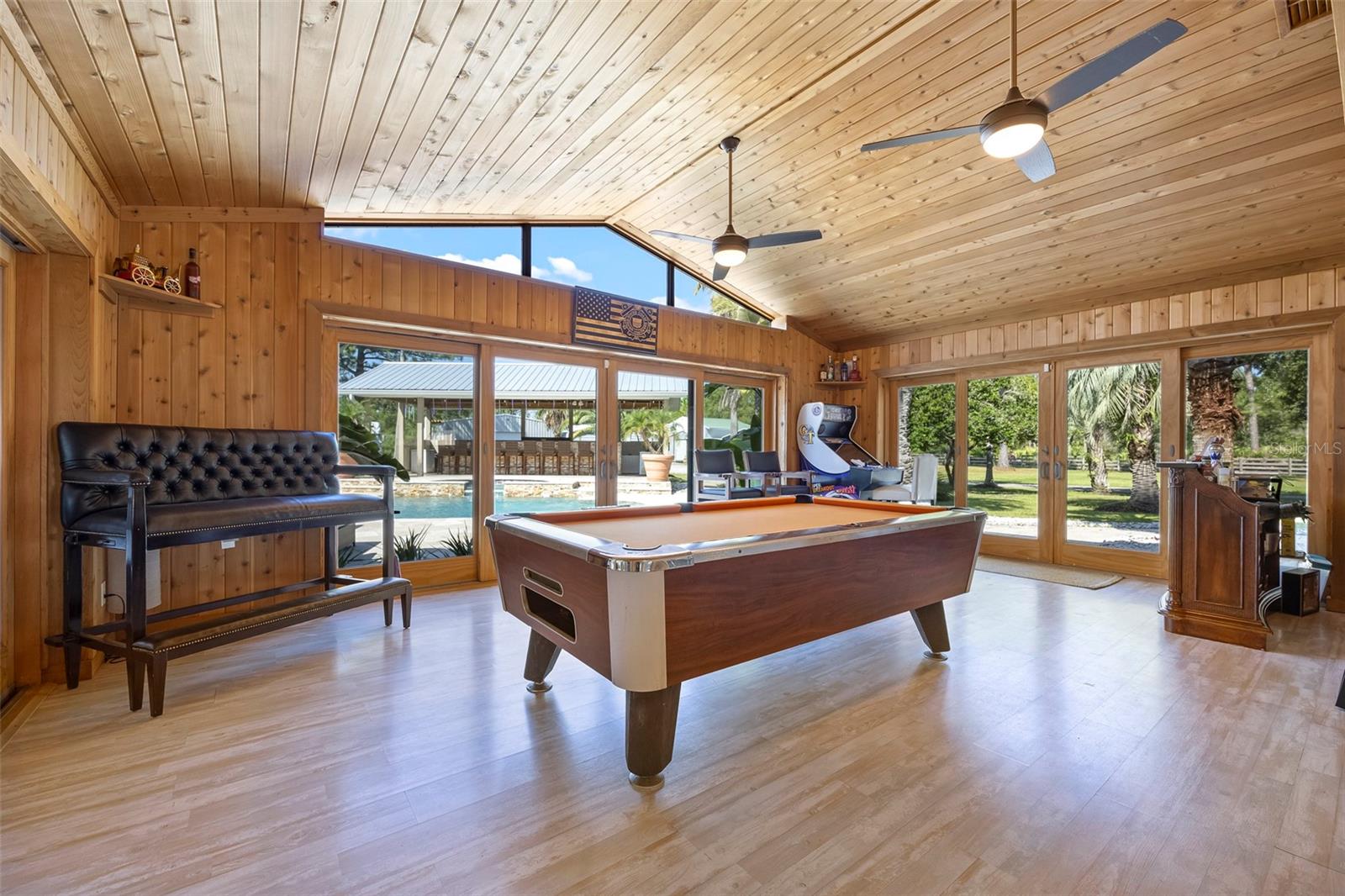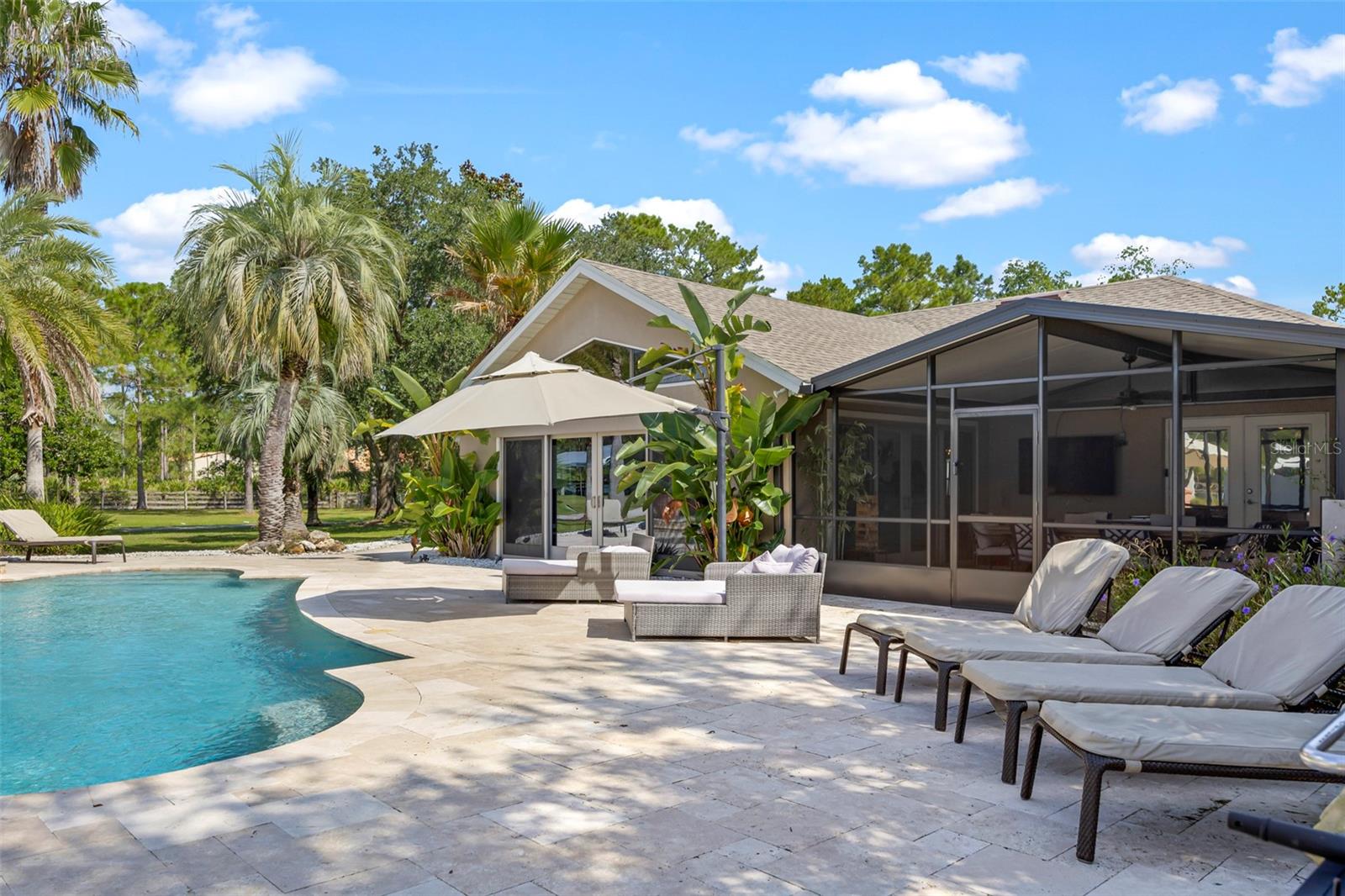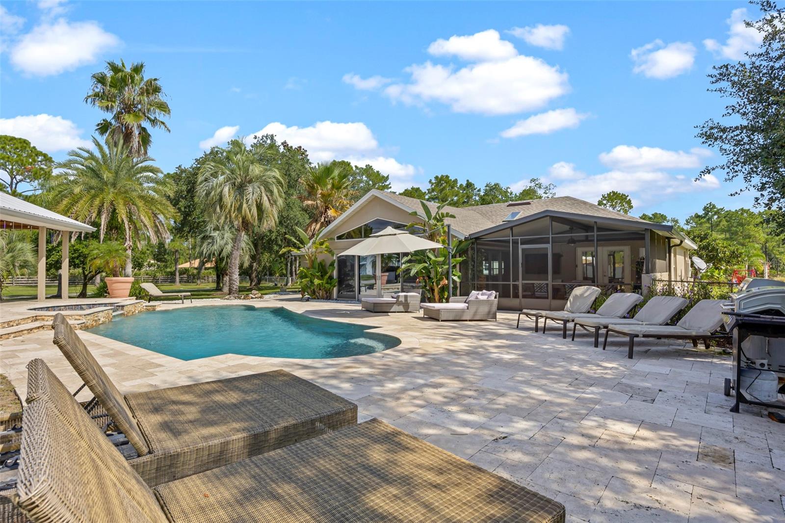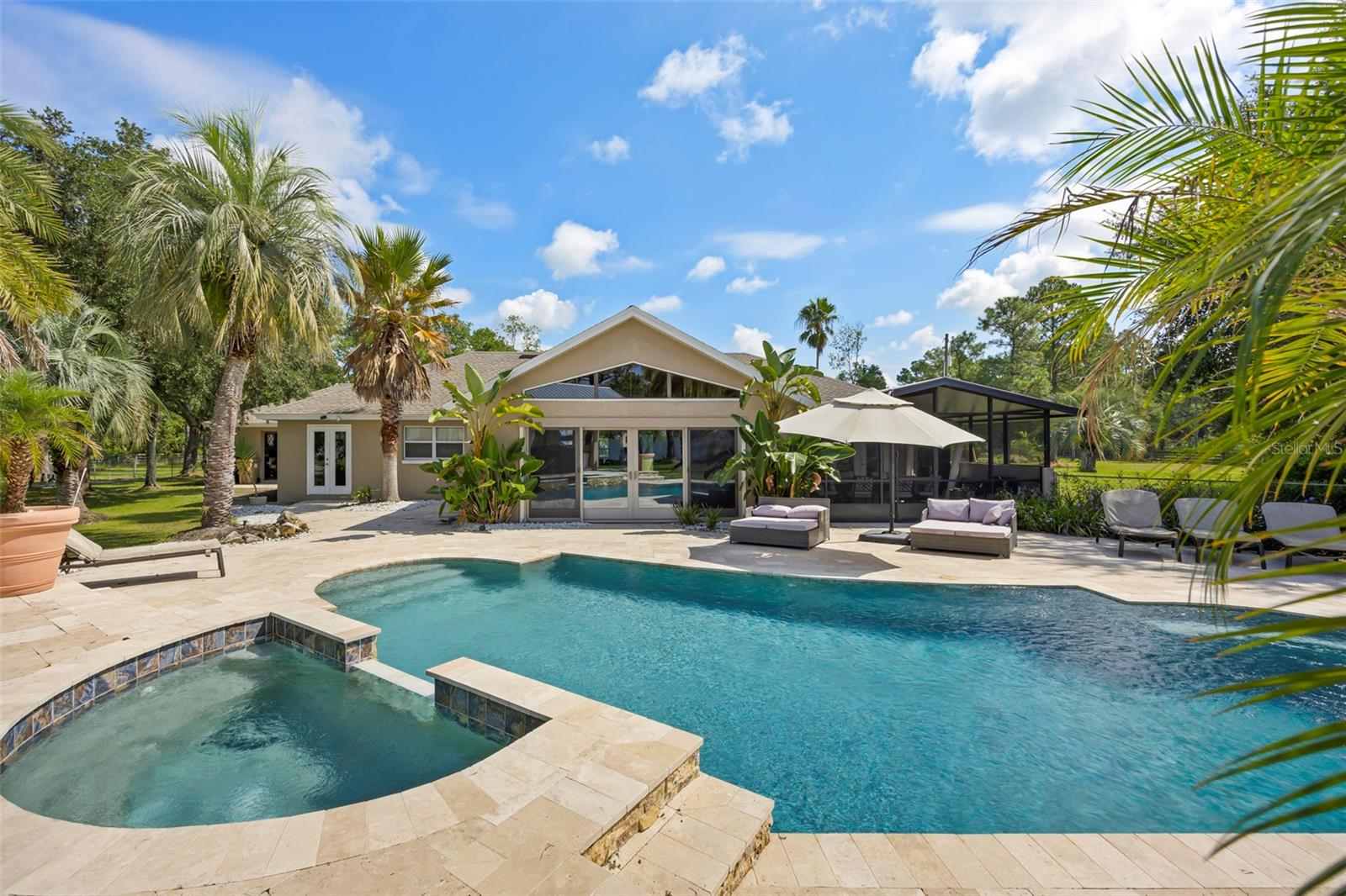 Dê uma vista de olhos a esta propriedade equestre reformada que foi transformada num complexo familiar ou oportunidade de investimento. São três casas situadas em mais de 5 acres de terreno, oferecendo muito espaço para todos os seus equipamentos e brinquedos. A casa principal é uma propriedade de 3 quartos e 2 banheiros, com cozinha recém-reformada, banheiros atualizados e portas francesas em todos os cômodos. Além disso, há uma suíte individual para sogra que possui 1 quarto e 1,5 banheiro, além de garagem própria para 2 carros. A terceira casa é um apartamento de dois andares com 3 quartos e 1 banheiro, e vem com garagem para 4 carros. Cada casa tem sua própria sala de estar, cozinha e aparelhos de lavar e secar roupa. Você pode dar um passeio ao redor do lago, que é adornado com palmeiras maduras e iluminação paisagística atualizada. A casa principal também inclui garagem para 6 carros com drive-thru. No coração da propriedade de 5 acres, há uma cativante piscina de água salgada e um oásis de spa ao ar livre com belo piso de travertino. A área da piscina está equipada com um bar totalmente operacional com 10 lugares, pia comercial de 3 compartimentos, speed bar, display completo de bebidas e geladeira. A parte elétrica e hidráulica já está montada. Além disso, a propriedade está convenientemente localizada a apenas três quilômetros do Rio St. John.