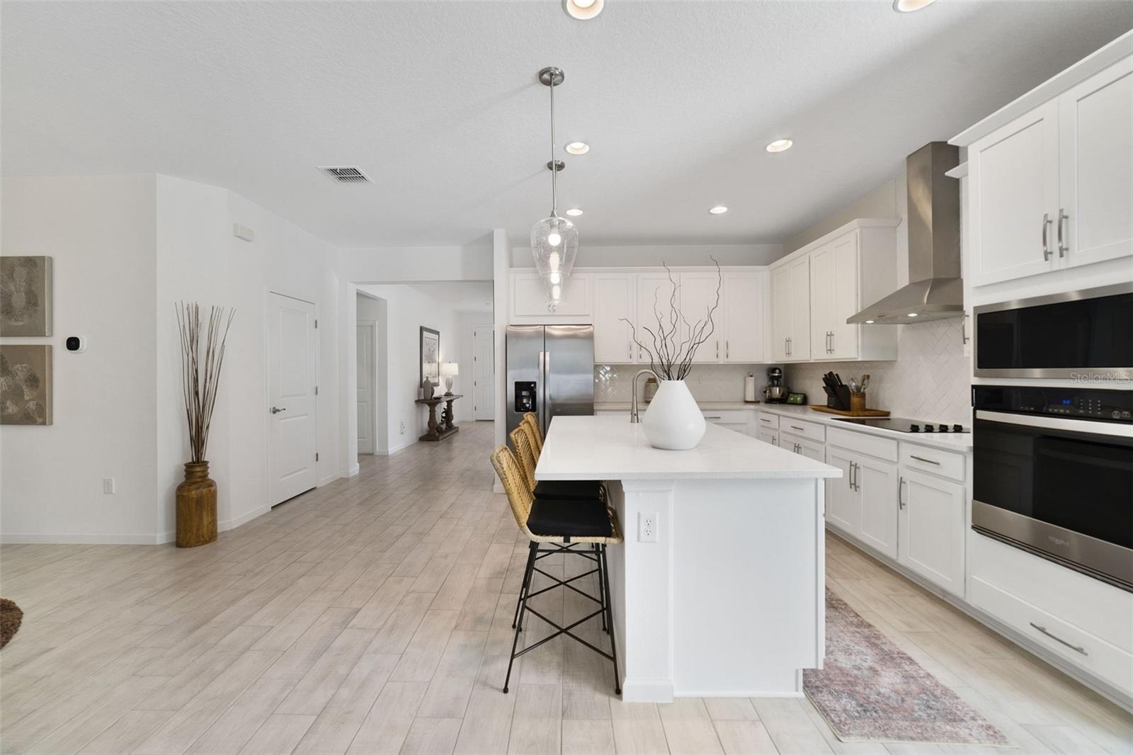 Parece que a nova casa construída 2023 com vistas para lago e conservação, planta espaçosa com uma sala flexível, suíte do proprietário atualizado, vida interna/externa sem costura, atualizações modernas e uma localização privilegiada - bem -vindo em casa! Este modelo de Poinciana da Dream Finders Homes oferece apelo à calçada na entrada da calçada e paisagismo esculpido e um layout que flui da porta da frente para os fundos. Fora do hall de entrada, você tem um espaço flexível perfeito para vida formal ou jantar para quem gosta de um espaço de entretenimento separado, um quarto de hóspedes ideal para um escritório em casa e sua lavanderia. Siga o fluxo natural na bela cozinha aberta, um moderno 'Café' para refeições casuais ou área de estar adicional e uma grande sala grande com portas de vidro deslizantes de 8 'que acessam um lanai, pátio de pavimentação e um quintal totalmente cercado. Há mais dois quartos em um corredor central com um banho de hóspedes completo e a suíte do proprietário está escondida na parte de trás da casa para obter maior privacidade. Um espaço tranquilo, seu suíte entre os armários duplos e um luxuoso banho de banho. Parte da coleção da série Dream com elementos elegantes de design, enquanto ainda deixa muito espaço para personalização em um ambiente sereno e natural. Os moradores de Lakewood Park têm acesso a comodidades comunitárias que incluem um clube, piscina com área de estar coberta e playground. Você está a poucos minutos da I-4 para facilitar o acesso a compras, restaurantes, centro de Deland e praias. Por que esperar por uma nova construção quando esta casa estiver pronta agora com espaço versátil para que o espaço cresça - ligue hoje para agendar sua turnê!