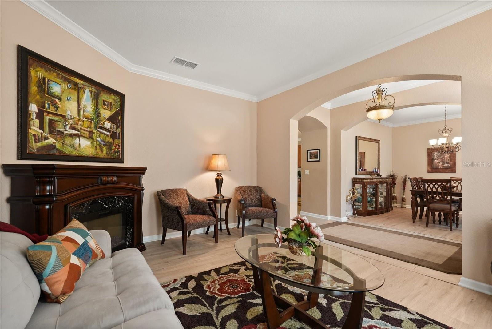 Bem-vindo ao Victoria Gardens, uma vibrante comunidade fechada de 55 anos, oferecendo um estilo de vida ativo com trilhas para caminhada, tênis, pickleball, um centro de fitness, piscina e restaurante no local. Esta casa de movimentação e movimentação lindamente mantida apresenta uma planta aberta cheia de luz natural, incluindo uma sala de jantar formal, sala de estar e uma espaçosa grande sala que flui para a cozinha. A cozinha é uma delícia de chef com bancadas em granito, armários de 42 polegadas e uma barra de café da manhã, perfeita para entretenimento. Desfrute de café da manhã na lanchonete enquanto aprecia o quintal pacífico e a vida selvagem local. A suíte master oferece um refúgio luxuoso com armários duplos e um banho de jardim. Dois quartos grandes adicionais oferecem espaço para hóspedes ou hobbies, além de uma lavanderia interna conveniente. Moldagem da coroa e embutidos personalizados adicionam elegância por toda parte. As atualizações recentes incluem CA (2020), aquecedor de água quente (2020) e pisos novos de carpete e madeira (2020). Uma casa imperdível em uma comunidade fantástica!