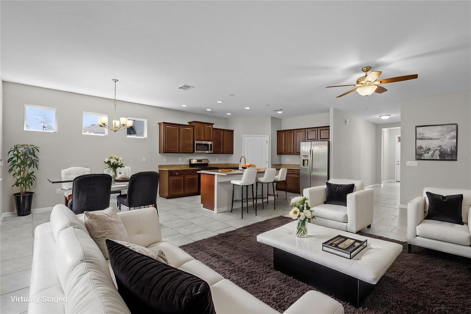 Uma ou mais fotos foram praticamente encenadas. Bem -vindo para casa! Entre em conforto, estilo e sol com esta impressionante casa de 4 quartos e 2 banheiros, completa com uma espaçosa garagem de 2 carros ee em um lote generoso na altamente desejável comunidade de Victoria Park. Esta casa não é apenas um lugar para morar - é um lugar para aproveitar a vida, todos os dias. Desde o momento em que você caminha pela porta da frente, sentirá a diferença. Tetos altos e uma planta aberta enchem a casa com luz e ar, dando a todos os quartos uma vibração brilhante e alegre. O layout de conceito aberto reúne a sala de estar, a área de jantar e a cozinha, criando um grande e bonito espaço para a vida cotidiana e o entretenimento fácil. A cozinha é um showstopper! Apresentando bancadas de granito elegantes, utensílios de aço inoxidável, toneladas de armários para armazenamento, despensa e uma ilha central com uma barra de café da manhã, é construído para culinária e conversa. Há até um recanto aconchegante, perfeito para manhãs de café ou refeições casuais. Quando é hora de relaxar, a suíte primária de grandes dimensões é sua fuga particular. Possui um enorme armário e um banheiro luxuoso com pias duplas de granito e um chuveiro. Os outros três quartos são espaçosos, brilhantes e versáteis - excelente para hobbies, convidados ou trabalham em casa. Ambos os banheiros são atualizados com bancadas em granito, dando a todos os dias um brilho extra. Ame a vida ao ar livre? Você adorará o lanai exibido-seu próprio local tranquilo para café da manhã, descanso à tarde ou observação de estrelas da noite. O grande quintal oferece espaço para esticar, jardim, brincar ou hospedar churrascos divertidos de fim de semana. Vantagens extras? Pintura interior fresca, painéis solares que economizam energia e tetos altos por toda parte. Além disso, o Victoria Park tem tudo-quadras de tennis e pickleball, trilhas panorâmicas, parques e uma piscina em estilo resort. Esta casa combina beleza, espaço e comunidade em um pacote incrível. Venha ver por si mesmo hoje!