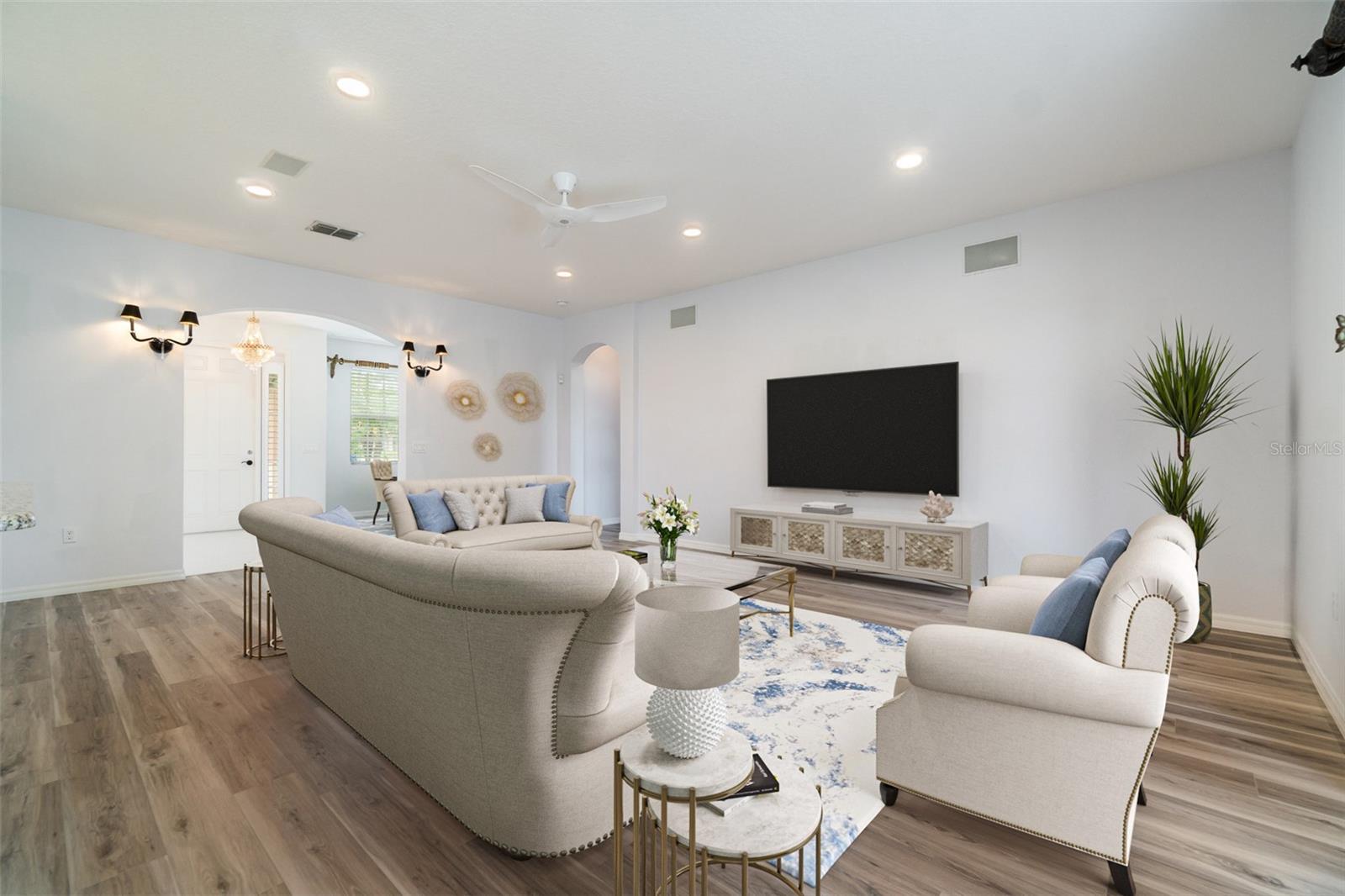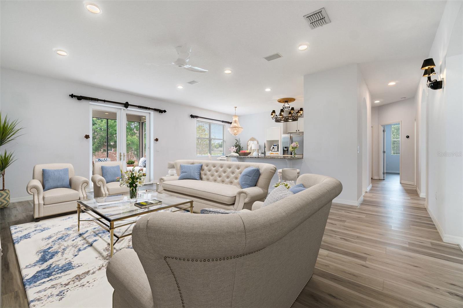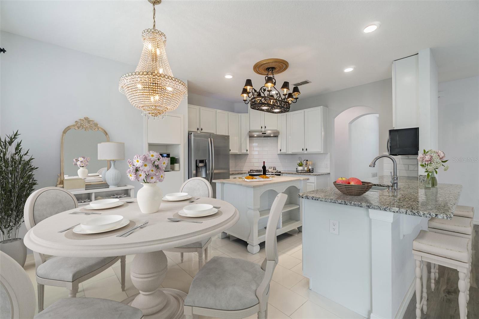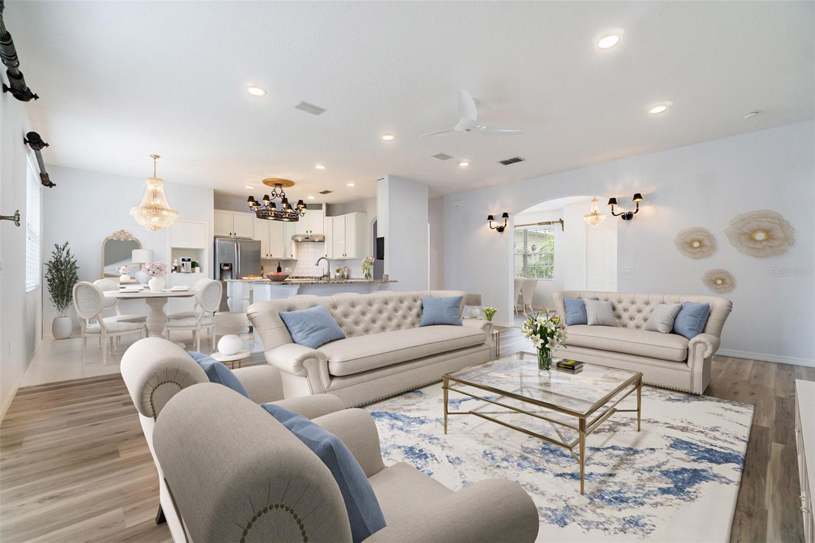 Uma ou mais fotos foram praticamente encenadas. Construído em 2014, esta residência lindamente mantida oferece 1.978 pés quadrados de espaço de estar com ar-condicionado e apresenta uma construção de blocos de concreto sólido. Em um lote de canto de grandes dimensões, a casa é enquadrada por um paisagismo exuberante e meticulosamente mantido e, embora não esteja em um lago, você apreciará vistas de dois lagos vizinhos enquanto estava sentado em seu amplo Lanai (19 'por 11 pés), ideal para relaxar ou divertir. No interior, você encontrará ladrilhos brancos elegantes e pisos de vinil de luxo por toda parte, melhorando o ambiente brilhante e arejado da casa. A grande sala de conceito aberto apresenta arandelas personalizadas, um ventilador de teto de grife e alto-falantes de som surround embutidos. Uma transição perfeita para o Lanai é alcançada através de portas de vidro atualizadas, substituindo os controles deslizantes originais por uma estética mais refinada. A cozinha gourmet é o sonho de um chef, completo com bancadas em granito, utensílios de aço inoxidável, uma gama de gás natural, armários personalizados, uma ilha móvel, bar de café da manhã e um recanto dedicado à estação de café. Três requintados lustres de cristal swarovski adicionam um toque de luxo à sala de jantar, escritório e área de café da manhã. A planta baixa garante privacidade e funcionalidade. A espaçosa suíte primária (23 por 14 pés) possui um teto de bandeja, ventilador personalizado e dois armários separados. O banho de suíte inclui vaidades de granito duplo, um chuveiro, armário de água privado e amplo armazenamento. Dois quartos de hóspedes adicionais compartilham um banheiro bem equipado com vaidade em granito, banheiro toto e uma banheira completa. Destaques adicionais incluem caseiro construído por construtores de A&M, lavanderia interna com armários extensos para armazenamento, garagem para três carros (672 pés quadrados), aquecedor de água sem tanques de gás e sistema HVAC de gás. Sistema de aspersão com poço privado e persianas de janelas por toda parte. Comunidade e localização nas propriedades desejáveis do jardim de samambaia em DeLand, esta casa oferece um ambiente suburbano pacífico, com acesso conveniente a compras, restaurantes e recreação. Esta propriedade excepcional combina luxo, conforto e conveniência. Atrações próximas, no centro de Deland, conhecido por seu charme histórico, o centro de Deland oferece compras boutique, refeições locais e eventos culturais. Instalações recreativas, os residentes têm acesso a parques e áreas recreativas próximas, oferecendo oportunidades para atividades ao ar livre. Proximidade às principais estradas, a localização do bairro oferece acesso conveniente às principais rodovias, facilitando viagens para as áreas circundantes. As escolas próximas incluem a Citrus Grove Elementary (PK-5), 4 milhas da escola secundária do sudoeste (6-8), 2,4 milhas de Deland High School (9-12) e 2,7 milhas com um aclamado programa de bacharelado internacional (IB).