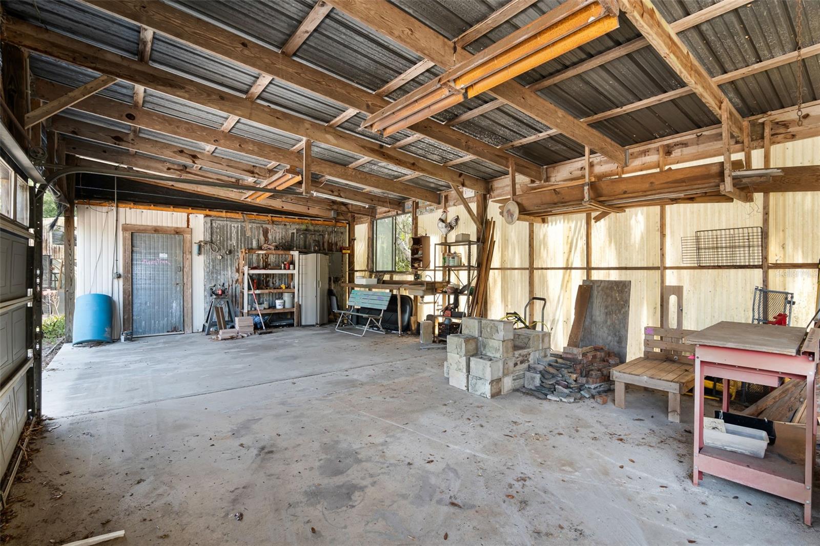 Oficina coberta, de grandes dimensões em garagem