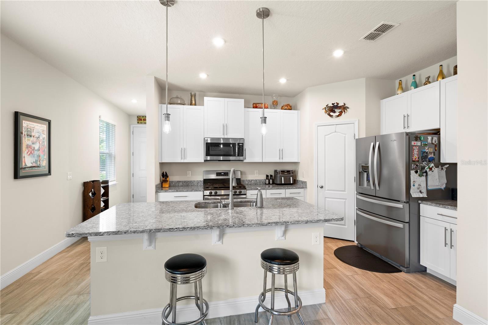 Bem -vindo para casa com a vida fácil em Victoria Trails | Victoria Park! Esta casa de um andar de três quartos e dois andares oferece recursos de conforto, estilo e inteligência em um dos bairros mais procurados de Deland. Construído em 2019, a popular planta de piso de Ponte Verde (por Ryan Homes) oferece a quantidade certa de espaço - 1.509 pés quadrados - com um layout aberto que faz a vida cotidiana parecer fácil. A cozinha é o coração da casa, com utensílios de aço inoxidável, um fogão a gás e uma grande ilha com assentos - perfeitos para café da manhã rápido ou recuperando depois da escola ou do trabalho. Ele se abre para as áreas de jantar e de estar, onde tetos altos e pisos de ladrilhos atualizados criam uma vibração brilhante e arejada. A suíte primária oferece um retiro pacífico com uma vaidade de pia dupla e armário espaçoso, enquanto dois quartos adicionais oferecem flexibilidade para hóspedes, crianças ou um escritório em casa. De volta, desfrute de um quintal cercado para animais de estimação, tempo de brincadeira ou apenas relaxando ao sol da Flórida. Vantagens práticas, como um aquecedor de água sem tanques e uma garagem de pavimentação, agregam valor e conveniência. E quando se trata de comodidades, Victoria Trails | O Victoria Park tem tudo - os residentes gostam de acesso a duas piscinas comunitárias, dois centros de fitness, quadras de tênis e pickleball, além de irrigação, cabo e internet estão incluídas. A poucos minutos da I-4, da Universidade Stetson e do centro histórico de DeLand, e uma viagem fácil para Orlando e as praias-esta casa verifica todas as caixas para localização, estilo de vida e habitabilidade. Venha ver por que tantos têm orgulho de chamar Victoria Trails de lar!
