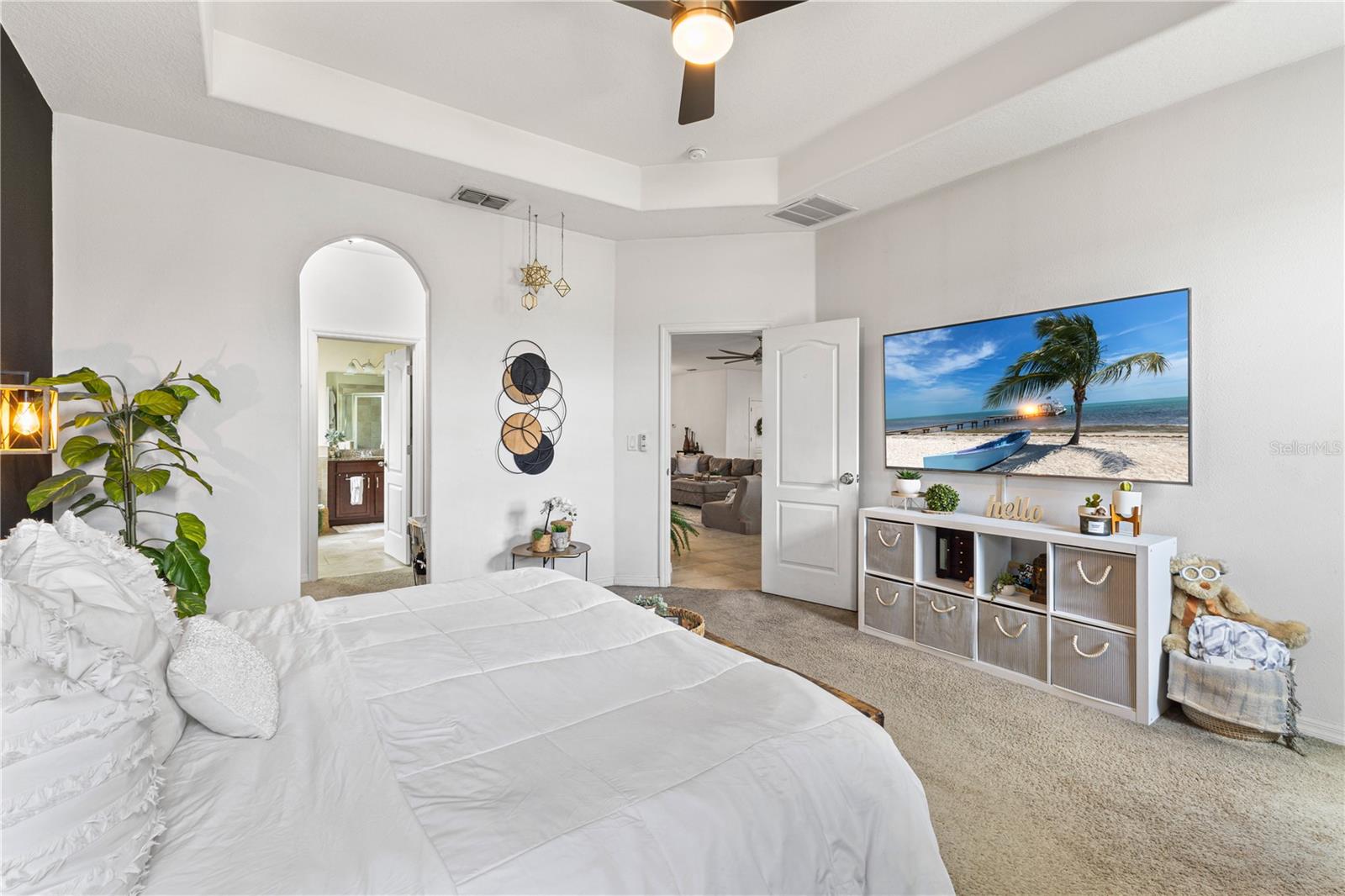 Linda Dr. Horton Home em Victoria Trails com muito, voltando a um grande lago. Este é o modelo Destin. Este escritório de 4 quartos, além de escritório, além de Den/Flex Room, possui pouco menos de 3.000 pés quadrados de espaço aquecido. Painéis solares incluídos !!!! .... e não é um contrato! Depois de entrar no hall de entrada da frente, você notará a sala de jantar formal, a sala flexível ou o salão de entrada à sua esquerda. Os pisos nas áreas principais foram recentemente atualizados para a telha, que flui pela planta baixa aberta, até chegar aos quartos, onde combina muito bem com o tapete. A cozinha, o deleite de um artista, possui bancadas em granito, aparelhos mais novos, muitos armários, despensa, mas o melhor de tudo é que a área do bar está aberta para a sala de estar. Aproveite o nascer do sol da manhã da varanda traseira ou no pátio da pavimentadora enquanto olha para a lagoa de dentro do seu quintal cercado. Voltando para dentro, a planta baixa oferece a suíte primária com vistas do quintal, o quarto primário de grandes dimensões oferece um teto de bandeja e leva ao banheiro, que tem um grande armário, vaidades separadas, banheira, chuveiro de azulejos e banheiro privativo. Do outro lado da sala de estar, você encontrará os outros 3 quartos, 2 banheiros e uma sala flexível. Dois dos quartos compartilham um banheiro e têm prateleiras embutidas no armário. A lavanderia interna inclui uma prateleira de armazenamento e leva à garagem de 3 carros. Este bairro faz parte do Victoria Park, amigável para carros de golfe, com um HOA baixo, que inclui: 2 piscinas aquecidas, playgrounds, centros de fitness, parques, trilhas, quadras de pickleball, eventos comunitários, água de irrigação recuperada e um pacote a cabo/Internet! Faça sua consulta para ver esta casa maravilhosa !!!!