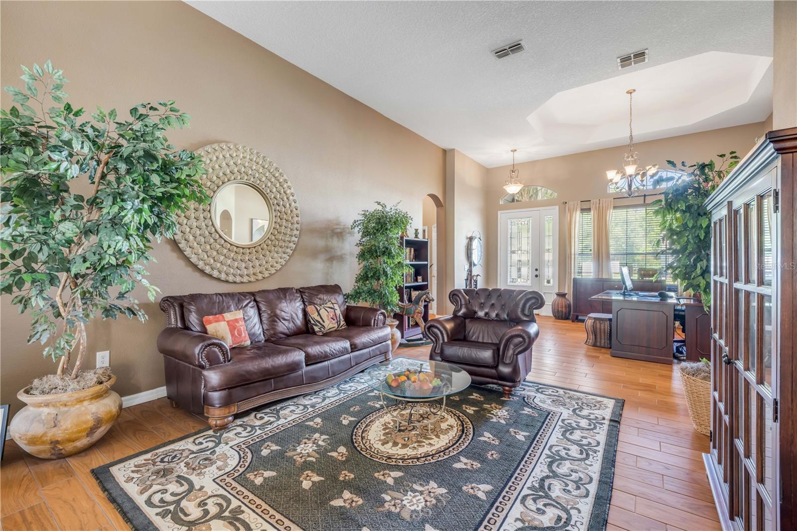 Bem-vindo a esta impressionante casa unifamiliar em Ridgewood Crossing, oferecendo 4 quartos espaçosos e 3 banheiros completos em 2.554 pés quadrados. A impressionante frente de pedra e paisagismo cuidadosamente projetados criam um apelo de acolhimento, complementado por uma garagem de três carros, fornecendo amplo estacionamento e armazenamento. Entre para descobrir tetos altos que aumentam a sensação aberta e arejada. A cozinha é o sonho de um chef, com armários de madeira maciça, utensílios de aço inoxidável e bancadas em granito. Logo na cozinha, você encontrará um recanto de café da manhã brilhante e uma sala de estar convidativa - ideal para refeições e reuniões do dia a dia. Uma sala familiar adicional oferece espaço versátil para relaxamento ou divertido. A suíte primária é um verdadeiro retiro com tetos elegantes da bandeja, um generoso closet e um lindo banheiro da suíte. Desfrute de duas vaidades separadas, uma banheira de imersão e um chuveiro separado, todos projetados para conforto e estilo. Do lado de fora, o Lanai exibido tem vista para um quintal privado e cercado, perfeito para diversão ao ar livre. As atualizações recentes incluem uma nova unidade de A/C no último ano e uma tinta externa fresca, aumentando a prontidão de mudança da casa. Localizada perto de supermercados, shopping centers e outras conveniências, esta casa combina uma vida confortável com grande acesso aos itens essenciais do dia a dia. É uma oportunidade maravilhosa para desfrutar de uma comunidade espaçosa e elegante em uma comunidade procurada.