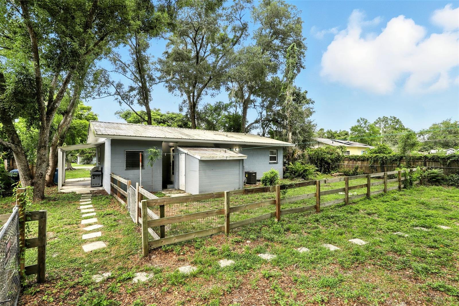 Esta bela propriedade está localizada em uma rua tranquila em DeLand, na Flórida. A casa da frente é de 3 quartos e 2 banheiros com pisos de madeira dura. A cozinha e os banheiros são ladrilhos com um acabamento em mármore. A cozinha e a sala de estar são uma planta baixa e o quarto principal tem o banheiro principal anexado, com uma espaçosa caminhada no chuveiro. Localizado na parte traseira, há uma habitação de estúdio separada, com uma cozinha completa e banheira.