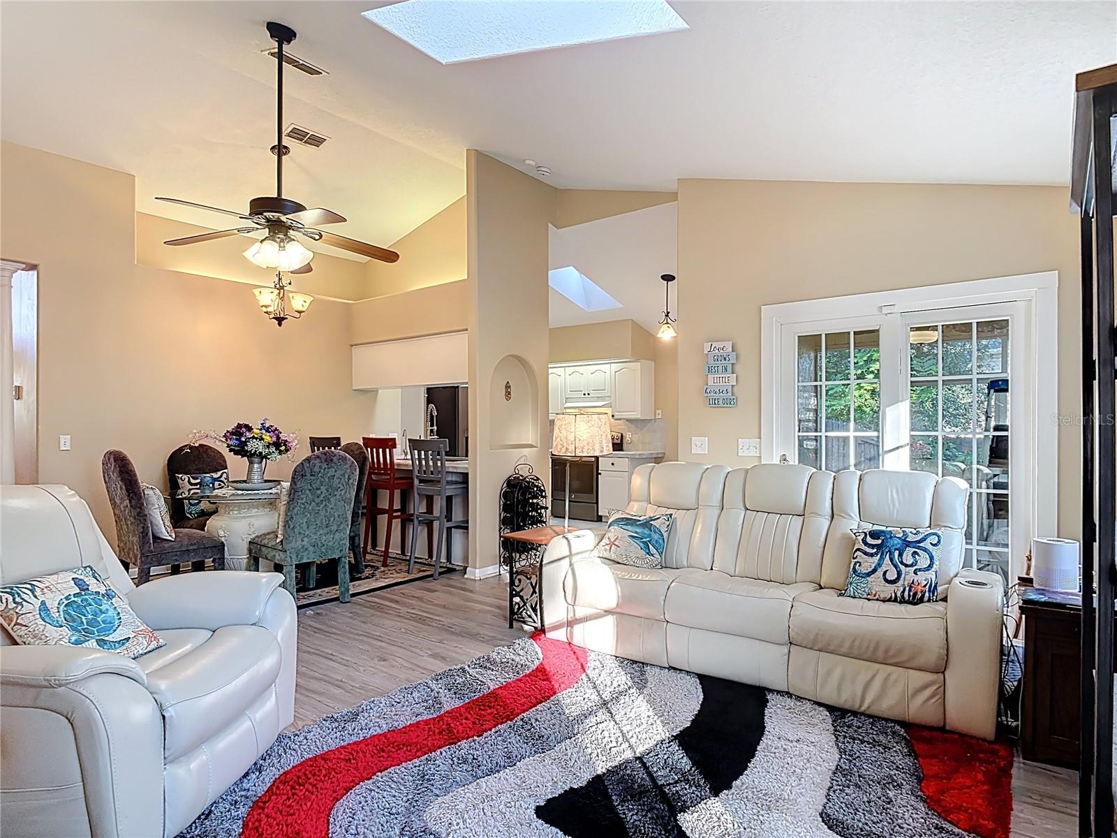 Bem-vindo a esta casa de 3 quartos e 2 banheiros lindamente conservada em um espaçoso terreno de esquina em Daytona Park Estates! Desfrute da paz de um bairro tranquilo a poucos minutos do centro de DeLand, enquanto ainda está cercado pela natureza e pelas vistas panorâmicas do lago nas proximidades. Entre em um convidativo layout de conceito aberto com tetos abobadados, claraboias e luz natural abundante. As áreas de estar e de jantar fluem perfeitamente juntas, criando o espaço perfeito para entretenimento ou relaxamento em casa. A cozinha possui eletrodomésticos de aço inoxidável, bancadas de azulejos, balcão para café da manhã e um recanto com janela com vista para o quintal. A suíte principal oferece luxuoso piso de pranchas de vinil, banheiro privativo e uma bela janela em arco que enche o ambiente de luz. Dois quartos adicionais oferecem flexibilidade para hóspedes ou home office. Saia para um pátio cercado por uma vegetação exuberante - ideal para o café da manhã ou para relaxar à noite. O quintal totalmente cercado oferece muito espaço para animais de estimação, jardinagem ou projetos futuros e inclui um galpão de armazenamento para maior comodidade. Painéis solares energeticamente eficientes (alugados, presumíveis) ajudam a manter baixos os custos dos serviços públicos. Com sua mistura de charme, funcionalidade e vida ecológica, esta casa oferece o melhor da vida na Flórida - a poucos minutos de tudo o que DeLand tem a oferecer.