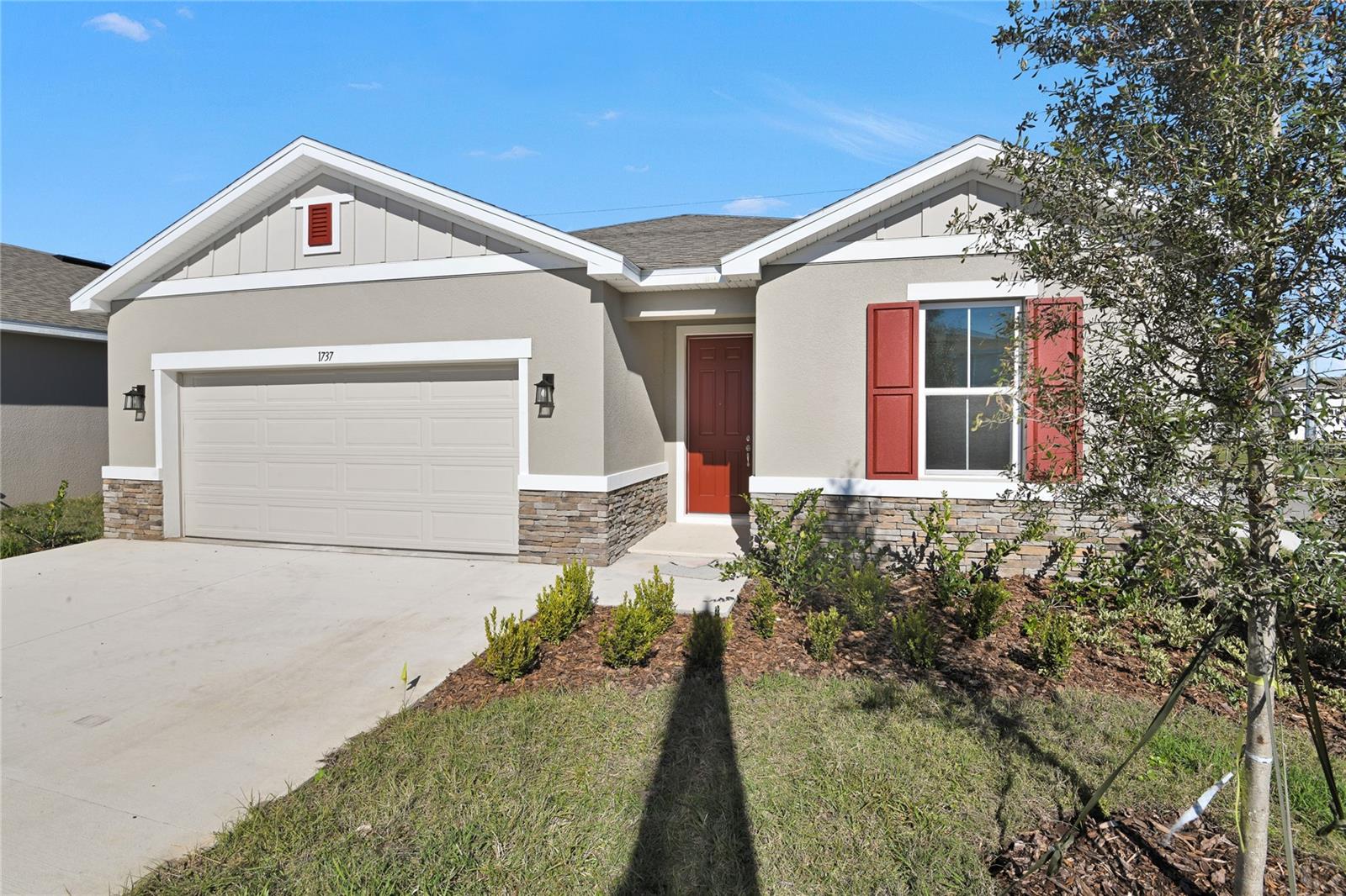 A planta de ardósia cuidadosamente projetada se abre com dois quartos flanqueando um banho de salão completo. Além da entrada, você encontrará um layout aberto com um recanto de jantar, uma grande sala com acesso a um pátio coberto convidativo e uma cozinha com uma ilha central, despensa e armários abundantes. A suíte master fica próxima, oferecendo um closet generoso e um banho privativo com pias duplas opcionais, um chuveiro e uma banheira de imersão separada. Uma lavanderia e um quarto quarto com seu próprio banho privativo completam a casa., Os acabamentos interiores incluem armários de cozinha de 42 'brancos/utensílios de aço inoxidável/piso de ladrilhos em todas as áreas comuns/bancadas de quartzo na cozinha e um quintal de forma de torta com quintal largo!