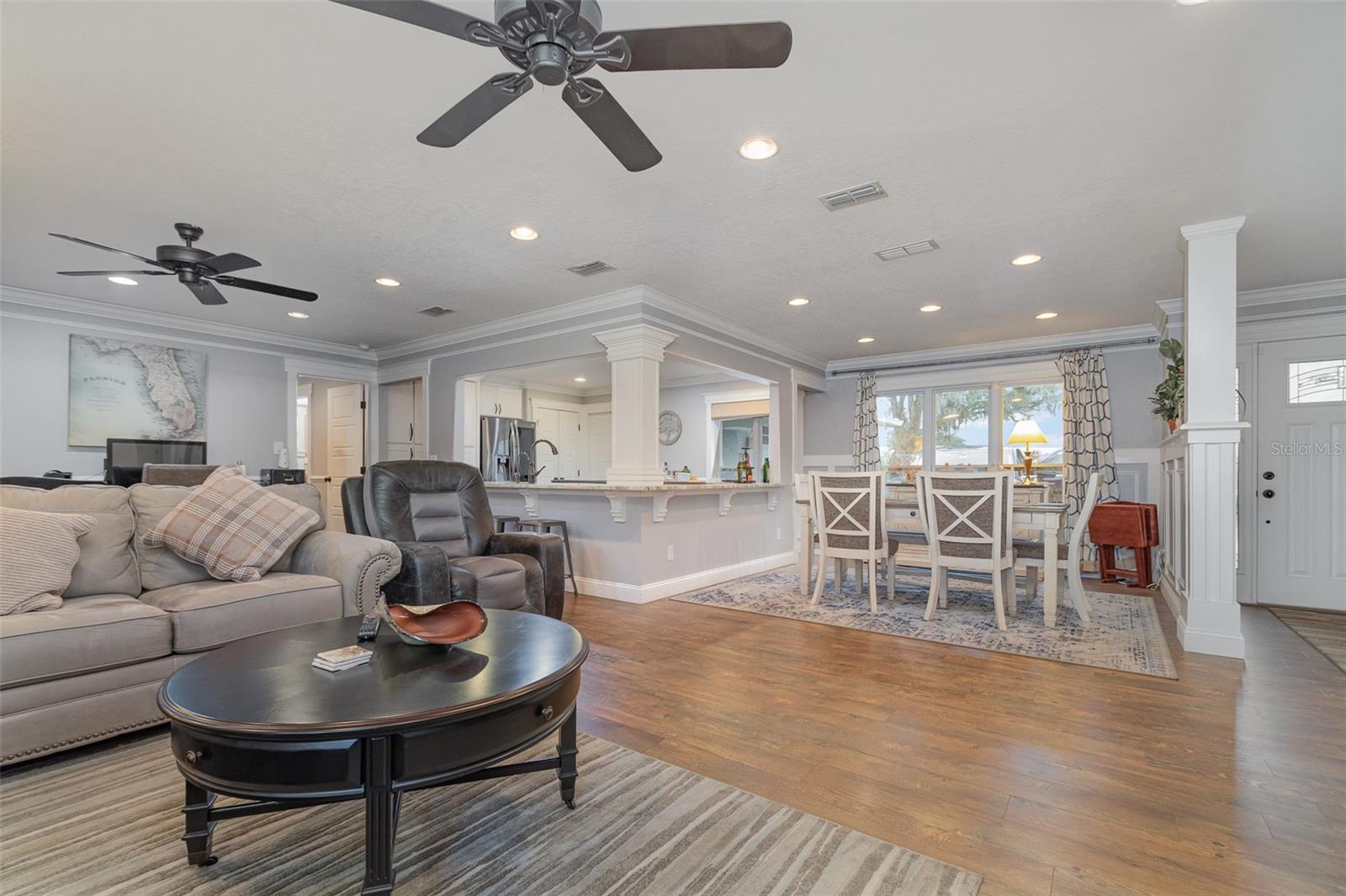 Acorde com vistas deslumbrantes nesta casa de 3 quartos e 2 banheiros à beira do lago em mais de um acre! A partir do momento em que você entra, você será saudado por uma planta de quarto aberta e dividida com sancas personalizadas, lindas bancadas de quartzo, eletrodomésticos de aço inoxidável, piso de vinil luxuoso por toda parte e abundância de luz natural em cada quarto. Telhado instalado em 2017, sistema HVAC em 2021. Não só há vistas deslumbrantes do Lago Winnemissett, mas também uma piscina subterrânea. Caminhe pelas portas francesas para acessar a piscina cintilante, situada entre pavimentação e uma varanda aconchegante! Desfrute de arrumação extra com 2 telheiros e garagem para 2 carros. Sua casa perfeita na Flórida espera por você.