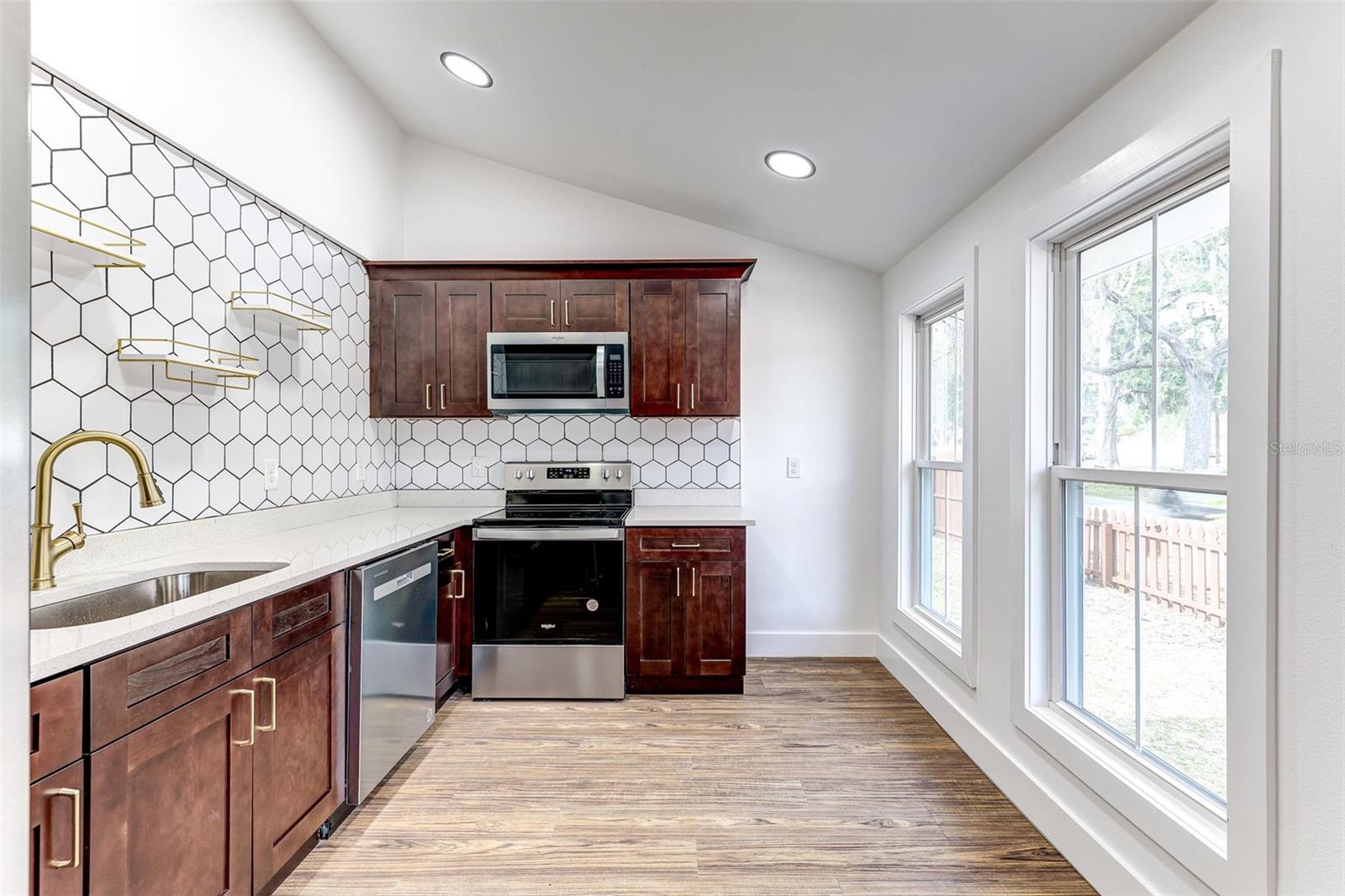 Entre no luxo histórico no coração do centro de DeLand com esta lindamente atualizada casa de 4 quartos e 3 banheiros com um escritório na Flórida Vernacular. Ao entrar, você será recebido pela luz natural quente que entra pelas enormes janelas meticulosamente restauradas, destacando os luxuosos pisos de videira e os encantadores detalhes arquitetônicos. O primeiro andar combina perfeitamente confortos modernos com charme histórico, apresentando uma espaçosa sala de estar, sala de jantar e sala/escritório bônus, cada um com seu próprio feng shui exclusivo. A suíte master no andar de baixo oferece um refúgio sereno, completo com um banheiro privativo recém-renovado e acesso privado ao seu próprio oásis no quintal. Imagine tomar seu café da manhã na varanda privativa da suíte master, cercada por uma vegetação exuberante e pelos sons tranquilos da natureza. A cozinha atualizada é uma delícia para o chef, com novas bancadas, eletrodomésticos de aço inoxidável e amplo espaço de armazenamento. Saia para a varanda que envolve os lados sul e leste da casa para aproveitar o clima da Flórida ou estenda seu espaço de entretenimento para o novo deck, perfeito para hospedar jantares ao ar livre sob as estrelas. Cercada por uma cerca de madeira de mais de um metro de altura, a propriedade oferece privacidade e segurança, criando um retiro tranquilo para você e sua família desfrutarem. No andar de cima, descubra três quartos luminosos, dois banheiros completos e um conveniente banheiro jack and jill compartilhado por dois dos quartos. O terceiro quarto possui banheiro privativo, ideal para uma suíte master secundária ou acomodação de hóspedes. Cada quarto oferece amplo closet e grandes janelas, inundando os quartos com luz natural. Esta casa foi meticulosamente atualizada, preservando seu caráter histórico, com atualizações adicionais, incluindo um novo telhado de telha, novo ar condicionado e janelas originais restauradas. Com amplo armazenamento interno e externo e situada em um terreno enorme de 0,16 acres, esta propriedade oferece elegância e funcionalidade. Não perca esta oportunidade de possuir um pedaço da história de DeLand, a poucos passos das lojas, restaurantes do centro da cidade e da Universidade Stetson. Deixe sua marca na rica herança de DeLand tornando-se o orgulhoso proprietário desta casa icônica! Agende sua exibição hoje e experimente a magia do centro da cidade morando em DeLand.