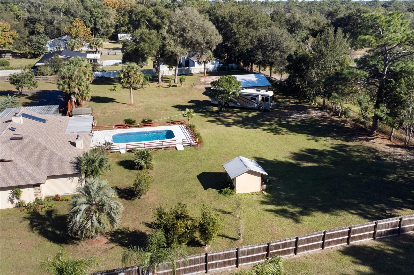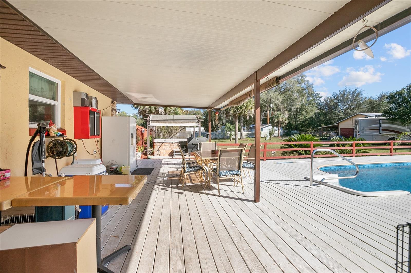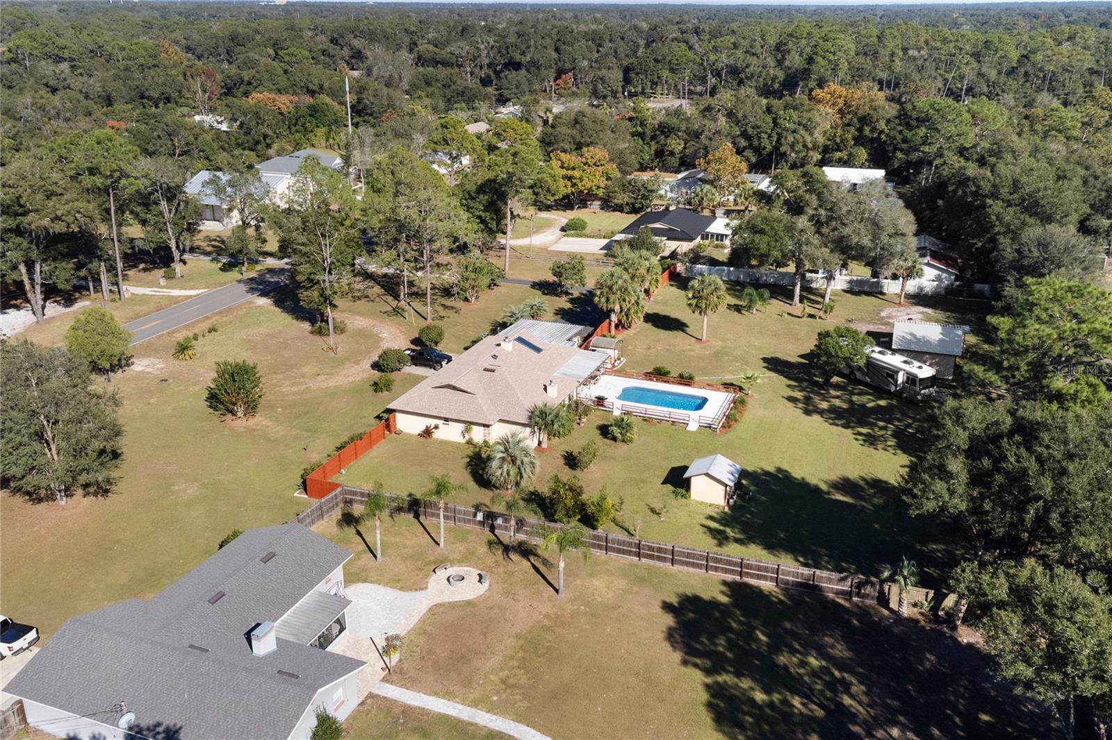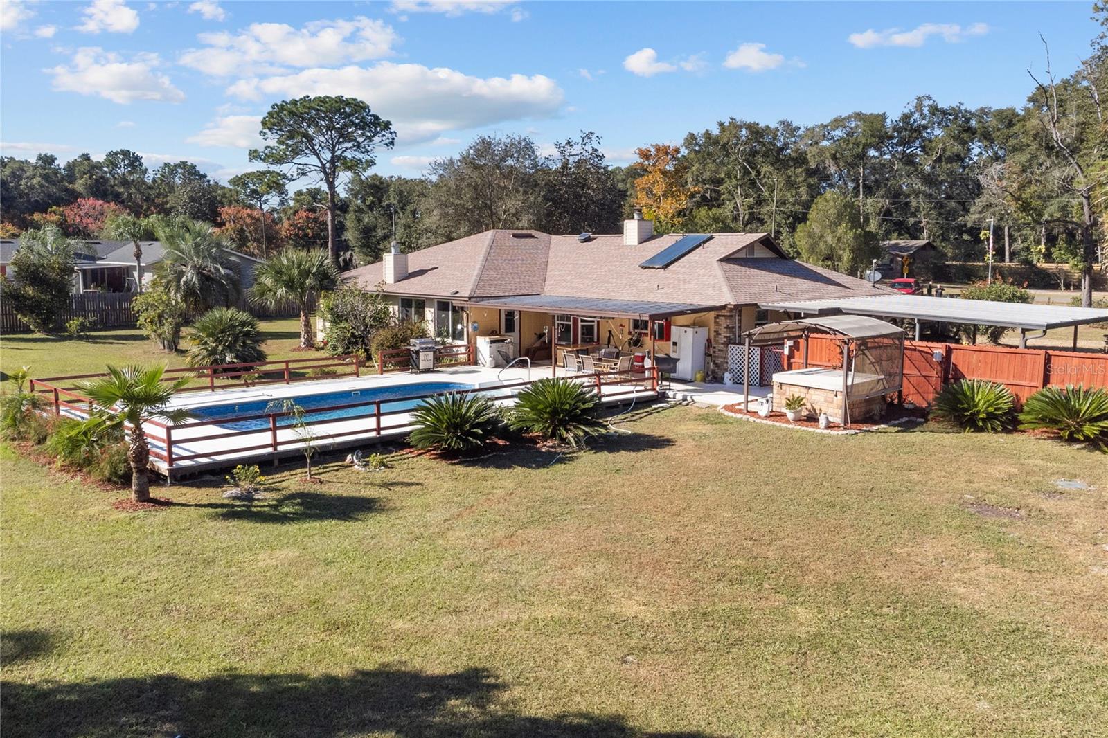 Telhado substituído em 2021, HVAC e aquecedor solar de água instalados em 2015, fossa séptica bombeada em 2020. Confira este paraíso privado em uma propriedade de 1,8 acres meticulosamente mantida! Esta casa de 3 quartos, 3 banheiros e 2.562 pés quadrados possui duas suítes master, perfeitas para viver multigeracionais ou receber hóspedes. Relaxe na piscina cintilante com deck de madeira pintada ou aproveite a abundância de seu próprio pomar de frutas cítricas com limoeiro Meyer, oliveira e laranjeira. Tudo dentro de um quintal totalmente cercado para privacidade e segurança dos seus animais de estimação. No interior, mantenha-se fresco e confortável com isolamento de barreira radiante e isolamento de sótão adicional de 18". Armários recentemente reformados pela Excalibur adicionam um toque de elegância à cozinha, enquanto um novo forro de piscina, bomba e filtro garantem diversão sem preocupações no quintal Relaxe na relaxante banheira de hidromassagem ou aconchegue-se perto do fogão a lenha, que libera calor por toda a casa. Os recursos adicionais incluem um novo telhado instalado em abril de 2021, fossas sépticas duplas e uma conveniente conexão para RV de 50 A. Um espaçoso anexo de 26' x 20' com uma garagem anexa de 12' x 23' oferece amplo armazenamento, espaço para hobby ou uma oficina. Esta propriedade excepcional oferece a combinação perfeita de privacidade, conforto e funcionalidade. Agende sua exibição hoje e experimente o que há de melhor no estilo de vida da Flórida!