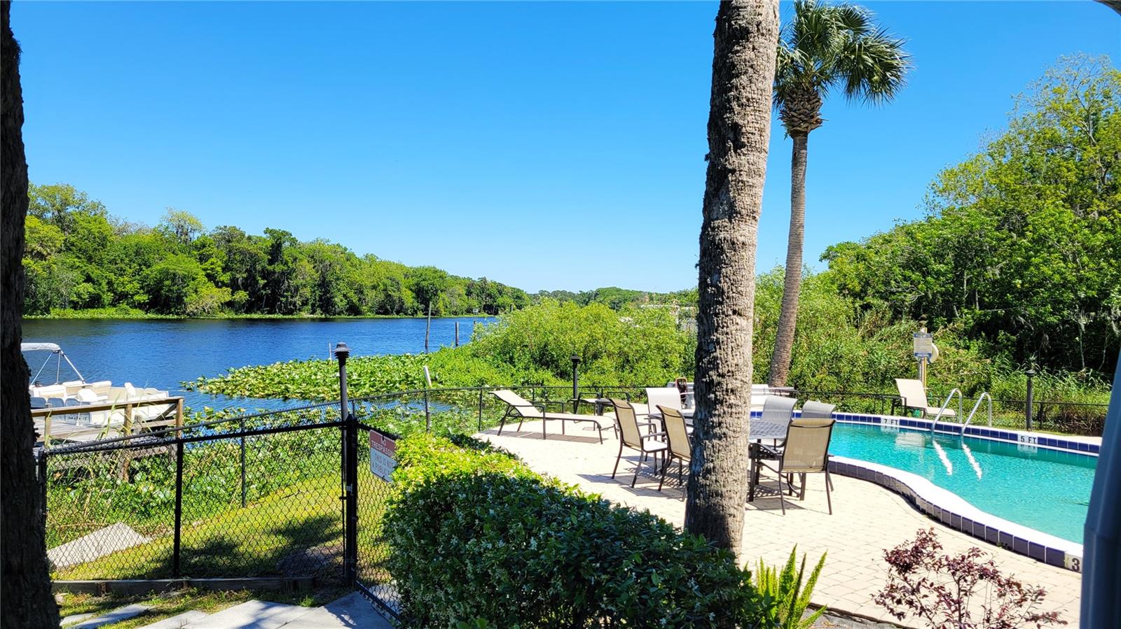 Deland: Esta propriedade única é uma das 16 unidades situadas diretamente ao longo do Rio St. SE VOCÊ TEM MENOS DE 55 ANOS, ESTE É UM BELO LUGAR PARA VIVER. A REGRA 80/20 SE APLICA. VOCÊ NÃO PRECISA TER MAIS DE 55 anos PARA MORAR OU COMPRAR ESTA CASA. É uma rara oportunidade de possuir seu próprio pedaço do paraíso! A unidade final oferece uma vista deslumbrante do rio, a poucos metros de sua varanda. Se você sair pelas outras portas deslizantes de vidro, você se encontrará no deck da piscina, pronto para mergulhar na piscina cintilante enquanto aprecia a vista da vida selvagem de todos os ângulos. Por dentro, a casa foi totalmente atualizada. Novas janelas, pisos de madeira e uma cozinha atualizada com armários de madeira verdadeira criam um espaço moderno e de bom gosto. Além disso, não há carpete em lugar nenhum! Os banheiros também foram atualizados com cuidado. As características adicionais incluem uma espaçosa lavanderia privativa dentro da unidade e um depósito privativo do lado de fora da porta da frente, completo com uma fechadura separada. As vistas desta propriedade são verdadeiramente infinitas – natureza, água e vida selvagem cercam você. Morando aqui, você sentirá o pulsar da natureza ao seu redor. É um retiro sereno onde você pode escapar da agitação, mas ainda assim desfrutar do conforto de casa.