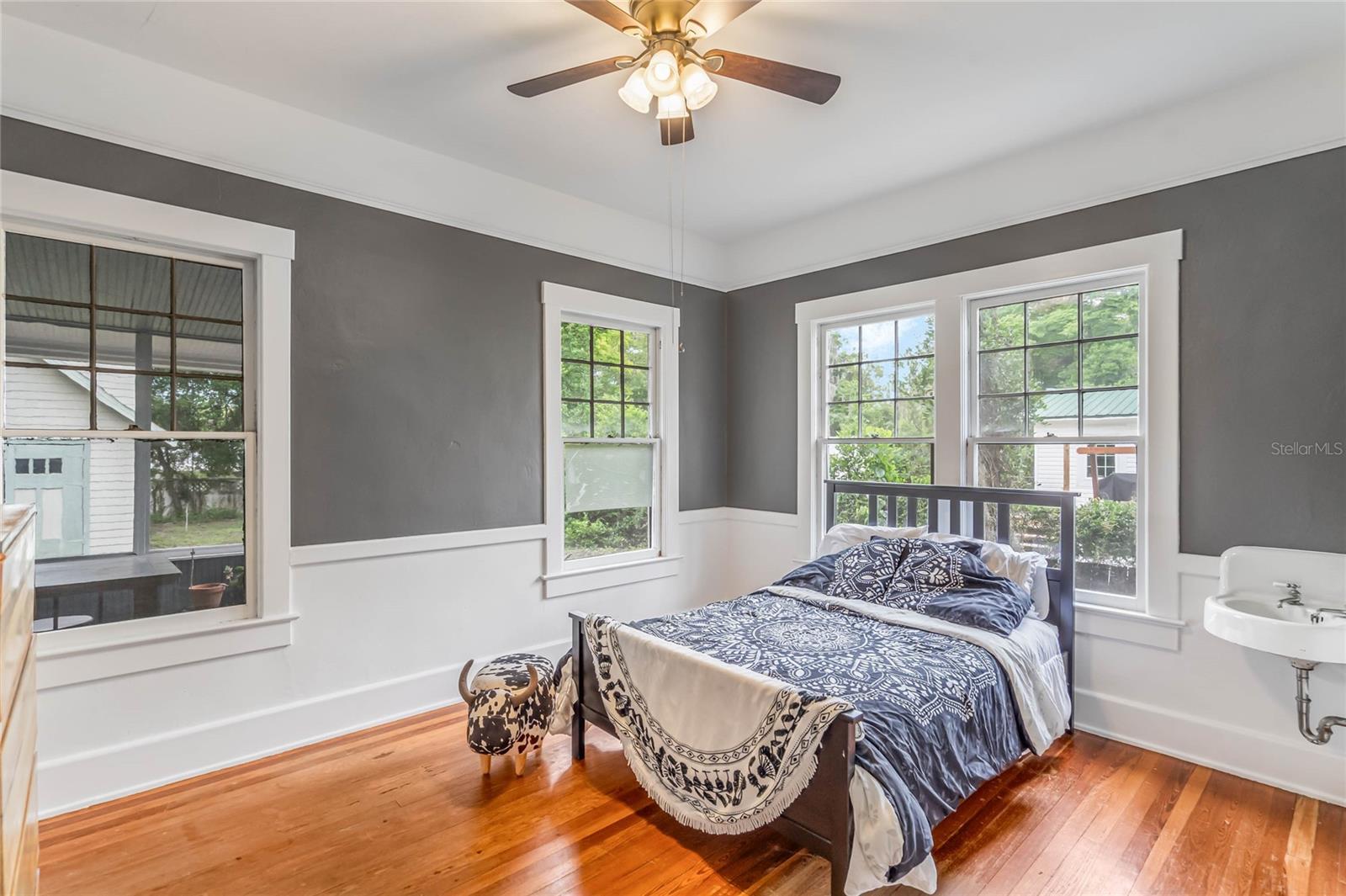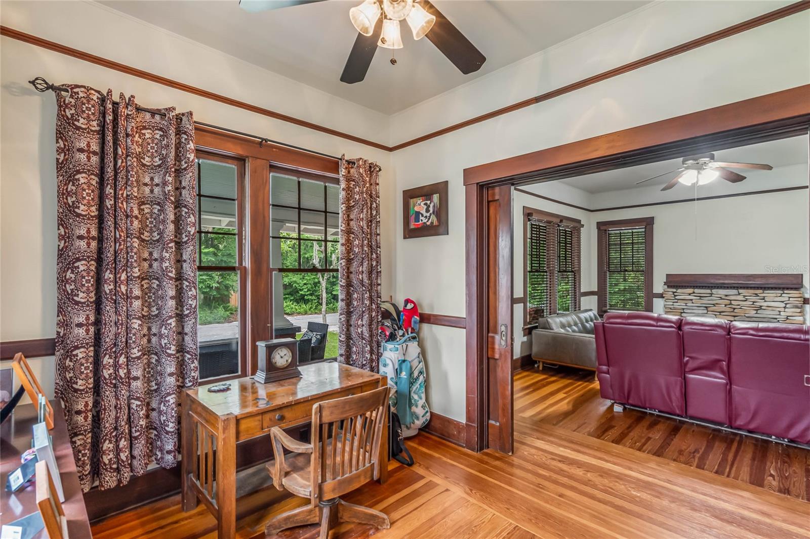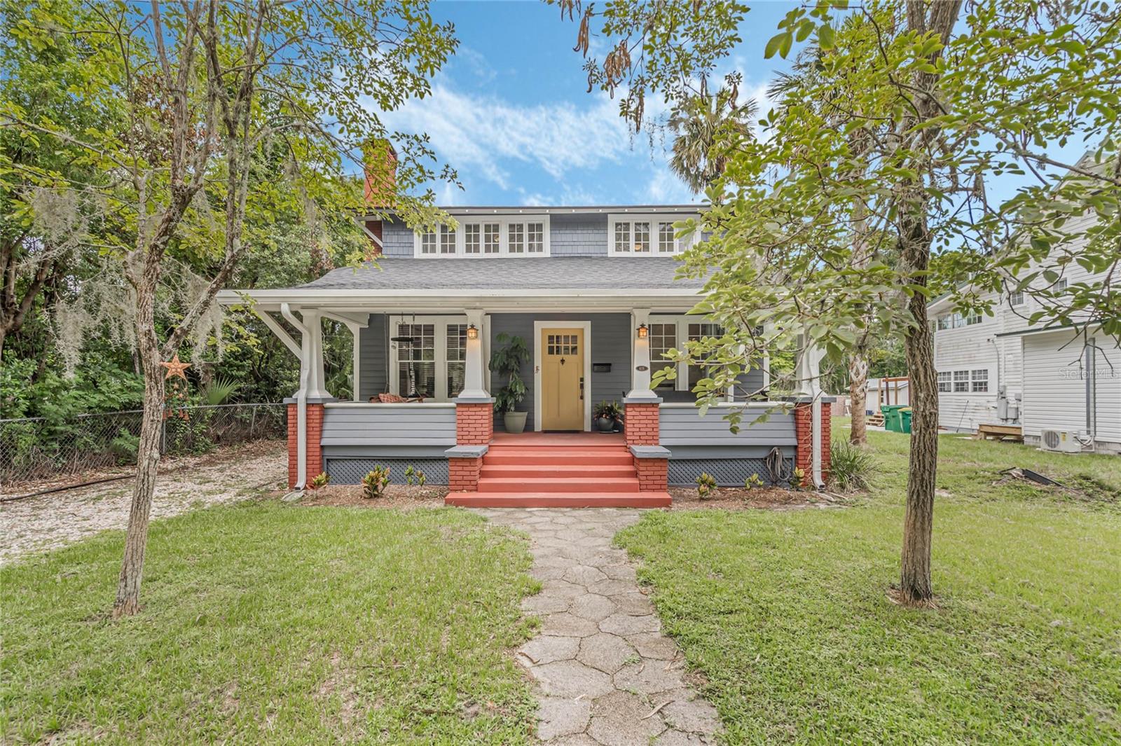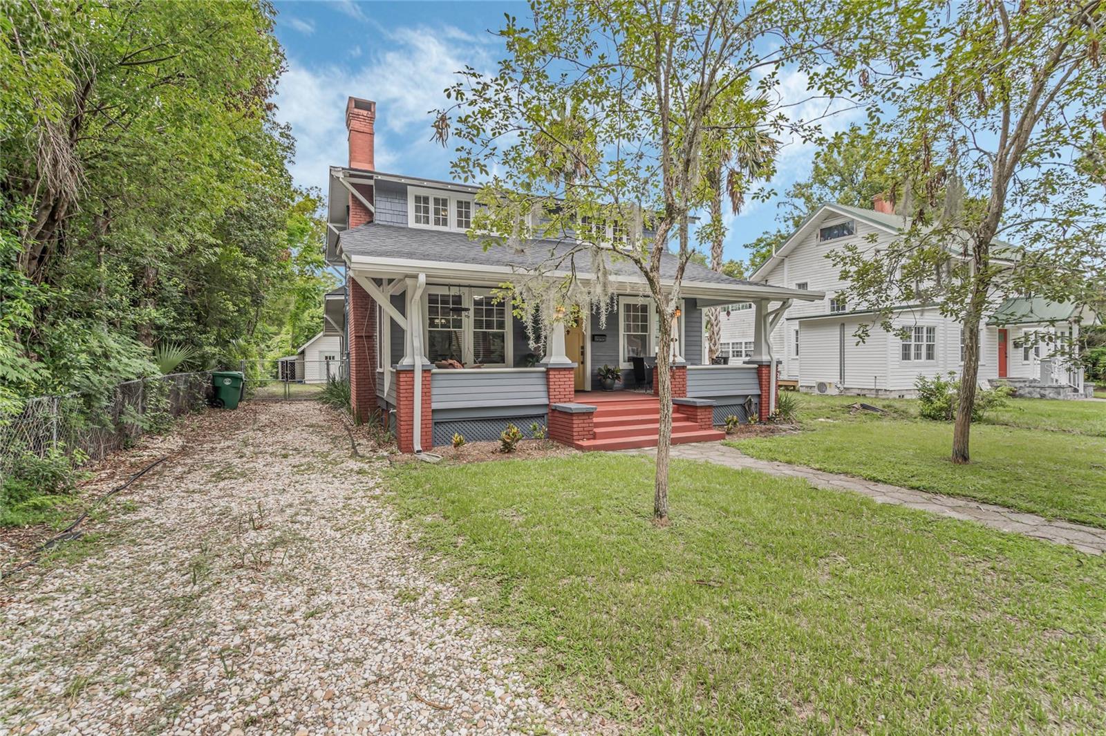 Bangalô histórico de quatro quartos e três banheiros com a combinação perfeita de artesanato do velho mundo e atualizações modernas. O balanço da varanda na varanda coberta convida você a sentar e saborear (ou derramar) o chá. Ao passar pela porta da frente em estilo artesão, você entrará em outra era, com piso de pinho e madeira histórica. A sala de estar e o home office dedicado são separados por portas originais, oferecendo uma arte de trabalhar madeira incomparável em construções mais recentes. A sala é o local perfeito para se reunir em torno da lareira a lenha e deixar a luz natural entrar pelas grandes janelas. Os jantares são muito fáceis, com a sala de estar e a sala de jantar fluindo juntas. Depois da sala de jantar, perfeitamente situada, fica a cozinha com porta de mordomo para separação, se necessário. Em sua cozinha totalmente reformada, você pode picar, assar e servir cercado por eletrodomésticos de aço inoxidável, belos azulejos e iluminação aprimorada. Fora da cozinha fica a porta para a varanda dos fundos, o lugar perfeito para tomar uma refeição ou bebida. Noutras partes do primeiro andar encontrará dois quartos e uma casa de banho, além de mais carpintarias e arrumos originais. Juntamente com mais arrumação embutida, no segundo andar encontrará uma marquise/espaço de yoga/segundo escritório e dois quartos ambos com casas de banho privativas. O amplo quarto principal tem janelas envolventes, closet e banheiro amplo com chuveiro e banheira de imersão. O segundo quarto no andar de cima também é grande e possui armário embutido, janelas envolventes e banheiro privativo. NOVO TELHADO, sistemas HVAC mais recentes, novo aquecedor de água quente a gás, cozinha renovada e novo revestimento de tábuas Hardie! Quintal totalmente cercado! Garagem individual para dois carros, aquecida e refrigerada, com muita arrecadação e até uma oficina. No coração do Distrito Histórico Noroeste de DeLand, você estará a apenas uma curta caminhada pelas ruas arborizadas até a Stetson University ou o centro de DeLand. Se você está procurando características históricas, atualizações modernas e proximidade caminhável de Stetson e do centro de DeLand, sua busca terminou!