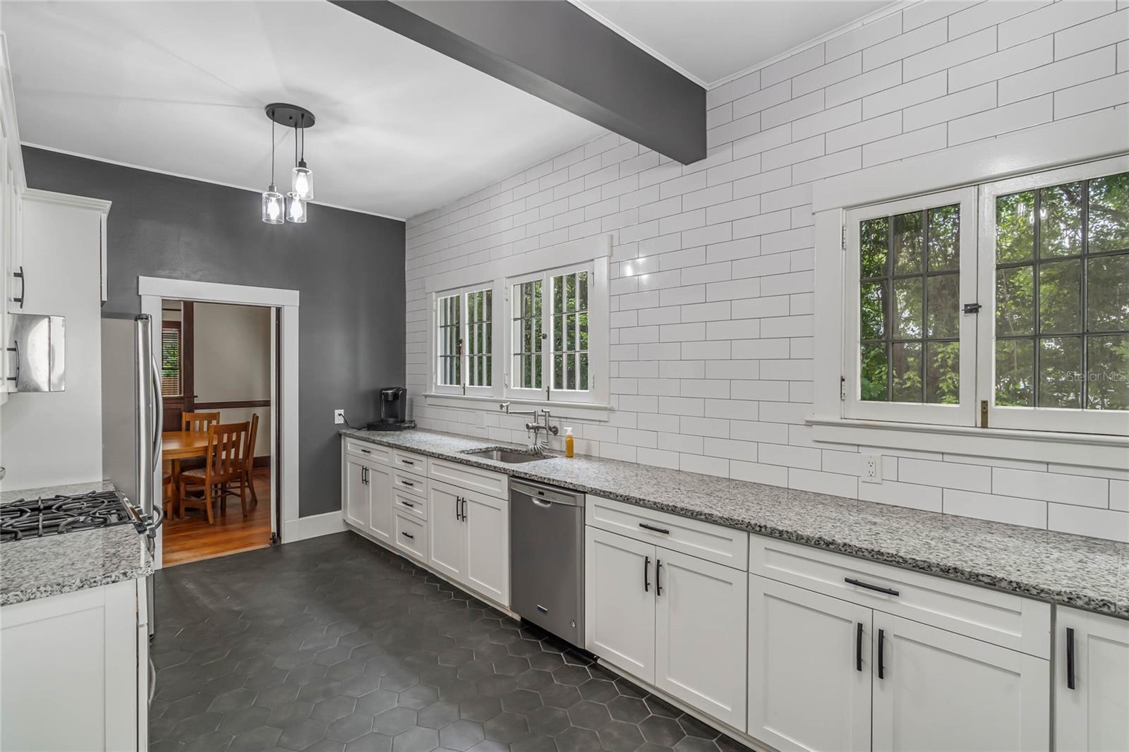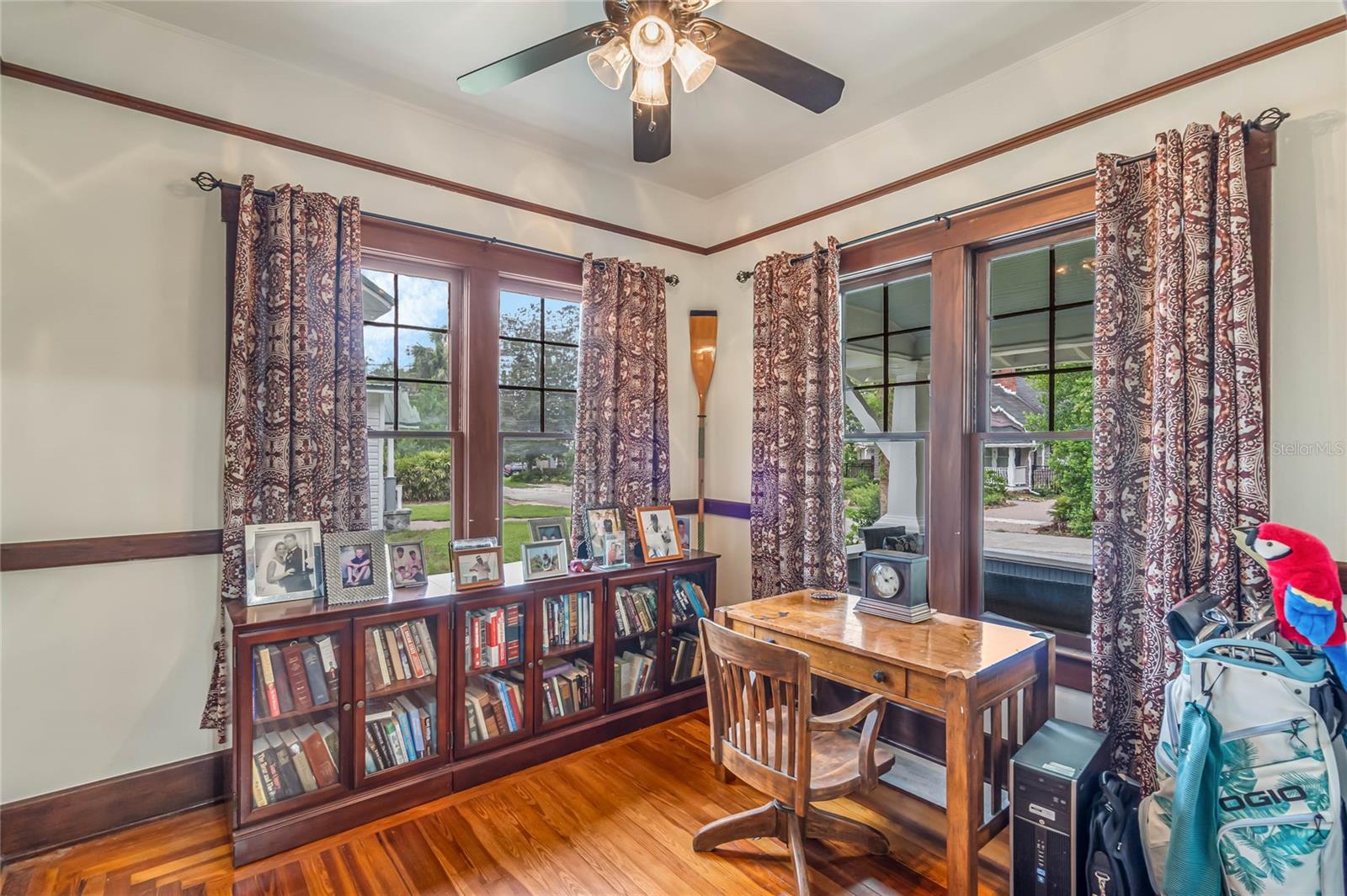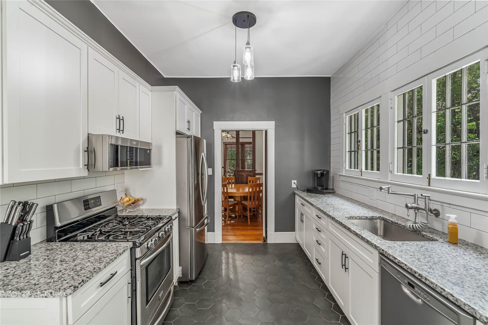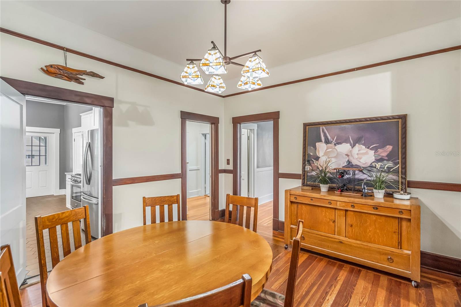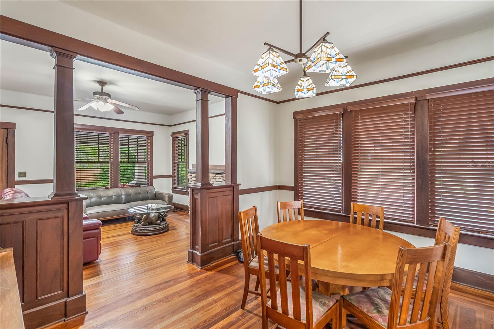 Bangalô histórico de quatro quartos e três banheiros com a combinação perfeita de artesanato do velho mundo e atualizações modernas. O balanço da varanda na varanda coberta convida você a sentar e saborear (ou derramar) o chá. Ao passar pela porta da frente em estilo artesão, você entrará em outra era, com piso de pinho e madeira histórica. A sala de estar e o home office dedicado são separados por portas originais, oferecendo uma arte de trabalhar madeira incomparável em construções mais recentes. A sala é o local perfeito para se reunir em torno da lareira a lenha e deixar a luz natural entrar pelas grandes janelas. Os jantares são muito fáceis, com a sala de estar e a sala de jantar fluindo juntas. Depois da sala de jantar, perfeitamente situada, fica a cozinha com porta de mordomo para separação, se necessário. Em sua cozinha totalmente reformada, você pode picar, assar e servir cercado por eletrodomésticos de aço inoxidável, belos azulejos e iluminação aprimorada. Fora da cozinha fica a porta para a varanda dos fundos, o lugar perfeito para tomar uma refeição ou bebida. Noutras partes do primeiro andar encontrará dois quartos e uma casa de banho, além de mais carpintarias e arrumos originais. Juntamente com mais arrumação embutida, no segundo andar encontrará uma marquise/espaço de yoga/segundo escritório e dois quartos ambos com casas de banho privativas. O amplo quarto principal tem janelas envolventes, closet e banheiro amplo com chuveiro e banheira de imersão. O segundo quarto no andar de cima também é grande e possui armário embutido, janelas envolventes e banheiro privativo. NOVO TELHADO, sistemas HVAC mais recentes, novo aquecedor de água quente a gás, cozinha renovada e novo revestimento de tábuas Hardie! Quintal totalmente cercado! Garagem individual para dois carros, aquecida e refrigerada, com muita arrecadação e até uma oficina. No coração do Distrito Histórico Noroeste de DeLand, você estará a apenas uma curta caminhada pelas ruas arborizadas até a Stetson University ou o centro de DeLand. Se você está procurando características históricas, atualizações modernas e proximidade caminhável de Stetson e do centro de DeLand, sua busca terminou!