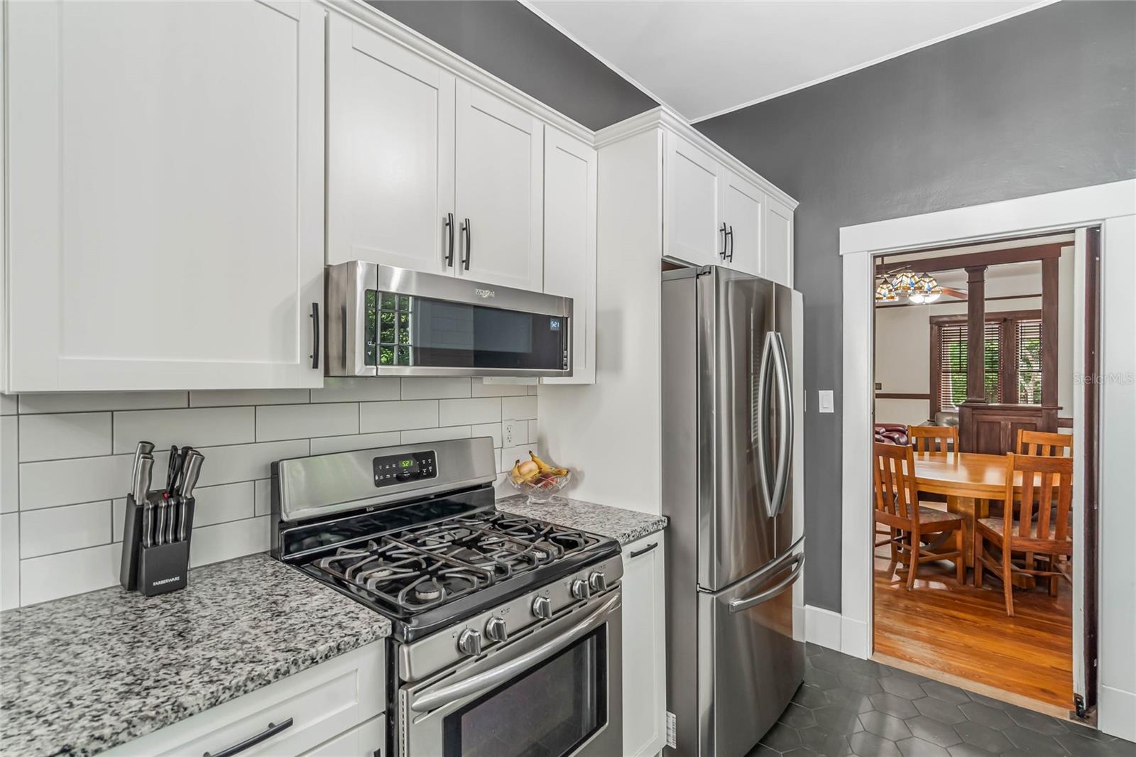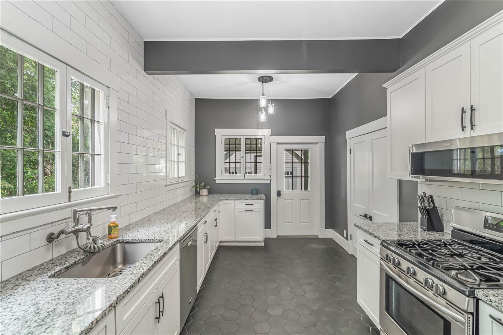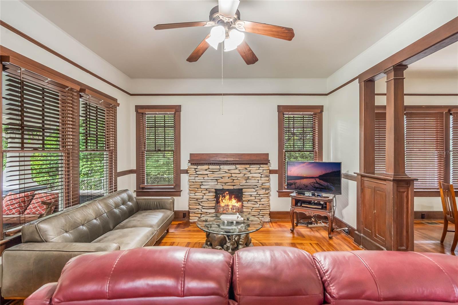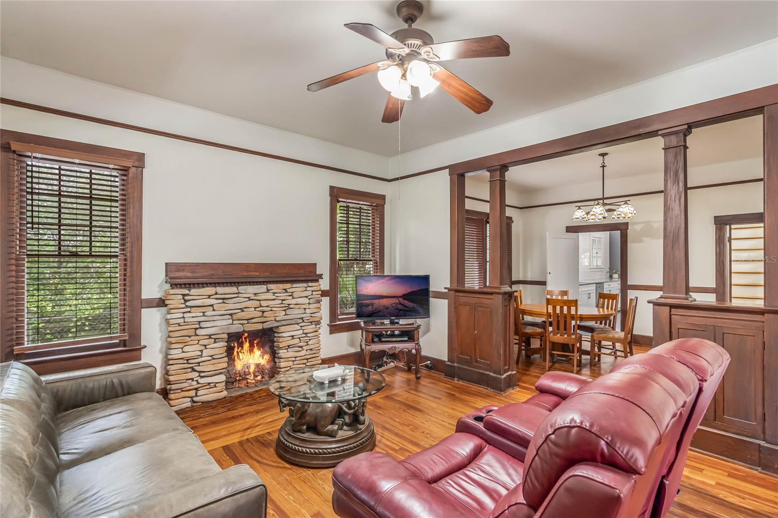 Bangalô histórico de quatro quartos e três banheiros com a combinação perfeita de artesanato do velho mundo e atualizações modernas. O balanço da varanda na varanda coberta convida você a sentar e saborear (ou derramar) o chá. Ao passar pela porta da frente em estilo artesão, você entrará em outra era, com piso de pinho e madeira histórica. A sala de estar e o home office dedicado são separados por portas originais, oferecendo uma arte de trabalhar madeira incomparável em construções mais recentes. A sala é o local perfeito para se reunir em torno da lareira a lenha e deixar a luz natural entrar pelas grandes janelas. Os jantares são muito fáceis, com a sala de estar e a sala de jantar fluindo juntas. Depois da sala de jantar, perfeitamente situada, fica a cozinha com porta de mordomo para separação, se necessário. Em sua cozinha totalmente reformada, você pode picar, assar e servir cercado por eletrodomésticos de aço inoxidável, belos azulejos e iluminação aprimorada. Fora da cozinha fica a porta para a varanda dos fundos, o lugar perfeito para tomar uma refeição ou bebida. Noutras partes do primeiro andar encontrará dois quartos e uma casa de banho, além de mais carpintarias e arrumos originais. Juntamente com mais arrumação embutida, no segundo andar encontrará uma marquise/espaço de yoga/segundo escritório e dois quartos ambos com casas de banho privativas. O amplo quarto principal tem janelas envolventes, closet e banheiro amplo com chuveiro e banheira de imersão. O segundo quarto no andar de cima também é grande e possui armário embutido, janelas envolventes e banheiro privativo. NOVO TELHADO, sistemas HVAC mais recentes, novo aquecedor de água quente a gás, cozinha renovada e novo revestimento de tábuas Hardie! Quintal totalmente cercado! Garagem individual para dois carros, aquecida e refrigerada, com muita arrecadação e até uma oficina. No coração do Distrito Histórico Noroeste de DeLand, você estará a apenas uma curta caminhada pelas ruas arborizadas até a Stetson University ou o centro de DeLand. Se você está procurando características históricas, atualizações modernas e proximidade caminhável de Stetson e do centro de DeLand, sua busca terminou!