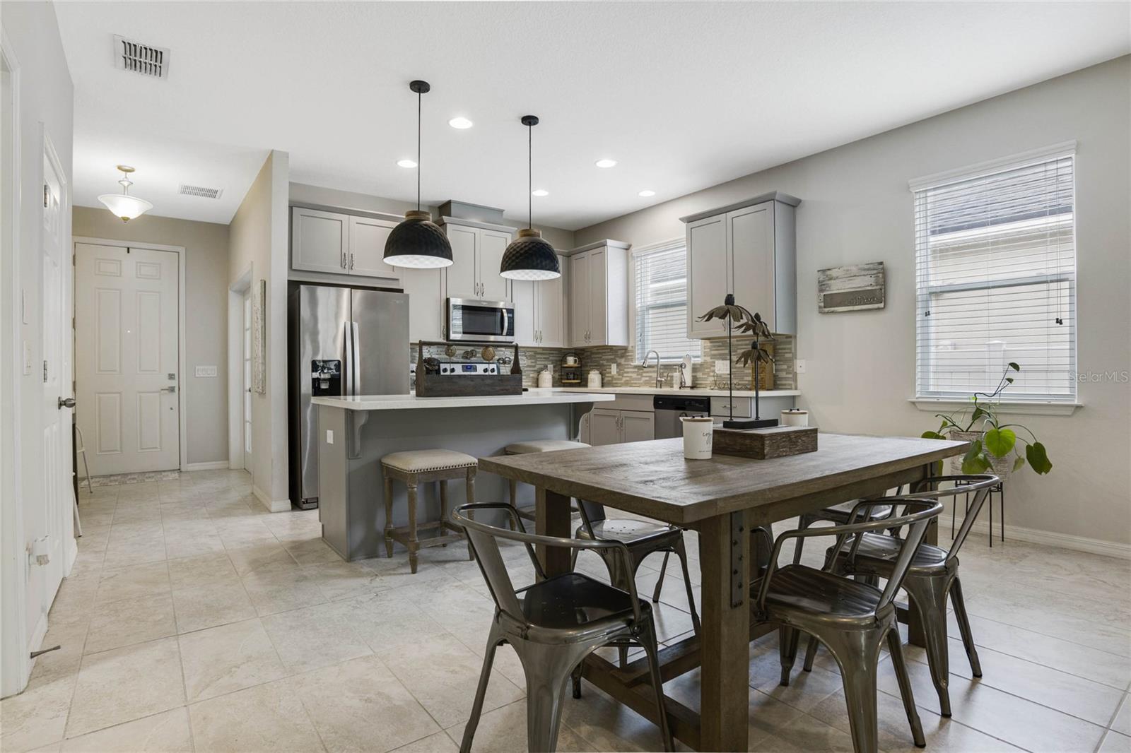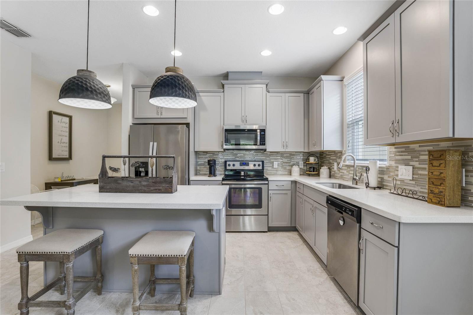 Modelo de Amberly altamente procurado | Planta baixa aberta | ** ECONOMENTO NAS BILLAS DE PODER MENSAL COM SOLAR! ** | Tinta externa fresca | Varanda da frente | Acentos de pedra | Quintal cercado de vinil | Paisagístico | Luminárias atualizadas | 2023 transferência de secadora de lavadora | Aproveite a grande entrada e a luz natural que flui para a casa! O Escritório/Den está fora da entrada e é o local perfeito para trabalhar ou aprender em casa, as portas francesas oferecem privacidade. A cozinha/sala de estar/sala tem muito espaço para entreter e oferece vistas privadas no quintal. A cozinha oferece uma grande ilha central com assentos de banquinho, utensílios de aço inoxidável, backsplash decorativos e muito espaço de contador e armazenamento. O quarto principal oferece um ventilador de teto, um grande armário e banheiro privativo em suíte. O banheiro tem uma vaidade deslumbrante com pias duplas e uma caminhada no chuveiro. Quartos adicionais são espaçosos e compartilham um banheiro de hóspedes. Lavanderia interna. A varanda coberta será o local favorito de todos para desfrutar de acabar depois de um longo dia. O quintal cercado tem muito espaço para todos correrem e brincarem! As comodidades do bairro incluem: piscina, playground, terrenos de manutenção e instalações recreativas. A localização está perto de tudo! Minutos das compras, restaurantes, Downtown DeLand e I-4! Não espere sua consulta hoje para ver toda essa casa ter a oferecer! ** A informação no MLS é considerada correta, mas não garantida **