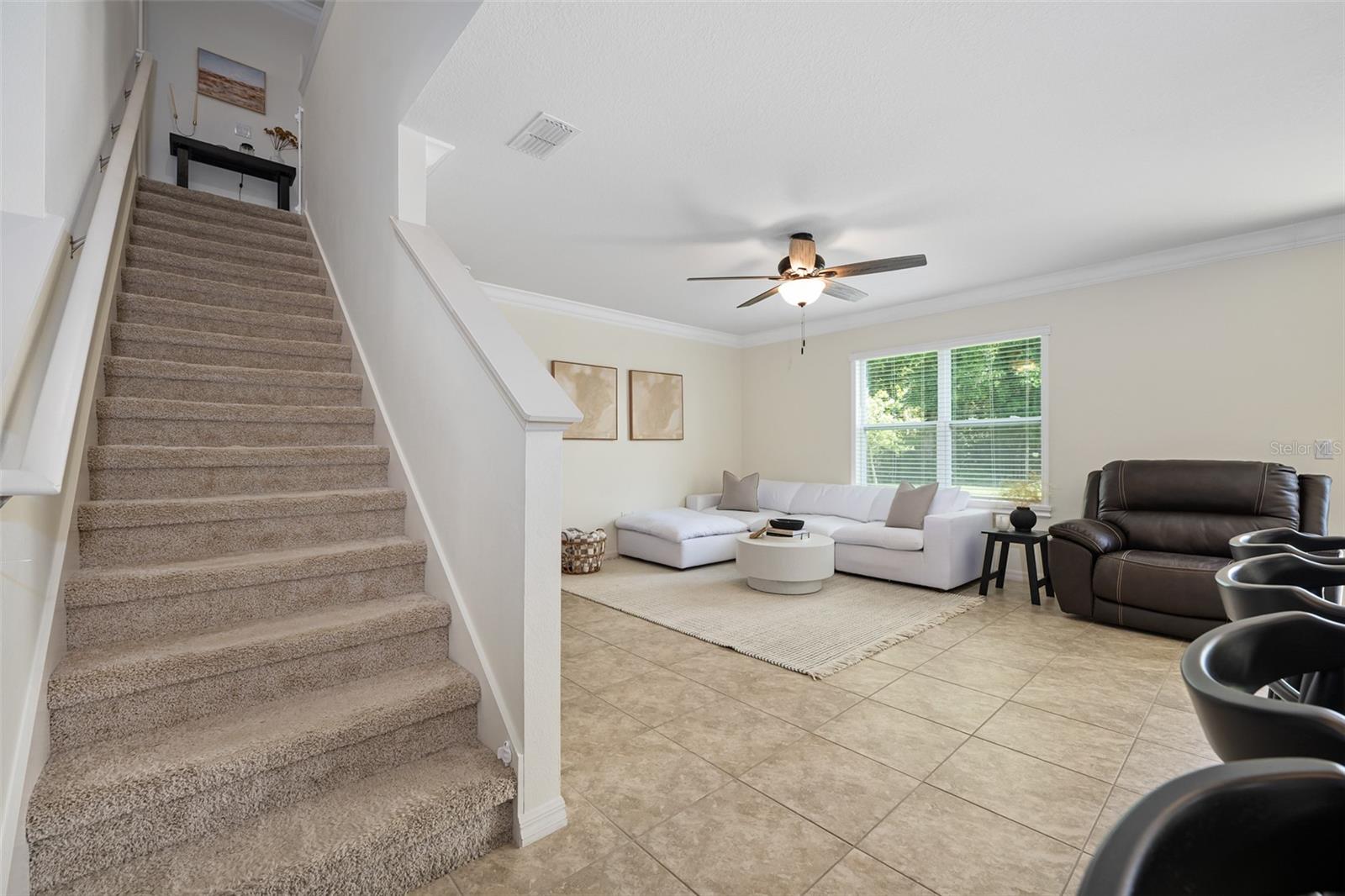 De volta ao mercado. Os recursos são infinitos, começando com uma sala de estar formal, uma combinação de cozinha/sala de jantar, além de uma espaçosa sala familiar e uma sala bônus no andar de cima. A moldura da coroa está localizada em toda a casa. A cozinha oferece eletrodomésticos inteligentes, bancadas em granito e armário com despensa. Esta casa de blocos de concreto tem calhas, um sistema solar totalmente pago para toda a casa para reduzir seus custos de energia, está conectada para um gerador reserva e um quintal cercado de privacidade. Aproveite a paz e tranquilidade deste bairro muito procurado, convenientemente localizado a poucos minutos das praias do condado de Volusia, de Orlando e de seus parques temáticos e de lojas, hospitais, restaurantes, escolas e muito mais nas proximidades. A casa é toda construída em blocos.