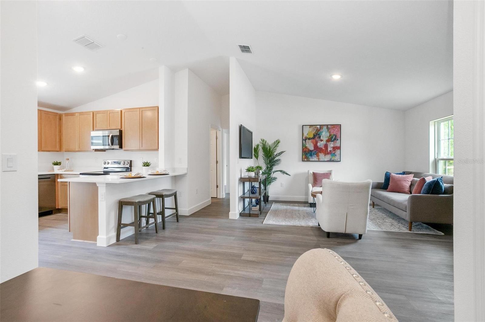 Redução de preços !! Nova casa !!! Nunca sob contrato! Não perca esta comunidade desejável em DeLand, Flórida. ANNA MARIA PLAN PLANE !! Esta impressionante residência de 4 quartos e 2 banheiros possui recursos modernos, design atencioso e uma atmosfera convidativa perfeita para famílias ou investidores !!! Fácil manutenção de piso de vinil de luxo em toda a casa. Desfrute de muitas atualizações, como bancadas de quartzo e pacote de aparelhos de aço inoxidável. A casa possui uma lavanderia interna. O quintal oferece espaço para atividades ao ar livre, jardinagem ou relaxamento ao sol da Flórida. Sem HOA !!!! Muita natureza !!! Desenvolvimento curto para o centro histórico de DeLand. O construtor adicionou uma cerca de privacidade ao quintal! Proximidade de opções do centro de DeLand, compras, refeições e entretenimento. Fácil acesso às principais rodovias para o deslocamento para cidades próximas, como Orlando e a praia. Garantia do construtor