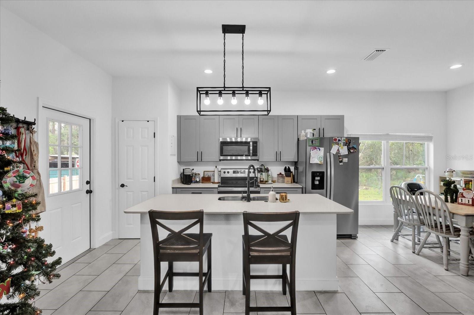 Empréstimo de VA assumido em 4,99%, o comprador deve se qualificar. Hipoteca perto de US $ 1.900/mês. Bem -vindo para casa! Não espere pela nova construção. Esta compilação turnkey 2023 é tudo o que você sempre quis e muito mais! Localizado na subdivisão altamente desejada e promissora de Daytona Park Estates, esta casa oferece 3 quartos, 2 banheiros, uma garagem para dois carros e um quintal de grandes dimensões sem vizinhos traseiros. Ao entrar em casa, você tem pisos de azulejos de cerâmica consistentes que passam por toda parte, uma planta baixa e aberta e muitas atualizações de primeira classe. Com a planta baixa, os principais espaços fluem juntos sem problemas. A sala fica diretamente fora da cozinha e tem amplo espaço para todos os seus móveis. A cozinha é espaçosa e possui uma grande ilha, armários suaves e de perto, utensílios de aço inoxidável e bancadas de quartzo. Logo da cozinha está a sua sala de jantar com grandes janelas duplas com vista para o quintal, permitindo que toneladas de luz natural brilhassem. O quarto principal é superdimensionado com armários de mão dele e dela, teto de bandeja e um grande banheiro na suíte. O banheiro apresenta vaidades duplas e um chuveiro lindamente ladrado à mão. Os dois quartos restantes estão do outro lado da casa, eles são espaçosos com armários embutidos, e o banheiro compartilhado tem uma combinação de chuveiro/banheira que acomodará todas as necessidades. Além disso, deste lado da casa, você tem um espaço flexível embutido que tornaria o escritório ou a área de estudo perfeita. Por fim, você tem uma varanda ao ar livre com vista para o seu quintal lindamente paisagístico, sem vizinhos traseiros, tornando esta a área perfeita para pegar o pôr do sol e relaxar ou hospedar grandes reuniões com privacidade. Esta casa tem muito a oferecer enquanto está convenientemente localizada entre as melhores praias da Flórida e o centro de Orlando. Não espere, agende sua exibição particular hoje.