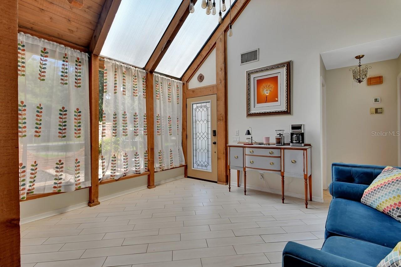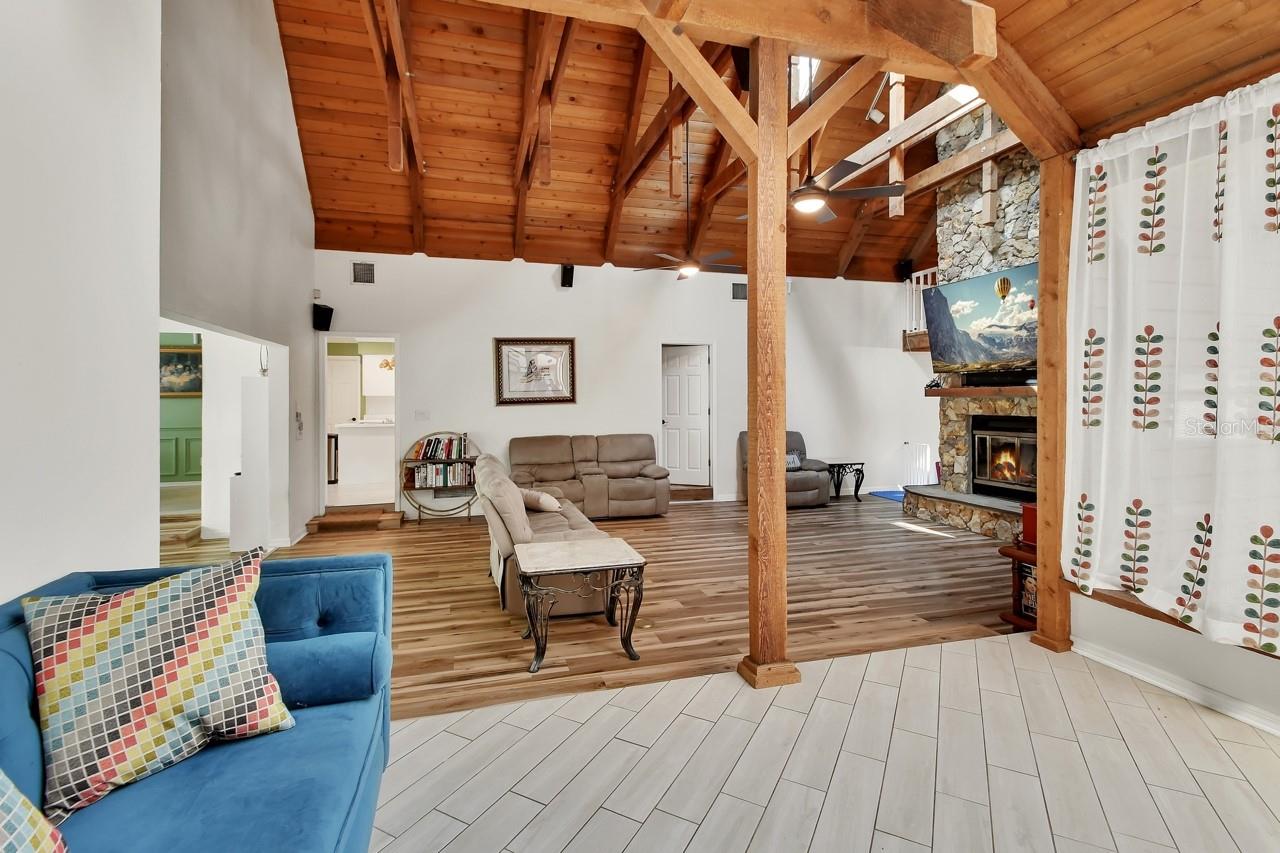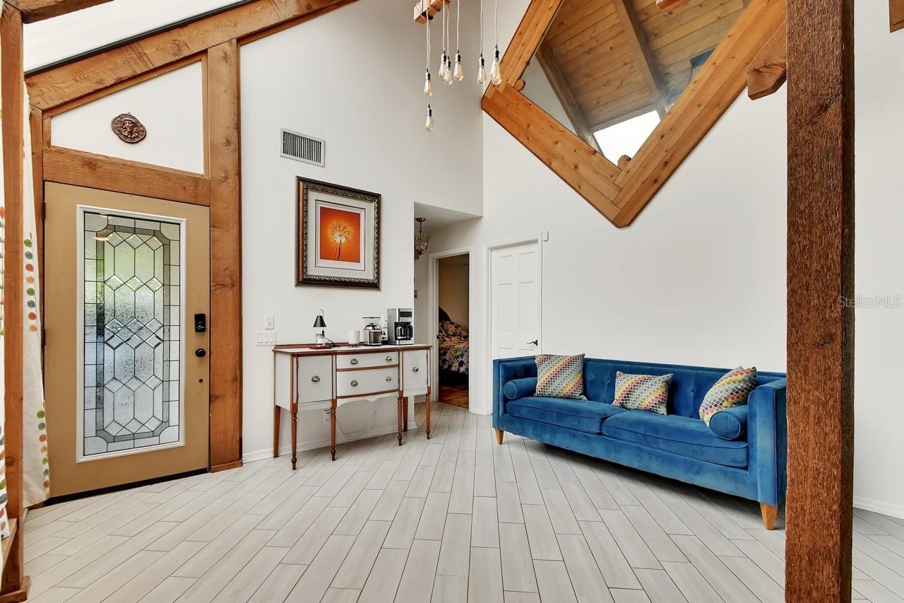 Telhado com claraboias (2022). Esta casa exclusiva em Trails West, construída sob medida, exala o charme europeu do estilo chalé Tudor. Situada em um amplo terreno de esquina de meio acre na muito procurada comunidade de North DeLand's Trails West, esta casa é cercada por um paisagismo vibrante e maduro e árvores frutíferas que realçam seu apelo pitoresco. Entrar pelo convidativo hall de entrada, com porcelanato, cria uma primeira impressão calorosa e acolhedora. A espaçosa e iluminada área de estar cativa imediatamente com seus altos tetos de catedral, detalhes personalizados de macho e fêmea e vigas expostas - preparando o cenário para um espaço de entretenimento excepcional. No centro da sala está uma impressionante lareira de laje do chão ao teto, com um espaço bônus aconchegante atrás dela, perfeito para uma área de estar secundária ou sala de jogos. Uma escada em espiral recentemente adicionada leva a um encantador loft logo atrás da lareira, adicionando um toque único ao design da casa. A cozinha lindamente atualizada apresenta uma grande ilha, nova iluminação embutida e uma aconchegante copa com janela saliente. Adjacente à cozinha, a elegante área de jantar oferece fácil acesso ao quintal totalmente cercado com área de gazebo, ideal para reuniões internas e externas. Os atuais proprietários transformaram a antiga sala de jantar formal em um quarto adicional, adicionando portas, que também poderia ser usada como escritório. Caso decida torná-la novamente uma sala de jantar formal, basta remover as portas. Isso permite versatilidade ao layout. A suíte principal com planta dividida é um retiro privado, apresentando tetos requintados e um banheiro privativo totalmente reformado com pias duplas, um box amplo amplo e dois closets espaçosos. Uma entrada circular oferece acesso conveniente à frente e aos fundos da casa, enquanto a garagem individual para dois carros oferece amplo estacionamento, arrecadação e oficina. Atualizações em 2022, Telhado, novas cercas de vinil, eletrodomésticos atualizados (2022) e caixas de painéis elétricos substituídas. Esta casa excepcional combina perfeitamente personalidade, atualizações modernas e uma localização imbatível - não perca a oportunidade de torná-la sua! Você vai adorar a comunidade Trails West. Piscina comunitária, Clubhouse, quadras de tênis, quadras de pickleball. Lindo estabelecimento com carvalhos ao longo da entrada. Apenas 10 minutos do encantador centro da cidade de DeLand.