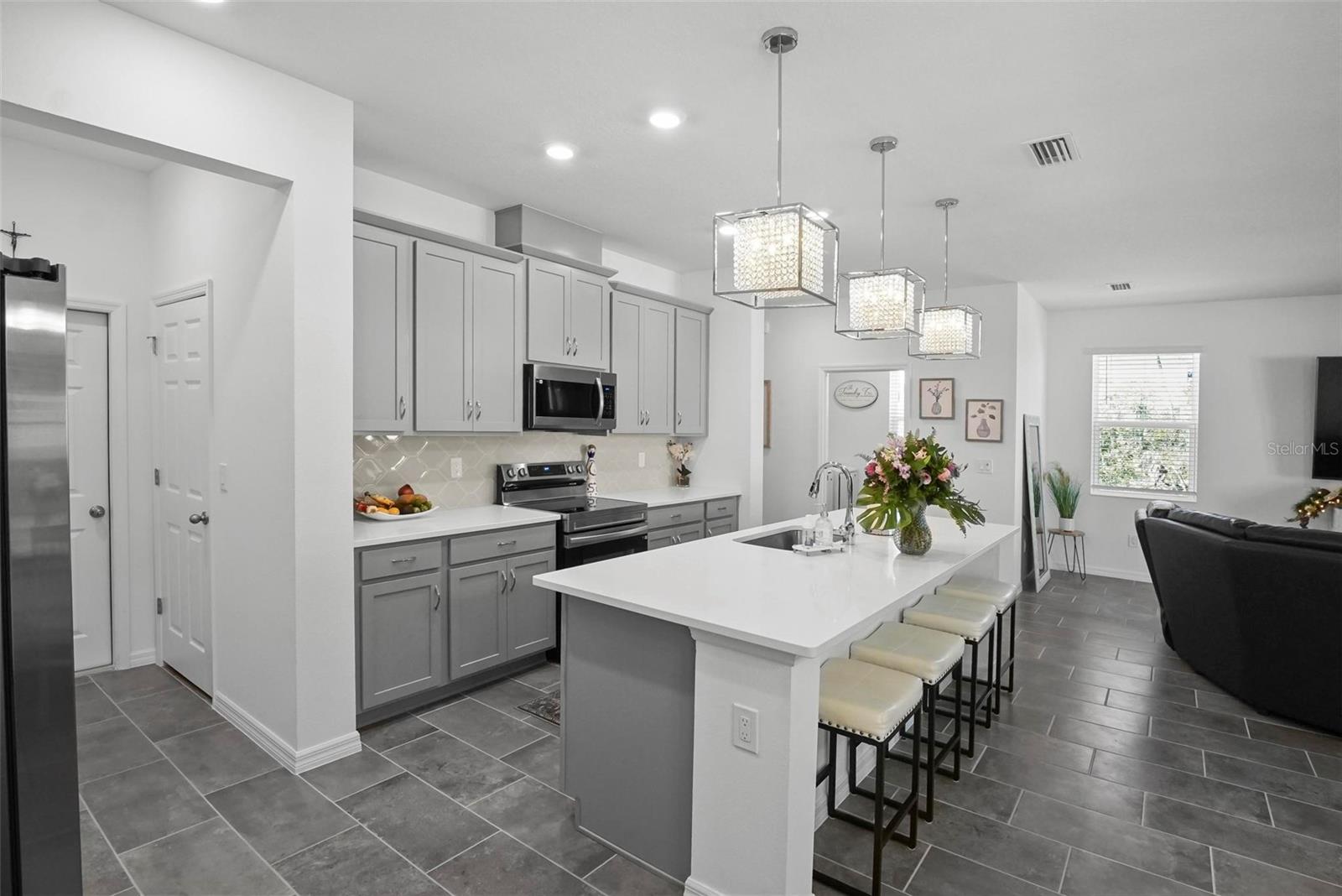Convenientemente localizada na nova comunidade de piscinas de Beresford Woods, esta casa está habitada há cerca de um ano e está CARREGADA de ATUALIZAÇÕES. Este modelo Vero de mais de 2.900 pés quadrados está em condições imaculadas e fica ao lado de um lote protegido (lote duplo aberto que nunca será construído) com um incrível oásis de quintal privado. A espaçosa área de estar aberta possui portas deslizantes triplas que levam à varanda traseira e é adjacente à linda cozinha que possui uma enorme ilha e balcões com tampo de quartzo, iluminação pendente atualizada, armários de 42" e uma despensa. A suíte principal de 29' X 13' com enorme closet e espaço bônus (perfeito para escritório/área de estar) possui um lindo banheiro privativo com balcões com tampo de quartzo, pias duplas e box amplo. Vendedor as atualizações incluem: lote premium, pátio de concreto 20 X 22, cerca de vinil de 6 pés com dois portões, bar ao ar livre em estilo taverna com 6 bancos altos, calhas e iluminação pendente. Recursos adicionais incluem filtro de luz antibacteriano UV para o sistema de ar condicionado e capacidade de casa inteligente, incluindo a lavadora e a secadora, permanecem com sua nova casa. enganado ao pensar que as taxas de juros não podem ser alteradas. Uma nova casa em construção NÃO oferecerá todas essas atualizações por ESTE preço. Além disso, a piscina comunitária em estilo resort com cabana e playground agora está aberta apenas para residentes de Beresford Woods.
