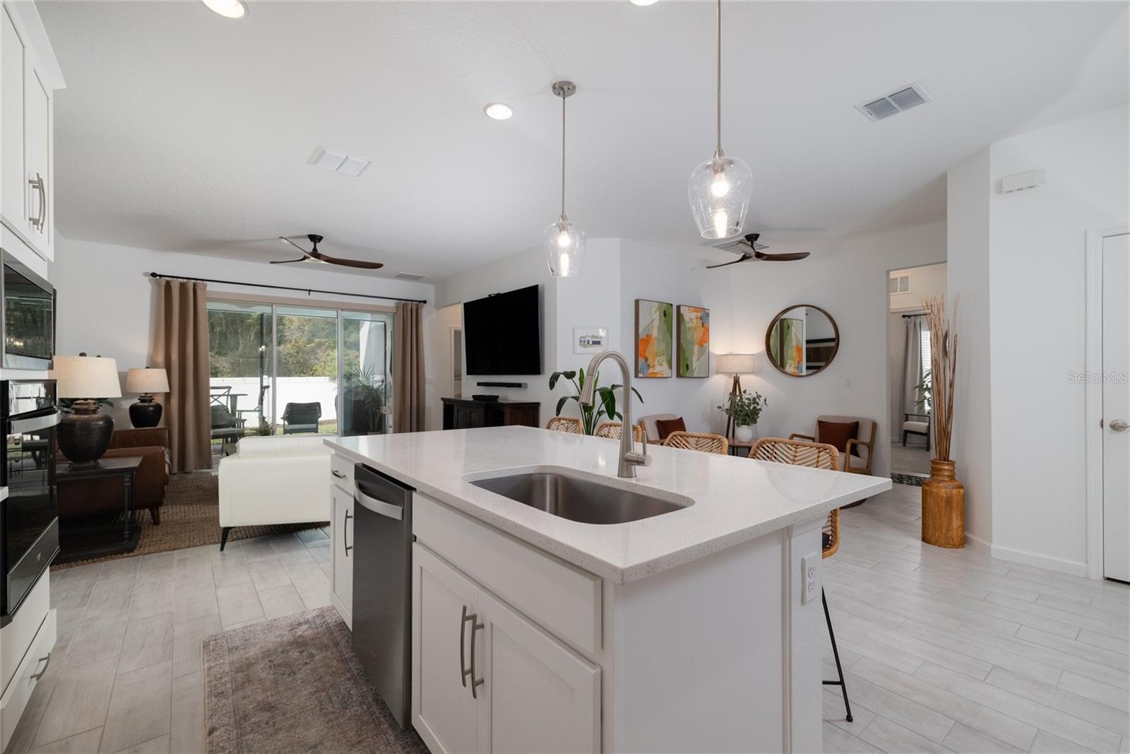 Queda de preço! Aninhado na conservação, olhando a lagoa sem vizinhos traseiros ~ Por que esperar 8 meses para construir quando toda essa "beleza" está pronta para você aproveitar agora? Esta casa espaçosa imaculada mostra melhor que o modelo e está pronto para se mudar! O conceito aberto é leve e brilhante e flui perfeitamente com amplos espaços privados. Lá fora, você encontrará paisagismo meticulosamente bem cuidado, jardins exuberantes e um espaçoso quintal espaçoso - excelente para relaxar ou hospedar reuniões. Inúmeras atualizações incluem amaciador de água, calhas, pisos de ladrilhos semelhantes a madeira, com carpete em todos os quartos, ventiladores de teto, pátio de pavimentação estendido e TV anexada em Lanai W. Divisão, 4 quartos, 2 banheiros, 2 carros na garagem com luz automática. Janelas de painel duplo, vestidas com lindas cortinas e persianas. A cozinha gourmet gourmet brilha com a parte superior dos aparelhos de linha, parte superior de 42 ", bancadas de pedra, backsplash de ladrilhos, cooktop e capuz, 2 fornos de parede e grande barra de café da manhã. Os proprietários da suíte são de tamanho rei. A cidade de DeLand aguarda o nome "The Best Downtown" em uma competição nacional por seus restaurantes requintados, vida noturna, butiques e eventos culturais, para citar alguns. Colagem do estado, ligue hoje!
