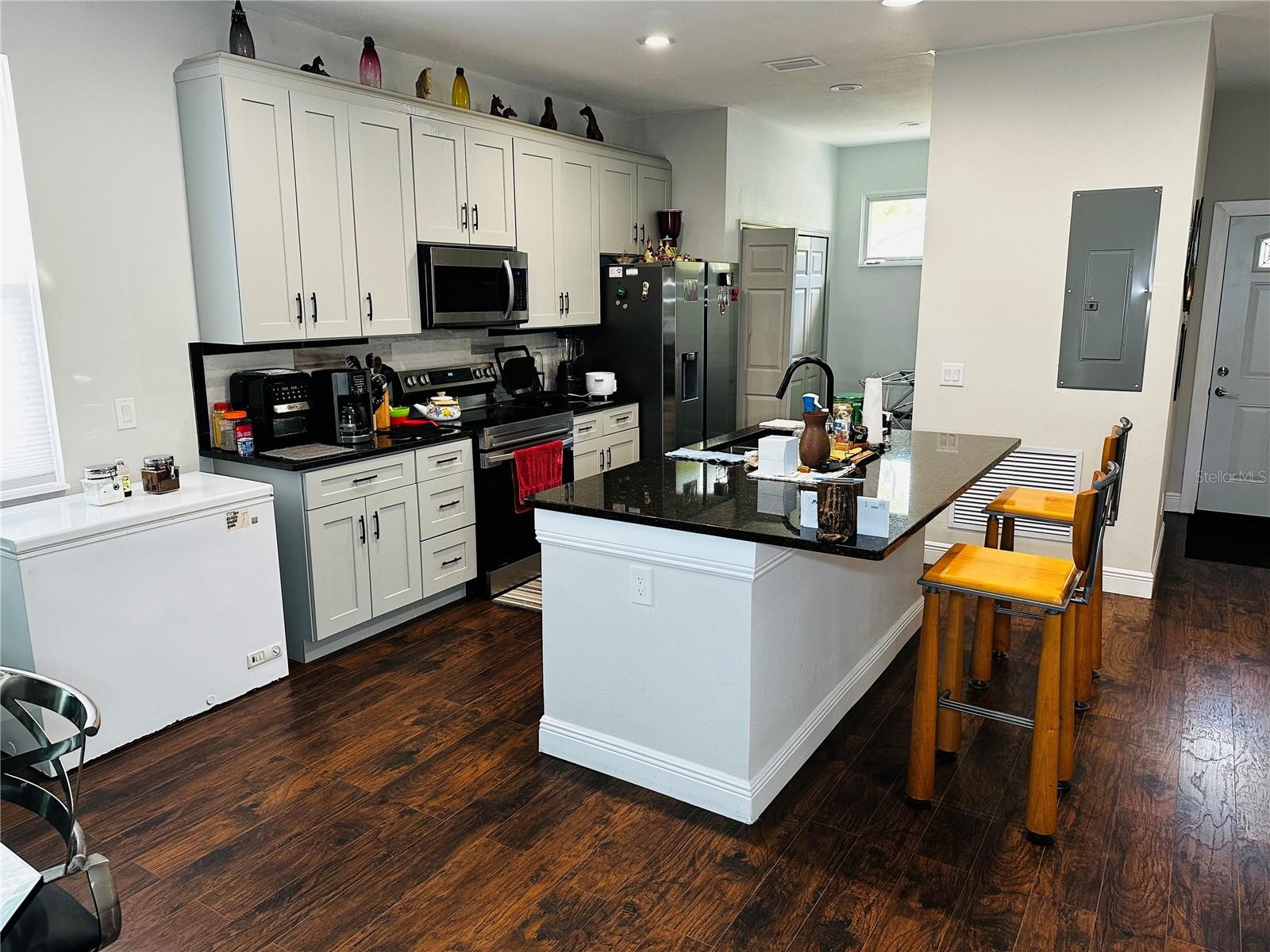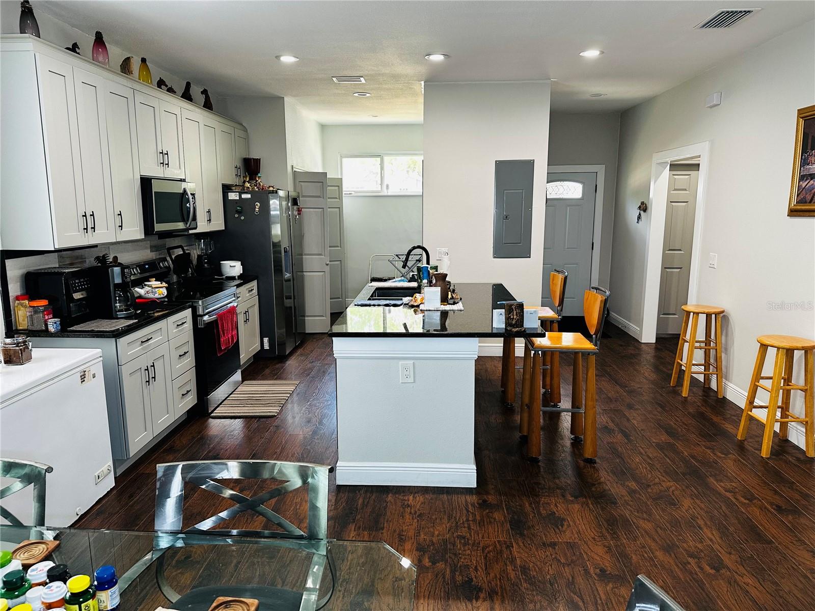 O vendedor motivado que oferece concessões de US $ 5.000 em relação aos custos de fechamento do comprador ou avalia a compra com uma oferta aceitável. Casa construída em 2022 com 3 camas, 2 banheiros em espanhol em casa aberta, localizada no belo coração DeLand. Sem HOA. Esta casa de quarteirão oferece recursos especiais, telhas arquitetônicas no telhado, belos utensílios de aço inoxidável e granito com backsplash de pedra, piso laminado em toda a casa, varanda de trás coberta e grande quintal para hospedar churrasco e jardinagem.