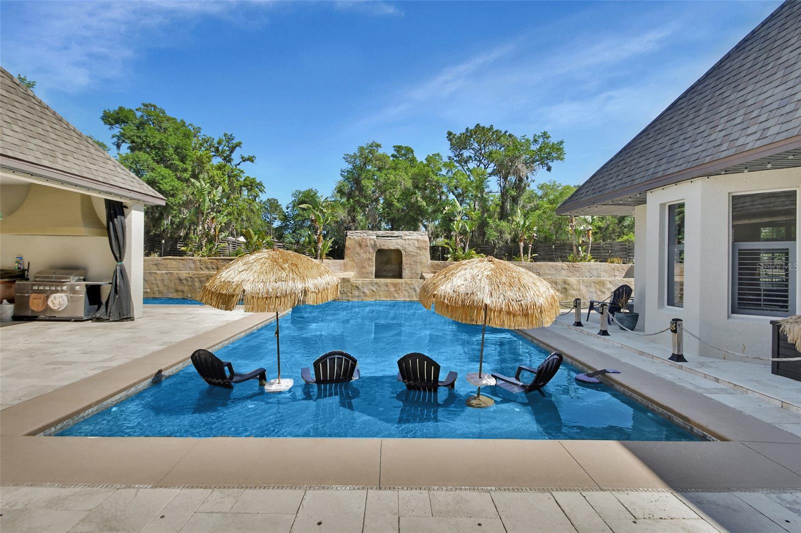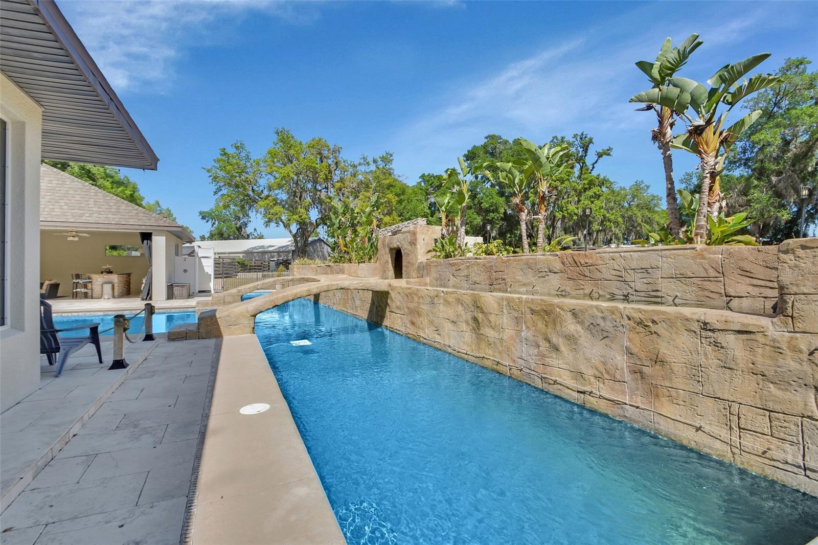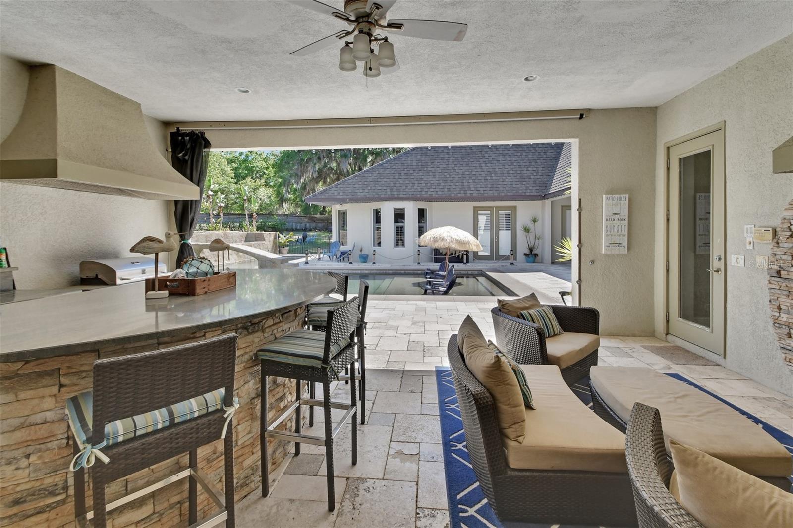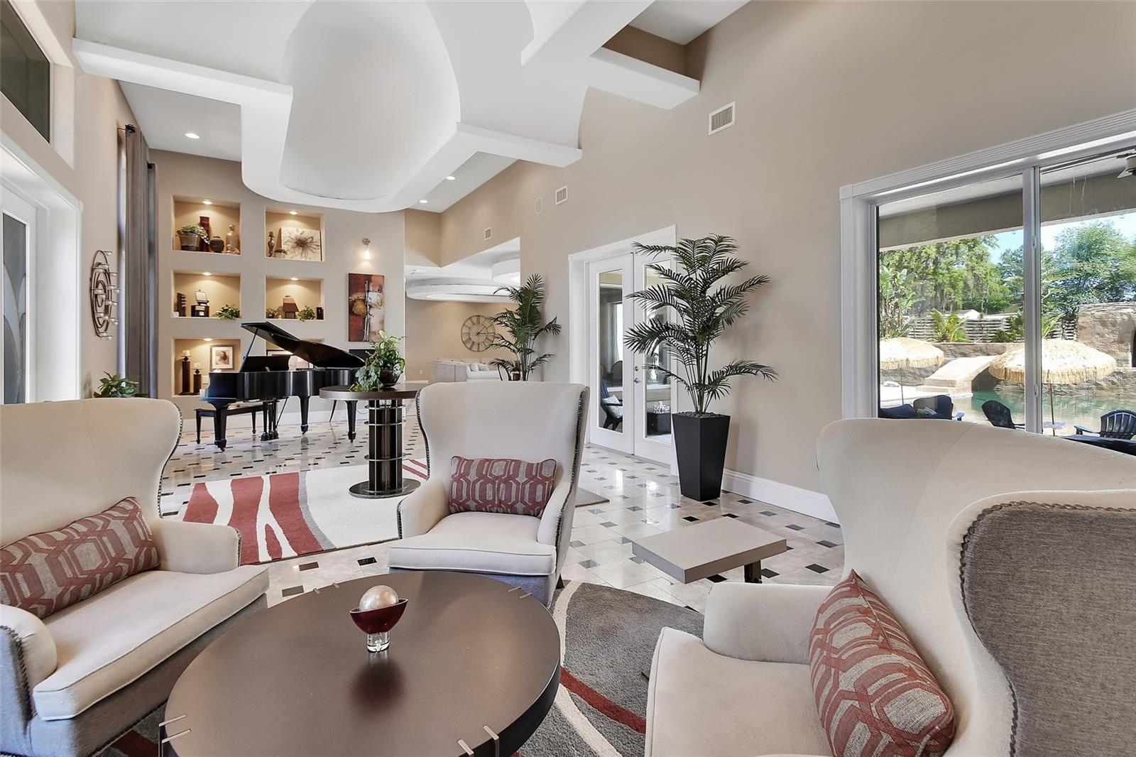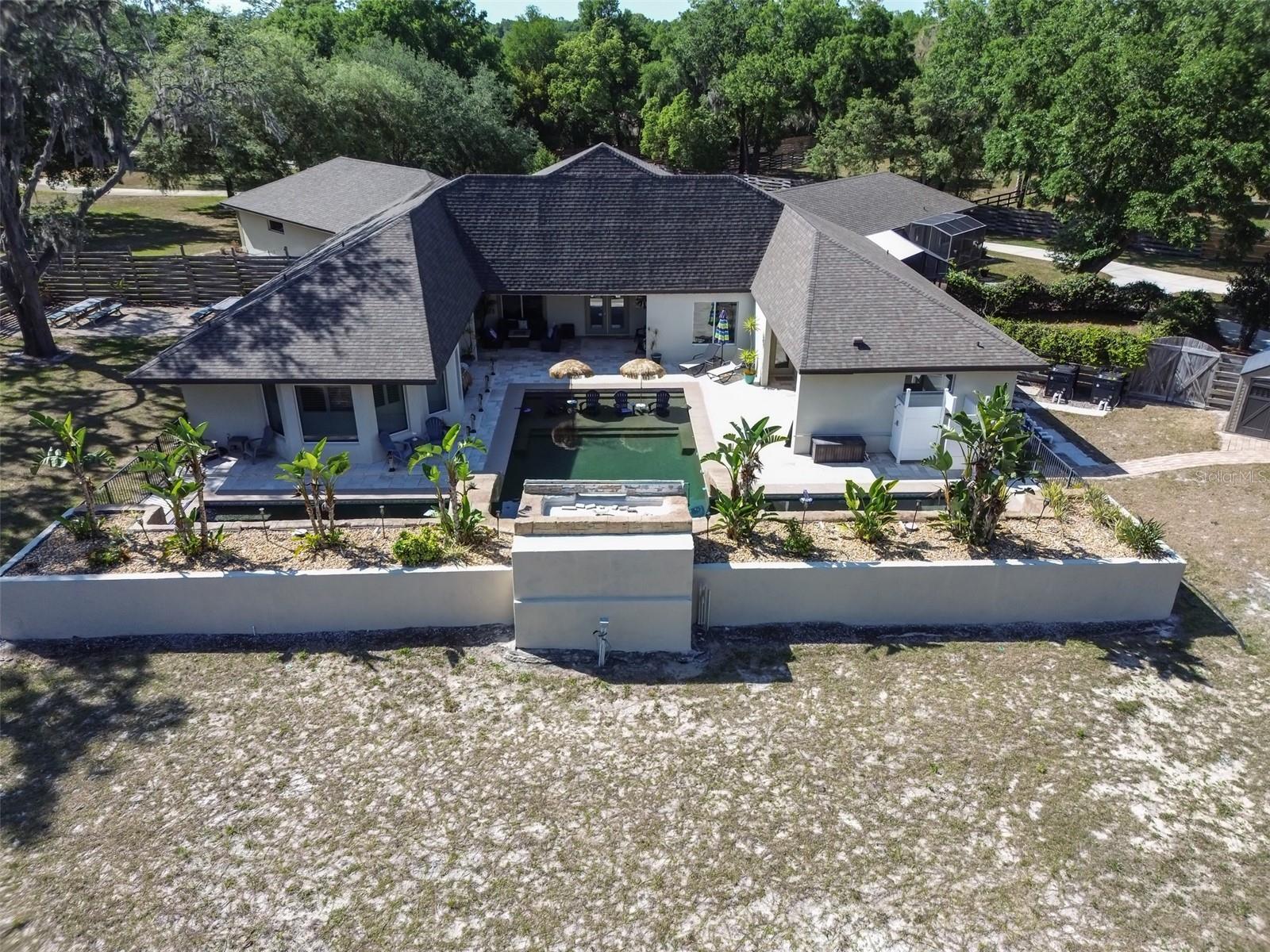 Oportunidade rara! Eleve sua vida neste retiro de luxo privado que possui elementos de um estilo de vida sereno e executivo. Aninhado atrás de um portão de ferro e uma entrada de automóveis coberta de carvalho há uma impressionante casa de 3 camas e 3 banheiros com suíte de sogra anexada (1BR/1BA), misturando charme atemporal com o luxo moderno. It features vaulted ceilings and exquisite details like hardwood & travertine floors, marble tile, central vac, a chef’s kitchen with Thermador stove, 48” refrigerator & walk-in pantry. The allure is amplified by grand living spaces that include a billiard/game room w/ wet bar, a stadium-style theater room, a home office/craft room & an oversized garage with extra storage and Murphy Bed. The 2.75 O lote CA exibe uma grande variedade de comodidades premium, com uma piscina de água salgada no estilo resort com grutina e cachoeira, prateleira de natação, prateleira solar + mostra uma Lanai de cozinha ao ar livre perfeita para entretenimento. ½ Banho + Apartamento Extra 1BA ótimo para hóspedes ou zelador. hardwood/travertine/marble floors; plantation shutters; gourmet kitchen; central vac; oversized garage; water filtration system; pool; spa; outdoor shower; 3000sf warehouse w/ office/mancave + apartment; attached mother-in-law suite separated by carport; California closet in primary bedroom; billiard/game room; stadium style theatre room; circular drive; neutral color palette; open floor plan; home office.