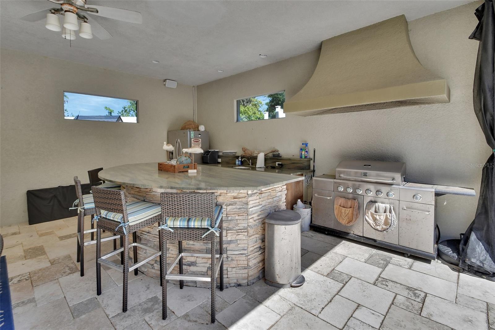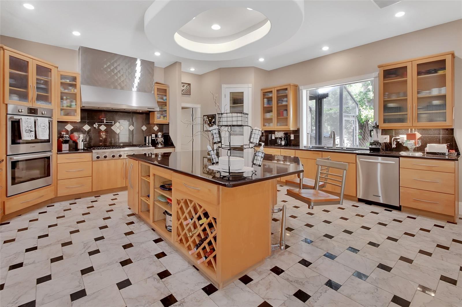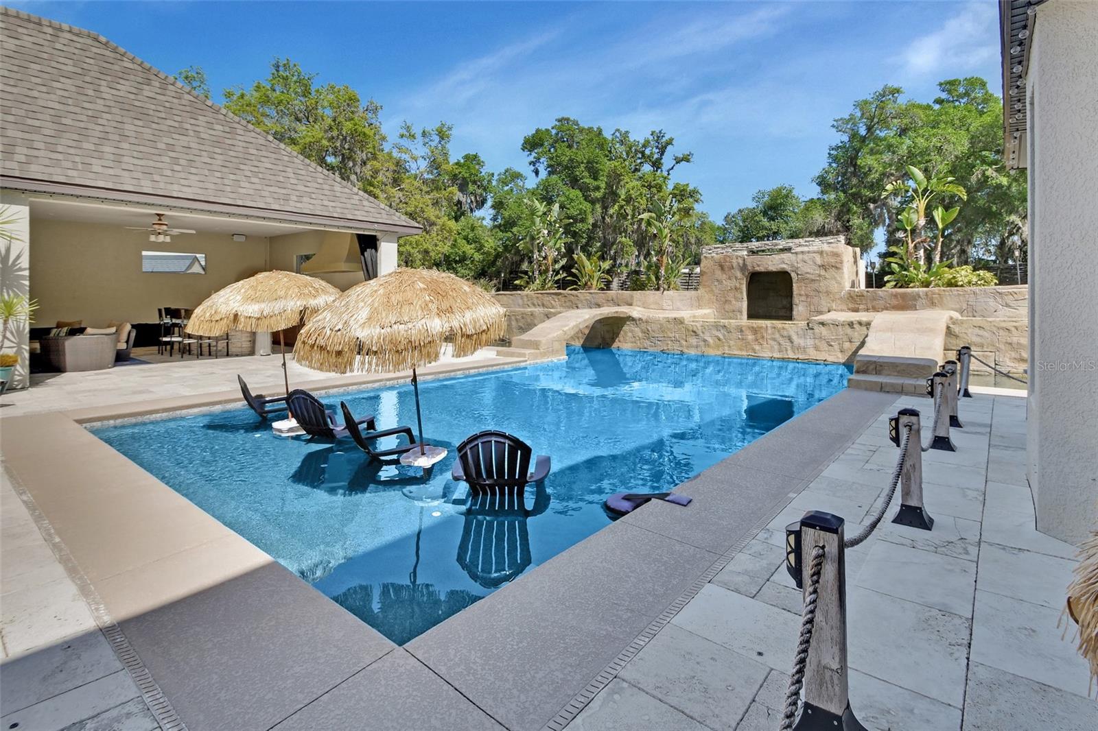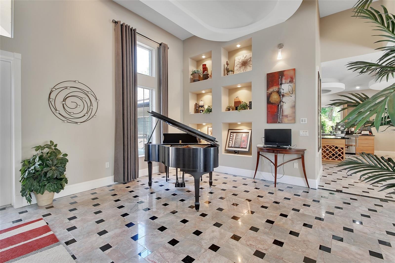 Oportunidade rara! Eleve sua vida neste retiro de luxo privado que possui elementos de um estilo de vida sereno e executivo. Aninhado atrás de um portão de ferro e uma entrada de automóveis coberta de carvalho há uma impressionante casa de 3 camas e 3 banheiros com suíte de sogra anexada (1BR/1BA), misturando charme atemporal com o luxo moderno. It features vaulted ceilings and exquisite details like hardwood & travertine floors, marble tile, central vac, a chef’s kitchen with Thermador stove, 48” refrigerator & walk-in pantry. The allure is amplified by grand living spaces that include a billiard/game room w/ wet bar, a stadium-style theater room, a home office/craft room & an oversized garage with extra storage and Murphy Bed. The 2.75 O lote CA exibe uma grande variedade de comodidades premium, com uma piscina de água salgada no estilo resort com grutina e cachoeira, prateleira de natação, prateleira solar + mostra uma Lanai de cozinha ao ar livre perfeita para entretenimento. ½ Banho + Apartamento Extra 1BA ótimo para hóspedes ou zelador. hardwood/travertine/marble floors; plantation shutters; gourmet kitchen; central vac; oversized garage; water filtration system; pool; spa; outdoor shower; 3000sf warehouse w/ office/mancave + apartment; attached mother-in-law suite separated by carport; California closet in primary bedroom; billiard/game room; stadium style theatre room; circular drive; neutral color palette; open floor plan; home office.