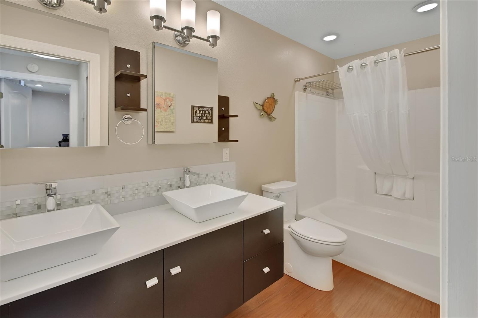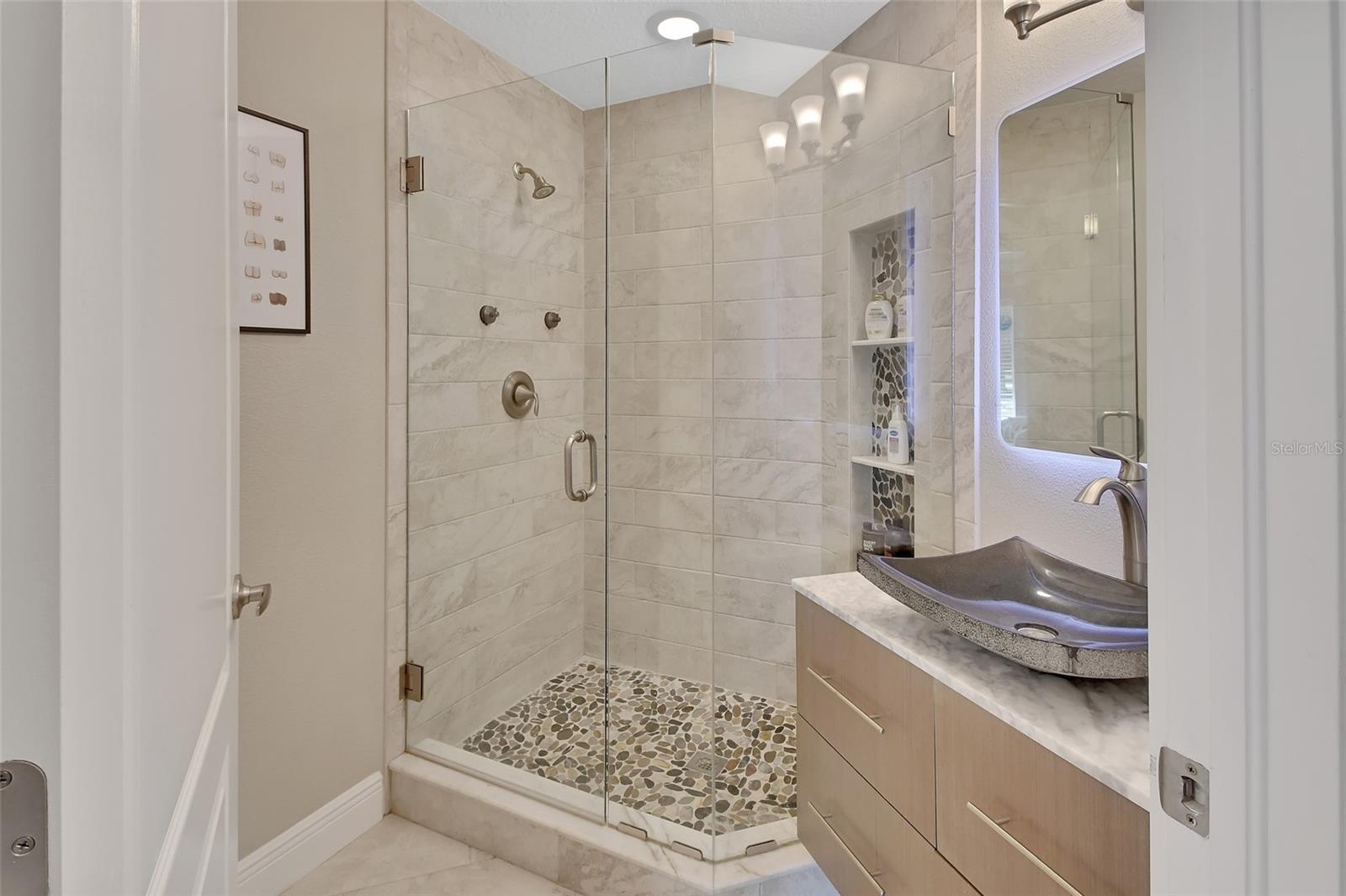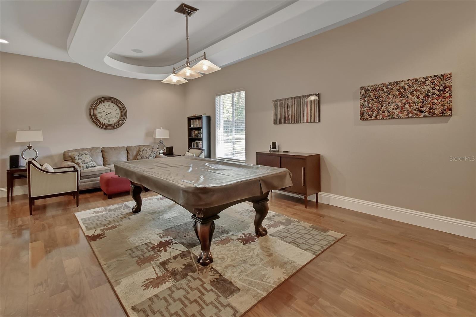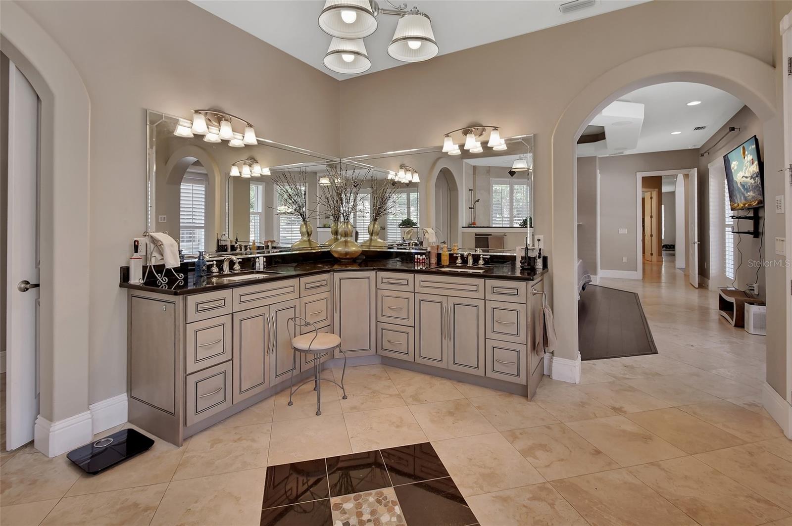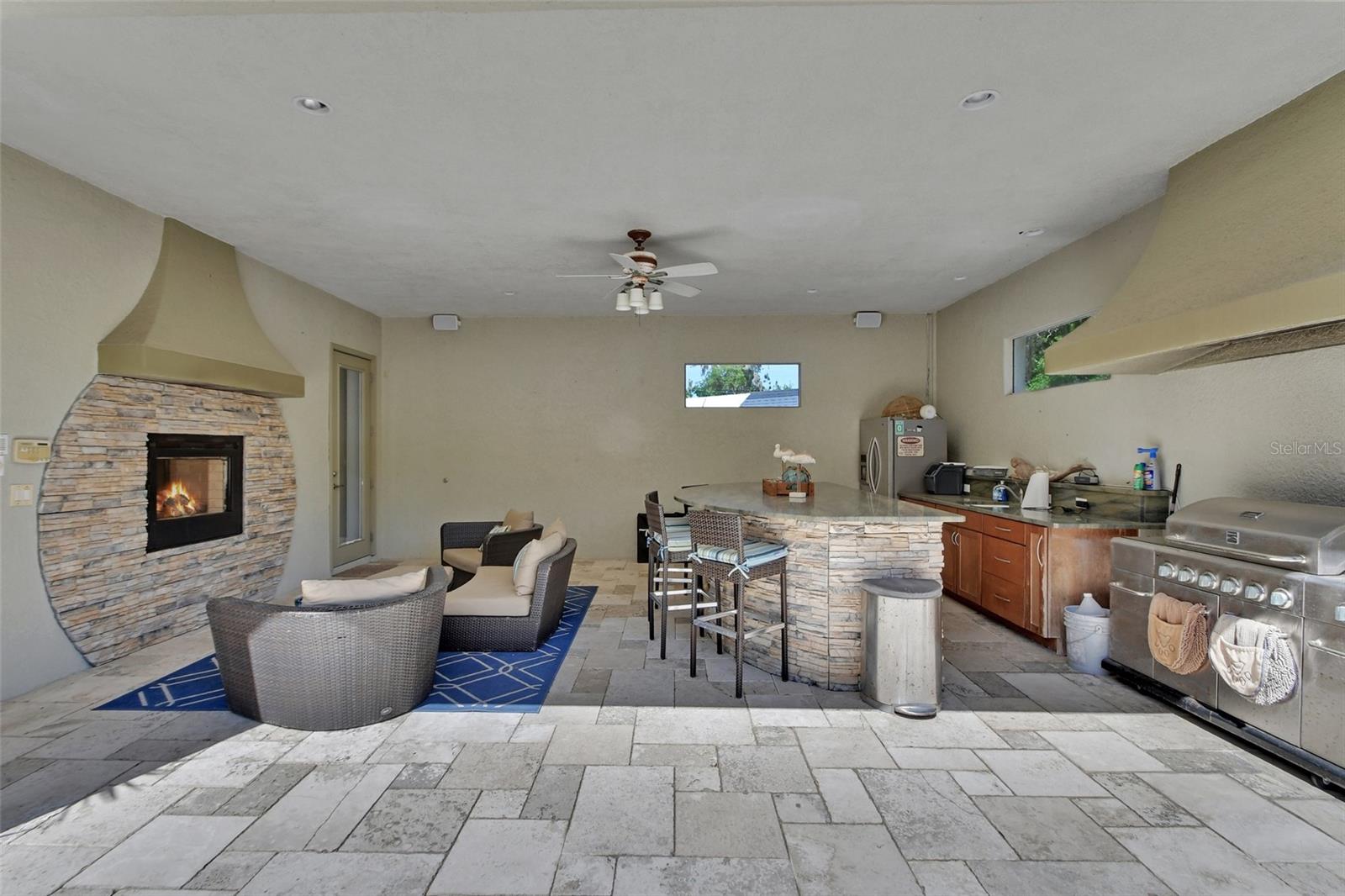Oportunidade rara! Eleve sua vida neste retiro de luxo privado que possui elementos de um estilo de vida sereno e executivo. Aninhado atrás de um portão de ferro e uma entrada de automóveis coberta de carvalho há uma impressionante casa de 3 camas e 3 banheiros com suíte de sogra anexada (1BR/1BA), misturando charme atemporal com o luxo moderno. It features vaulted ceilings and exquisite details like hardwood & travertine floors, marble tile, central vac, a chef’s kitchen with Thermador stove, 48” refrigerator & walk-in pantry. The allure is amplified by grand living spaces that include a billiard/game room w/ wet bar, a stadium-style theater room, a home office/craft room & an oversized garage with extra storage and Murphy Bed. The 2.75 O lote CA exibe uma grande variedade de comodidades premium, com uma piscina de água salgada no estilo resort com grutina e cachoeira, prateleira de natação, prateleira solar + mostra uma Lanai de cozinha ao ar livre perfeita para entretenimento. ½ Banho + Apartamento Extra 1BA ótimo para hóspedes ou zelador. hardwood/travertine/marble floors; plantation shutters; gourmet kitchen; central vac; oversized garage; water filtration system; pool; spa; outdoor shower; 3000sf warehouse w/ office/mancave + apartment; attached mother-in-law suite separated by carport; California closet in primary bedroom; billiard/game room; stadium style theatre room; circular drive; neutral color palette; open floor plan; home office.