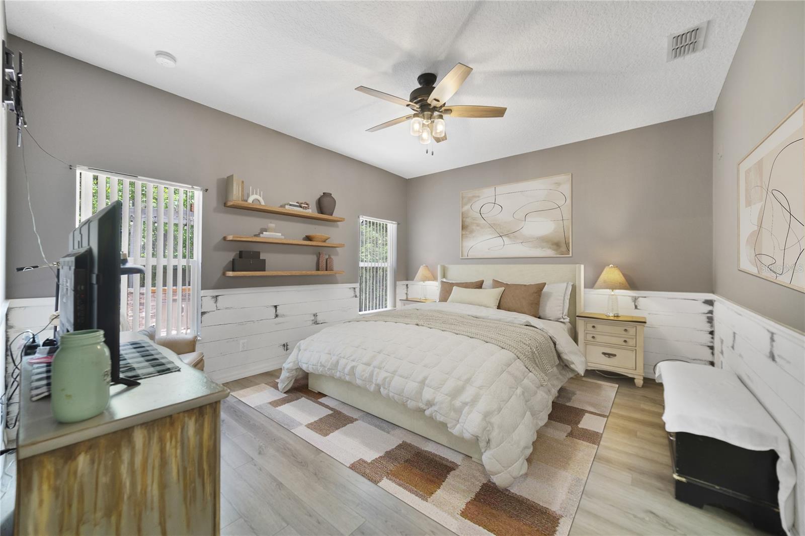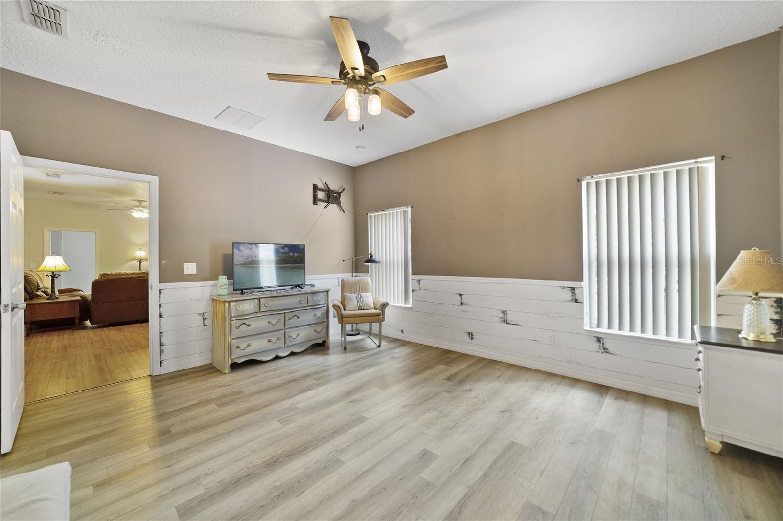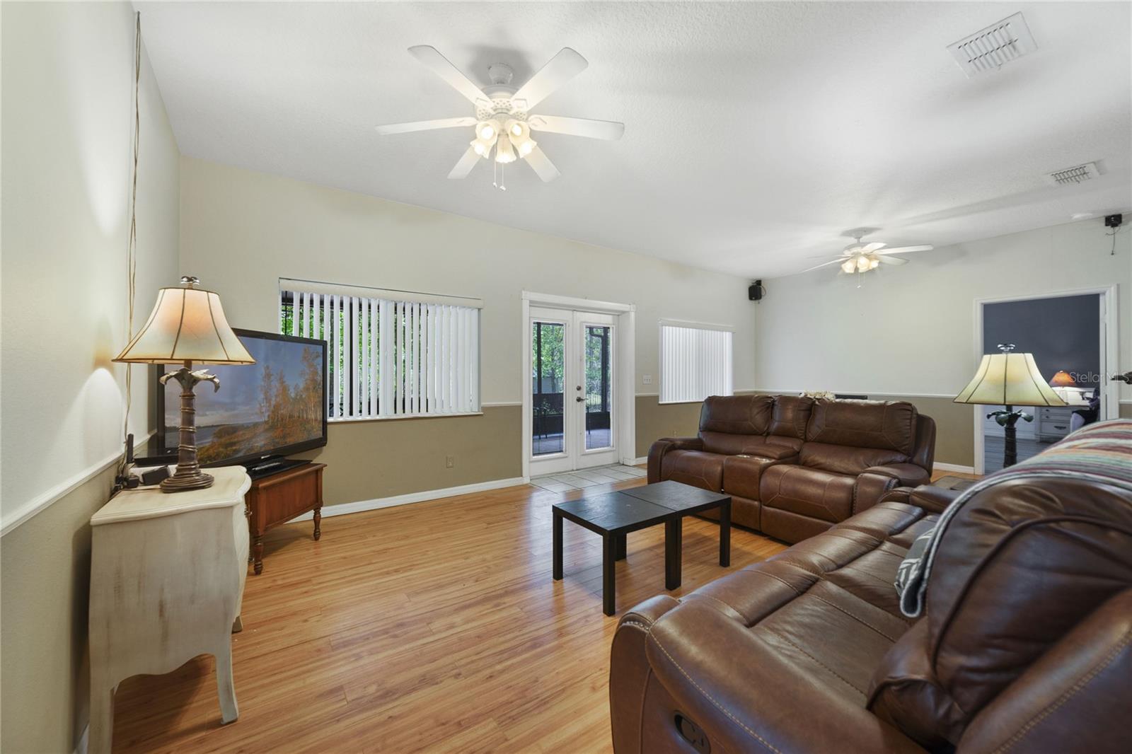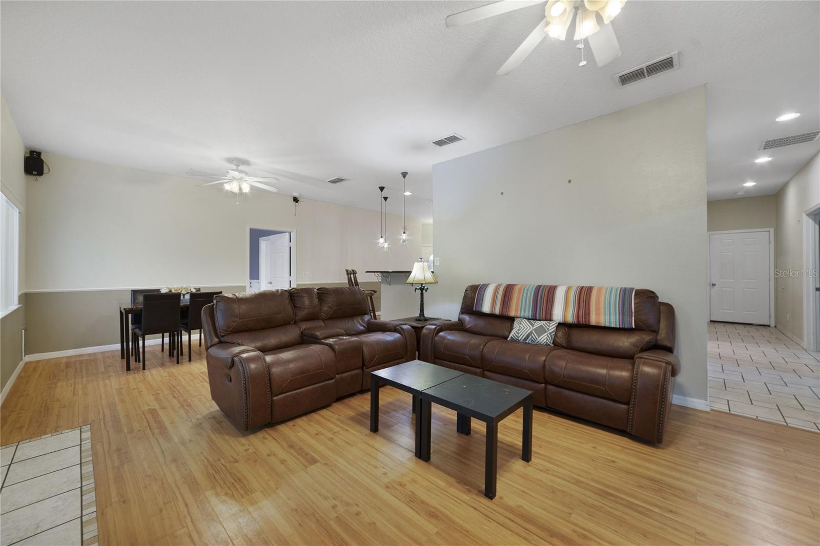 Esta casa de 4 quartos/2 banheiros/den está pronta para seus novos proprietários. Não há taxas de HOA !! Está 2061 pés quadrados sob o ar. A varanda da frente de 209 pés quadrados e a parte traseira de 300 pés quadrados oferecem mais de 500 pés quadrados de espaço coberto adicional. Esta casa está em um ambiente de país com projetos e toques de fazenda. Caminhe até a varanda da frente e você se sentirá imediatamente em casa. Abra a porta da frente e entre no corredor da frente. Você pode ver as "portas francesas" para a Lanai coberta/rastreada e as florestas além. A cozinha tem armários de carvalho de madeira. O suficiente para 2 casas desse tamanho. Você tem uma grande ilha central e tudo é coberto por balcões de granito. Veja as belas fotos! A grande sala com área de jantar separada está pronta para as festas de fim de semana da família e dos amigos e eventos de férias. A grande sala leva para a Lanai de 300 pés quadrados cobertos, azulejos e exibidos. A planta derramada tem a suíte primária de um lado, com um banho principal muito grande, com pias separadas, banheira personalizada, chuveiro e 2 armários que têm embutidos. Dois quartos estão do outro lado da grande sala e o quarto Den/4th está na frente da casa. A cova e o quarto quarto são separados por portas francesas. Tanto espaço para uma família grande e/ou em crescimento. A garagem é superdimensionada a 571 pés quadrados, com muitos armários embutidos que também abrigam os tanques de armazenamento de A/C e de água. Além disso, as escadas puxadas que acessam uma grande área de armazenamento do sótão que é totalmente pisada. Esta casa fica em um canal de um lado e nas costas. Muita privacidade. Todos os quartos principais têm fãs. O lote de árvores dá ao lar boa sombra que manterá suas contas de serviços públicos baixos. O quintal é cercado e tem um grande galpão para armazenamento. Há um churrasco personalizado no quintal. Há um canal no lado norte e leste da propriedade. Há um pouco de vida selvagem nesse cenário e você pode sentar -se em seu Lanai e assistir os animais passarem. Compras, hospitais, consultórios médicos e outras comodidades estão em alguns quilômetros. Downtown DeLand e Stetson College estão a apenas 8 quilômetros. Existem desfiles muitos fins de semana a cada ano. Sempre há eventos acontecendo durante os fins de semana em Stetson ou no centro da cidade. Tantos restaurantes para experimentar. As praias do Atlântico estão a 30 minutos em Daytona. Você tem o Daytona Speedway a apenas 20 minutos. Universal e Disney estão a 90 minutos ao sul da I-4. Tanta coisa para fazer nesta área. Este é um ótimo lugar para se viver.