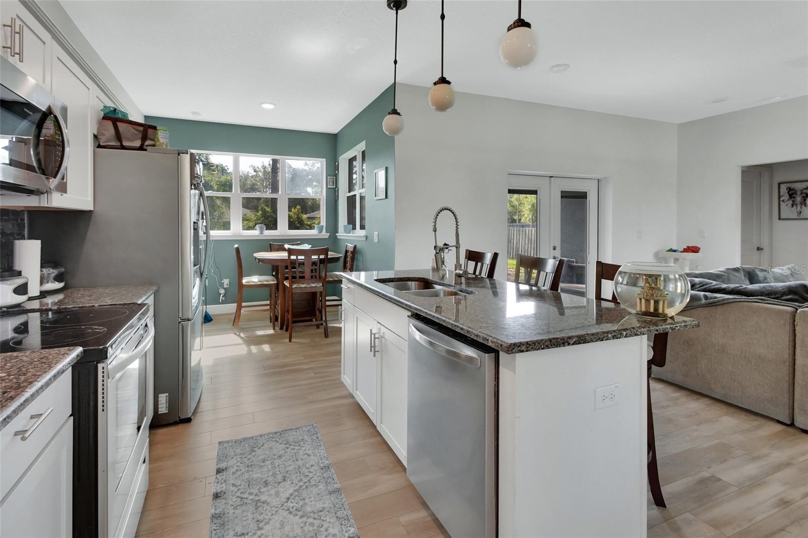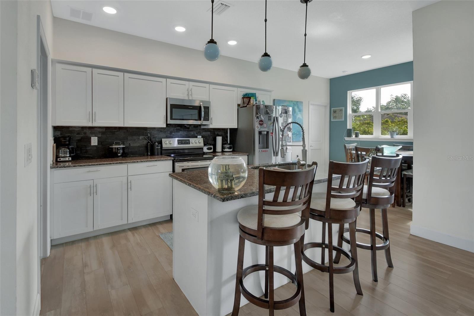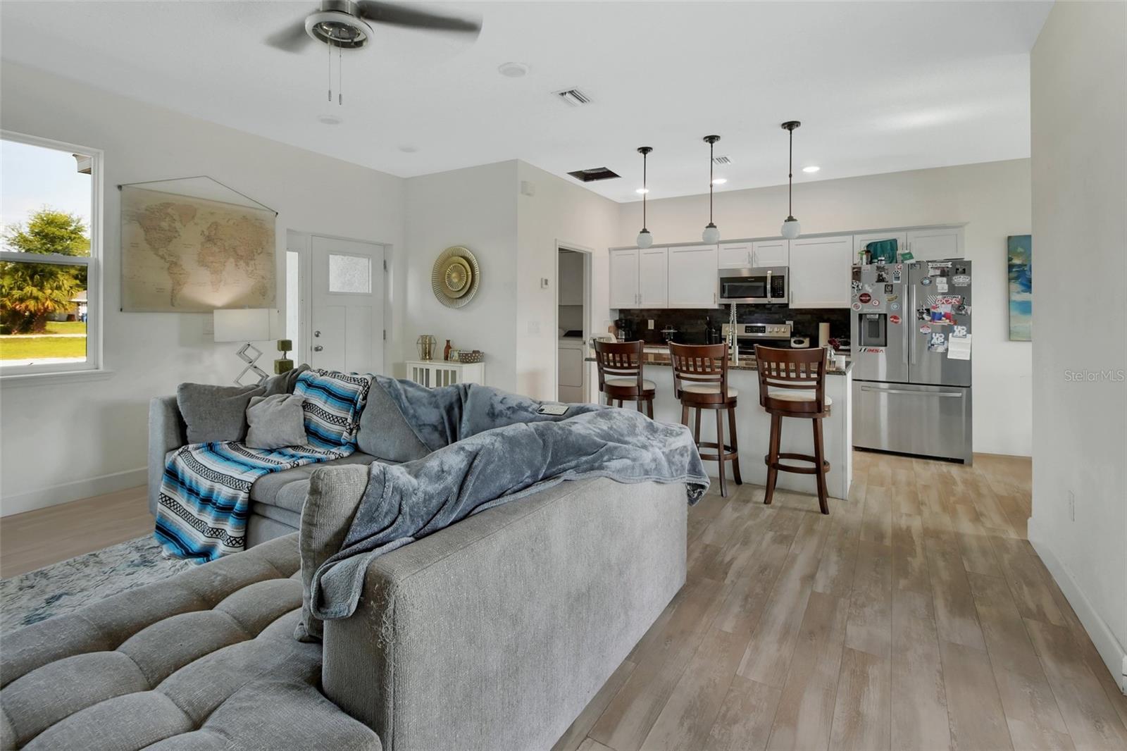 Redução de preços !!! Bem -vindo para casa! Esta é a casa que você está procurando! Construído em 2020, esta bela casa de 3 quartos e 2 banheiros com uma garagem de 2 carros é de apenas cinco anos e está pronta. Ao entrar, você é recebido por uma abundância de luz natural, uma espaçosa sala de família e uma vista aberta da cozinha, completa com assentos de bar - perfeita para entretenimento. A cozinha apresenta bancadas elegantes de granito e utensílios de aço inoxidável. Logo na cozinha, você encontrará uma lavanderia conveniente dentro de lavanderia que se conecta diretamente à garagem para maior facilidade. Desfrute de refeições na aconchegante área de jantar, cercada por janelas que oferecem uma vista serena do quintal. A planta baixa garante a privacidade, com a suíte primária escondida e apresentando um generoso closet e um luxuoso banheiro privativo com pias duplas, uma vaidade da bancada de pedra e um impressionante chuveiro 5x5. Dois quartos adicionais e um banheiro completo de hóspedes estão localizados no lado oposto do ideal doméstico para a família ou os hóspedes. Relaxe na varanda coberta e desfrute do ambiente natural pacífico. Localizado a apenas 5 minutos de Publix, Lowe's, Starbucks, e apenas 10 minutos até o coração do encantador centro de DeLand. Além disso, você está a apenas 30 minutos das belas praias da Flórida! Não perca esta oportunidade - Escreva sua exibição particular hoje!