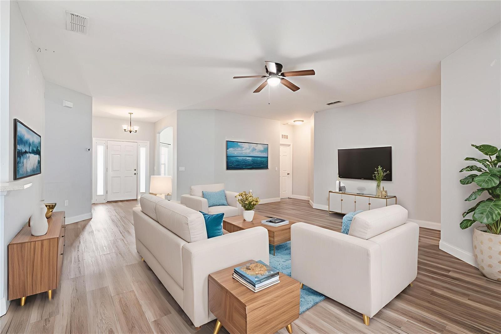Uma ou mais fotos foram virtualmente encenadas. Mudando para a Flórida? Esta casa pronta para morar com 4 quartos e 2 banheiros e escritório privativo oferece o espaço, o layout e a localização que os compradores de mudança de hoje procuram. Com mais de 2.200 pés quadrados, a casa oferece flexibilidade para famílias, trabalho remoto ou vida multigeracional. O design de conceito aberto cria um fluxo natural entre os espaços de estar, jantar e cozinha, enquanto o escritório privado é ideal para teletrabalho ou estudo. Os quartos são de tamanhos generosos e a varanda coberta que abrange toda a extensão da casa oferece um lugar tranquilo para relaxar após um longo dia. O quintal totalmente cercado acrescenta privacidade e funcionalidade. As principais atualizações incluem um telhado de 2019, eletrodomésticos de cozinha em aço inoxidável, lavadora e secadora e sistemas principais bem conservados – ajudando a reduzir despesas imediatas pós-mudança. Localizada em uma comunidade de baixa HOA (~US$ 40/mês) com playground, esta casa fica a poucos passos de uma escola primária e a poucos minutos do centro histórico de DeLand, da Universidade Stetson, de lojas, restaurantes e fácil acesso à I-4 para Orlando, Daytona Beach e instalações militares vizinhas. Situada longe de estradas de tráfego intenso, esta casa oferece um ambiente calmo e confortável, ideal para se instalar e começar seu próximo capítulo na Flórida. Envie o seu melhor e receba um crédito de $ 500 no fechamento para cobrir seu custo de fechamento.