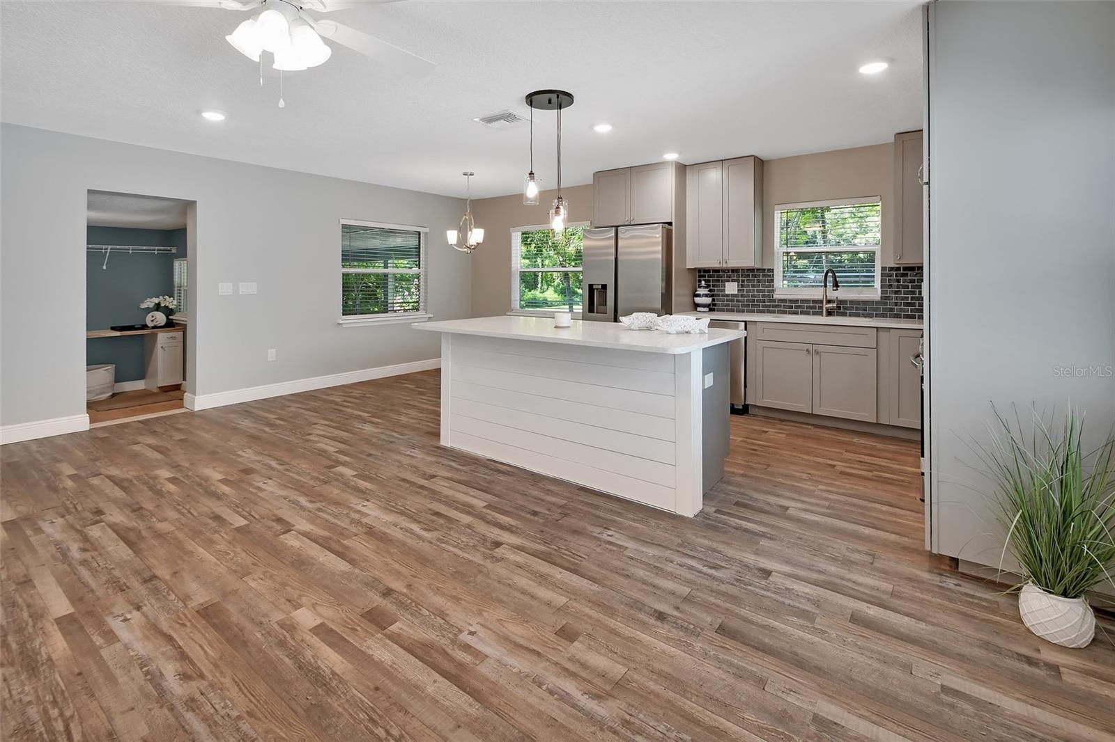 Procurando espaço a um preço acessível? Esta casa clássica dos anos 50 está pronta para sua família. Localizado no Eastside de DeLand, faz apenas alguns minutos para I-4 e Highway 92 e apenas 20 minutos para a I-95. A casa foi completamente remodelada do zero. Desde o momento em que você entra na espaçosa sala de estar formal, verá e sentirá a qualidade da obra com a transformação desta casa. Há planação de vinil de luxo (LVP) em toda a casa. Da sala de estar, você entrará no coração desta grande casa em família, uma cozinha e sala de jantar muito abertas. A cozinha possui uma grande ilha para diversão familiar, com uma parede de pedra personalizada configurada para sua TV de tela plana para assistir a todos os seus programas favoritos. Enquanto prepara refeições, um adorará as bancadas de quartzo, utensílios de aço inoxidável e belas vistas do quintal. Logo na cozinha, você encontrará uma sala de serviços públicos de grandes dimensões com armários e bancada de açougueiro. Além disso, há uma área de escritório, essas salas têm duas portas de entrada, uma que abre para uma varanda traseira com vista para o quintal. No lado do quarto desta casa, existem três quartos normais com armários e ventiladores de teto. O bônus incrível é que esta casa é montada com duas suítes primárias, ambas com salas grandes, armários, caminhar em chuveiros, gabinetes de vidro, vaidades altas e pias duplas. Uma das suítes primárias também apresenta uma sala de bônus com vistas incríveis no quintal. Toda a família apreciará o pátio de madeira com acesso da cozinha e um dos quartos primários. Há também um belo banheiro de terceiro lugar com grandes portas de chuveiro / chuveiro de vidro. Parte dessa transformação de propriedades é o cenário personalizado, tudo com um novo sistema de irrigação para manter a beleza. Da varanda dos fundos, siga a calçada sinuosa até o edifício destacado, que oferece amplo armazenamento para veículos de trabalho ou brincadeira. Uma área poderia ser uma suíte de apartamento / sogro, ela já havia sido montada como um apartamento. Este edifício possui piso de concreto, água e elétrica. A casa possui tudo novo: elétrico, encanamento, teto, fossa séptica e campo de drenagem, drywall, portas externas e interiores, janelas, isolamento, luminárias e acessórios de encanamento. Quase tudo foi tocado nessa remodelação. DeLand Florida apresenta uma premiada mainstreet, ótimos restaurantes e o famoso st. Rio Johns.