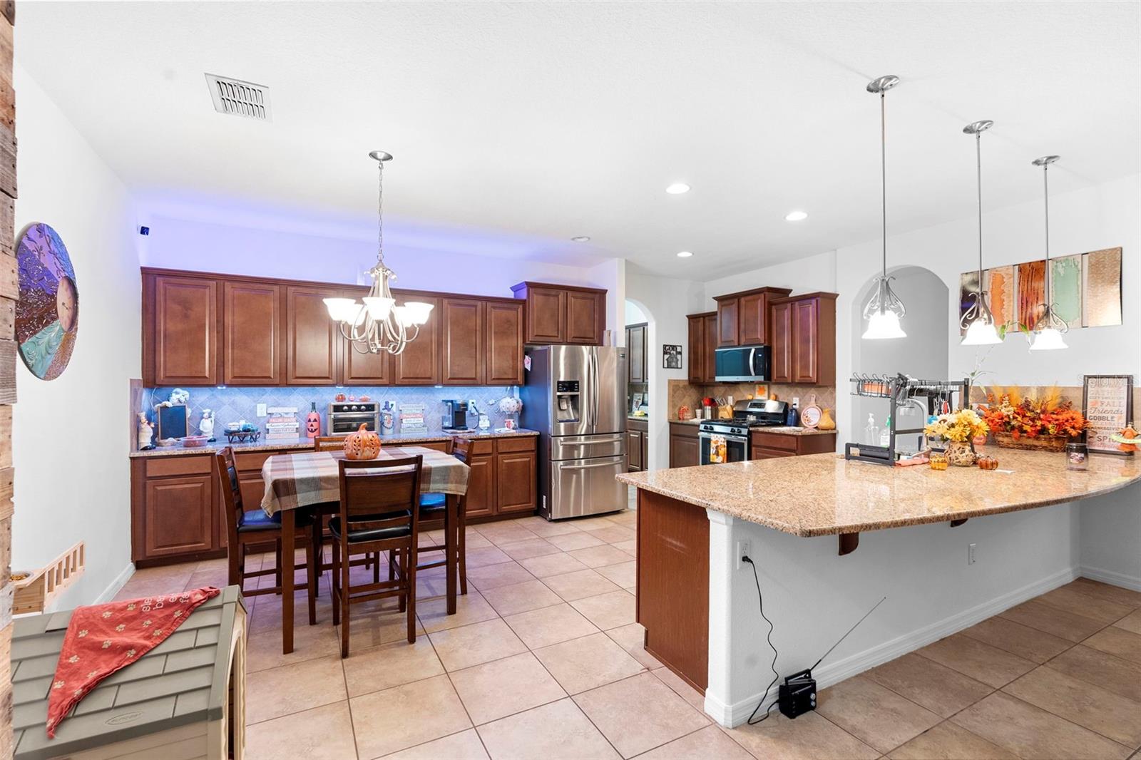 DeLand: Novo telhado 2022 | AC 2023 | Bomba de piscina 2021 | Gerador de casa inteira: Aninhado na desejável comunidade de Wellington Woods, esta impressionante casa de 4 quartos e 3 banheiros oferece mais de 3.000 pés quadrados de confortável vivendo em um lote espaçoso. A partir do momento em que você chegar, você ficará impressionado com o apelo do meio -fio e o design atencioso que continua em todo o interior. A frente oferece uma varanda exibida-um ótimo local para acenar nos vizinhos e aproveitar seu café da manhã. Entre para encontrar uma sala formal de vida e jantar perfeita para entretenimento, junto com uma grande sala familiar com uma parede quente de madeira. A cozinha aberta foi projetada para estilo e função, com balcões de granito, utensílios de aço inoxidável, armários abundantes e espaço generoso. A suíte primária é um verdadeiro retiro com um teto de bandeja, ventilador de teto e um banheiro em suíte, semelhante a um spa, completo com vaidades duplas, um chuveiro, banheira de jardim e um espaçoso closet. Quartos adicionais são de tamanho generoso e dois banheiros extras garantem muita conveniência para a família e os visitantes. Um escritório dedicado oferece o local perfeito para trabalhar em casa, enquanto a lavanderia interna com armazenamento extra adiciona praticidade diária. Do lado de fora, desfrute da Flórida que vive no seu melhor com uma piscina exibida e amplo espaço ao ar livre com vista para o quintal particular. A garagem de 3 carros oferece amplo espaço para veículos, armazenamento e hobbies. O gerador de casa inteiro chuta a casa que mantém a casa e iluminada durante as quedas de energia (sistema de US $ 7.000). Ele se conecta ao gás natural que a casa já possui e funciona continuamente até que a energia acenda. Localizado perto de fazer compras, restaurantes, escolas e com fácil acesso à I-4 para um trajeto rápido, esta casa combina conforto, conveniência e estilo de vida em um pacote perfeito.