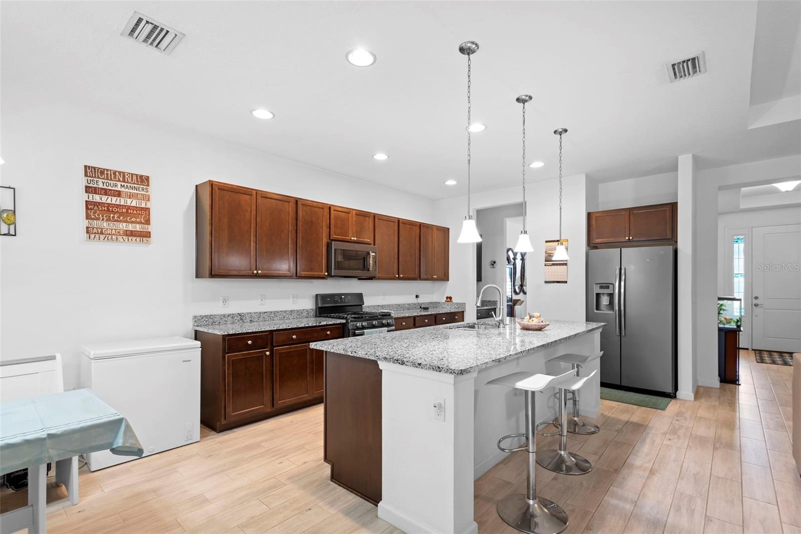 Piscina fenomenal em casa na altamente procurada comunidade de golfe de Victoria Hills! Esta residência lindamente mantida oferece mais de 2.000 pés quadrados de espaço com 3 quartos, 2 banheiros e o enorme benefício de painéis solares totalmente pagos no fechamento-fornecendo uma economia de energia incrível e tornando esta casa ainda mais acessível com um orçamento mensal. Entre em um hall de recepção acolhedora com tetos de bandeja e piso de ladrilhos com aparência de madeira. À sua direita, uma sala de jantar formal se conecta perfeitamente à cozinha através da passarela de uma despensa e café de um mordomo. A cozinha é realmente o sonho de um chef, com armários superiores de 42 ”, bancadas de pedra, uma faixa de gás natural, utensílios de aço inoxidável e um design de conceito aberto que flui para a sala de estar e a lanchonete. Plantation Shutters em todo o mundo da sala de estar, a sala de estar em todo o mundo. A suíte primária privada completa com um closet e banheiro privativo do tipo spa. Internet e irrigação.