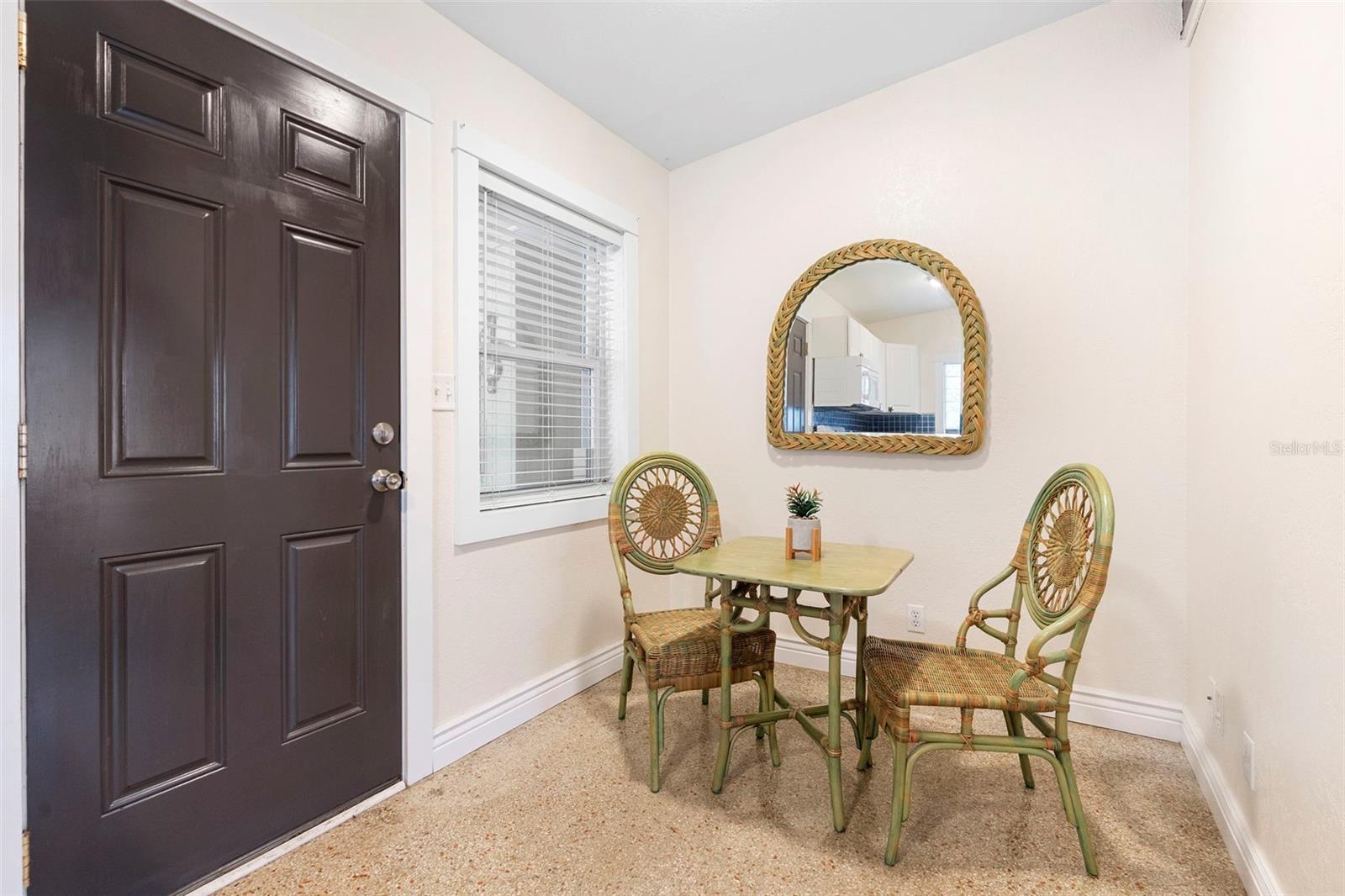 Mova-se pronto! Casa com 2 quartos PLUS Flex e 1 banheiro, oferecendo 1.172 pés quadrados de espaço confortável! A parede de blocos de vidro proporciona muita luz natural e é uma característica única e muito bacana. Todos os conteúdos dentro e fora de casa transmitem para sua comodidade! A espaçosa sala de estar apresenta belos pisos de cerâmica e janelas cúbicas de vidro exclusivas que preenchem o espaço com luz natural. A cozinha oferece uma mistura de estilo e função com seu backsplash e bancadas de azulejos azuis atraentes, armários brancos e um recanto aconchegante para refeições - perfeito para café da manhã ou refeições casuais. Uma porta lateral conveniente oferece fácil acesso à garagem e à lavanderia, que inclui lavadora, secadora e uma grande pia. Tanto o quarto 1 quanto o quarto 2 são retiros relaxantes com piso de cerâmica, organizadores de armários embutidos personalizados e elegantes portas francesas que se abrem para o pátio do quintal. O banheiro inclui box amplo e piso frio para fácil manutenção, e uma janela em forma de cubo de vidro permite a entrada de privacidade e luz. Saia para desfrutar do quintal paisagístico exuberante, completo com duas áreas de estar no pátio, um galpão de armazenamento datado e um pequeno deck acessível pela sala de estar. Esta casa combina o charme de meados do século com espaços práticos e apelo ao ar livre. A poucos minutos de restaurantes, escolas, lojas e do popular centro de DeLand. Não perca a oportunidade de torná-lo seu!