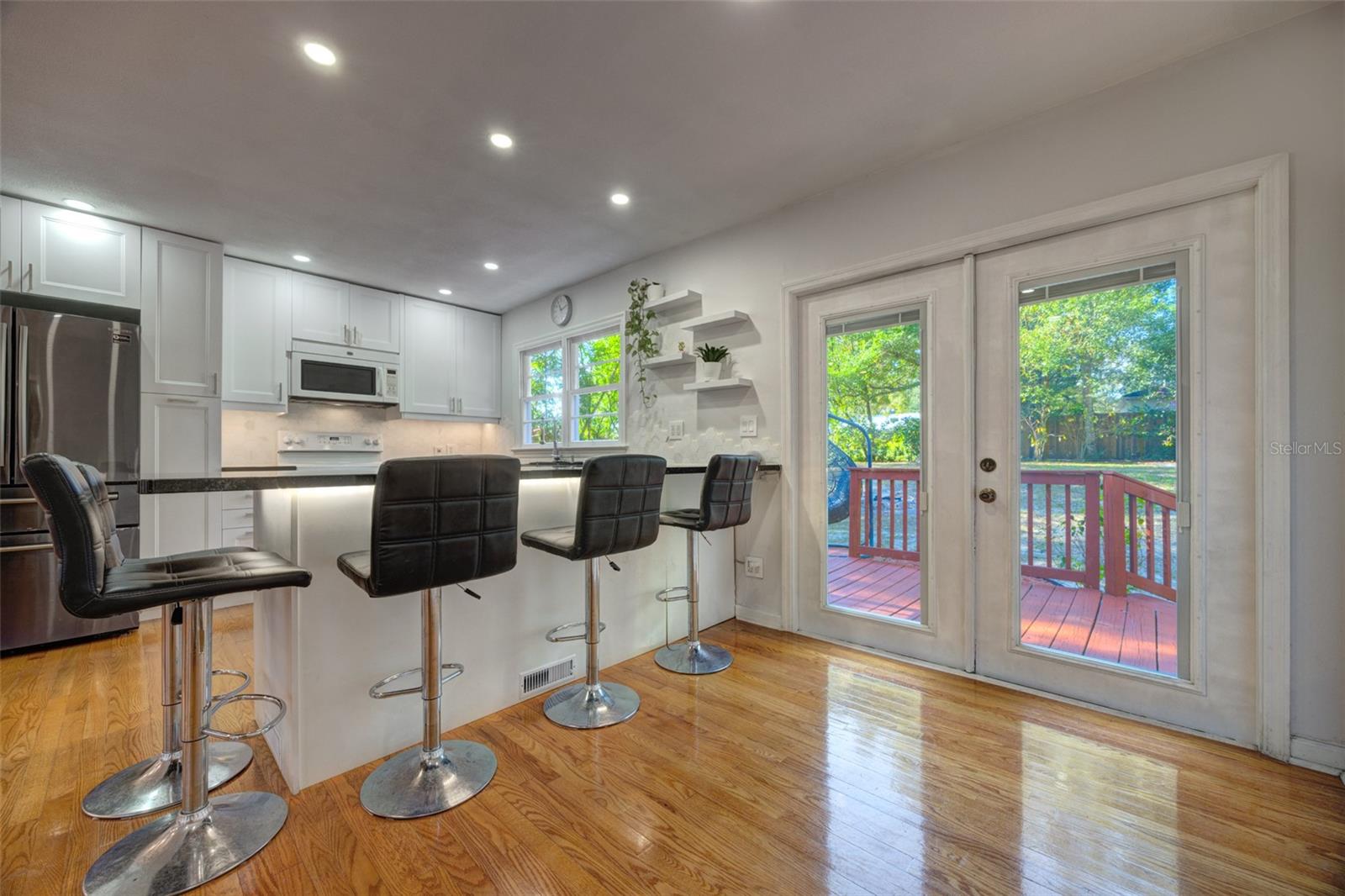 DeLand - Centro da cidade. Descubra esta encantadora casa em estilo bangalô com 2 quartos e 1 banheiro, perfeitamente posicionada perto da Universidade Stetson e do centro de DeLand. Esta residência térrea aproveita excelentemente seu espaço, criando um fluxo eficiente e acolhedor. A cozinha é um verdadeiro destaque, totalmente renovada em 2022 com bancada em granito e armários novos. Desfrute de um quintal cercado complementado por um paisagismo maduro, proporcionando uma maravilhosa sensação de privacidade. No interior, você encontrará piso de madeira original clássico e janelas de painel duplo atualizadas, aumentando o conforto e a eficiência. Com ar condicionado central e aquecimento e uma garagem anexa para um carro, esta casa em Pine Hills oferece o melhor da vida em DeLand.