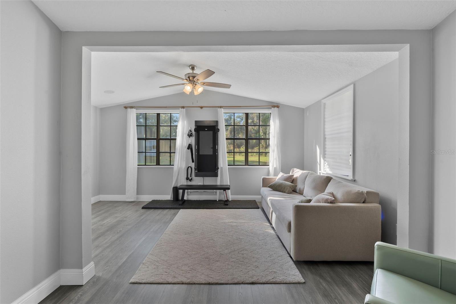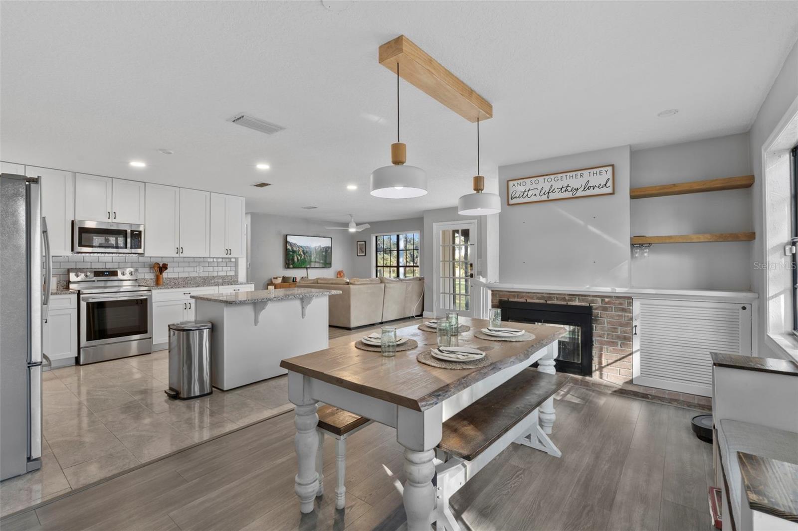 Charmosa casa estilo rancho situada em um terreno parcialmente arborizado de 1,61 acres em Deland! Você vai adorar a área de estar e cozinha de conceito aberto! Desde a entrada notará imediatamente o toque rústico original desta casa que foi incorporado aos acabamentos modernos de hoje. A sala de estar possui uma lareira de tijolos de três lados voltada para o recanto de leitura rebaixado, cozinha e sala de estar. Há piso de vinil resistente à água com aparência de madeira em toda a casa e azulejos na cozinha e nos banheiros. A grande cozinha possui eletrodomésticos de inox mais novos e armários shaker com balcões de granito e uma ilha totalmente móvel. A área de jantar adjacente à cozinha acomoda facilmente uma grande mesa de jantar. A suíte Master é privativa e fica nos fundos da casa com amplo closet e área de estar adjacente que pode ser usada como escritório/área de escritório privativa ou facilmente ser uma segunda sala de estar/família, área de estar, berçário ou academia. Também pode ser usado como quarto extra, pois possui armário. Os quartos adicionais proporcionam alojamentos confortáveis para familiares ou convidados. O segundo quarto também possui banheiro privativo. A propriedade está situada no final da estrada, o que proporciona um pouco de isolamento e privacidade. Este é o local perfeito, pois tem um toque rural, mas fica perto do centro de Deland e de todas as conveniências modernas. Este não vai durar muito!