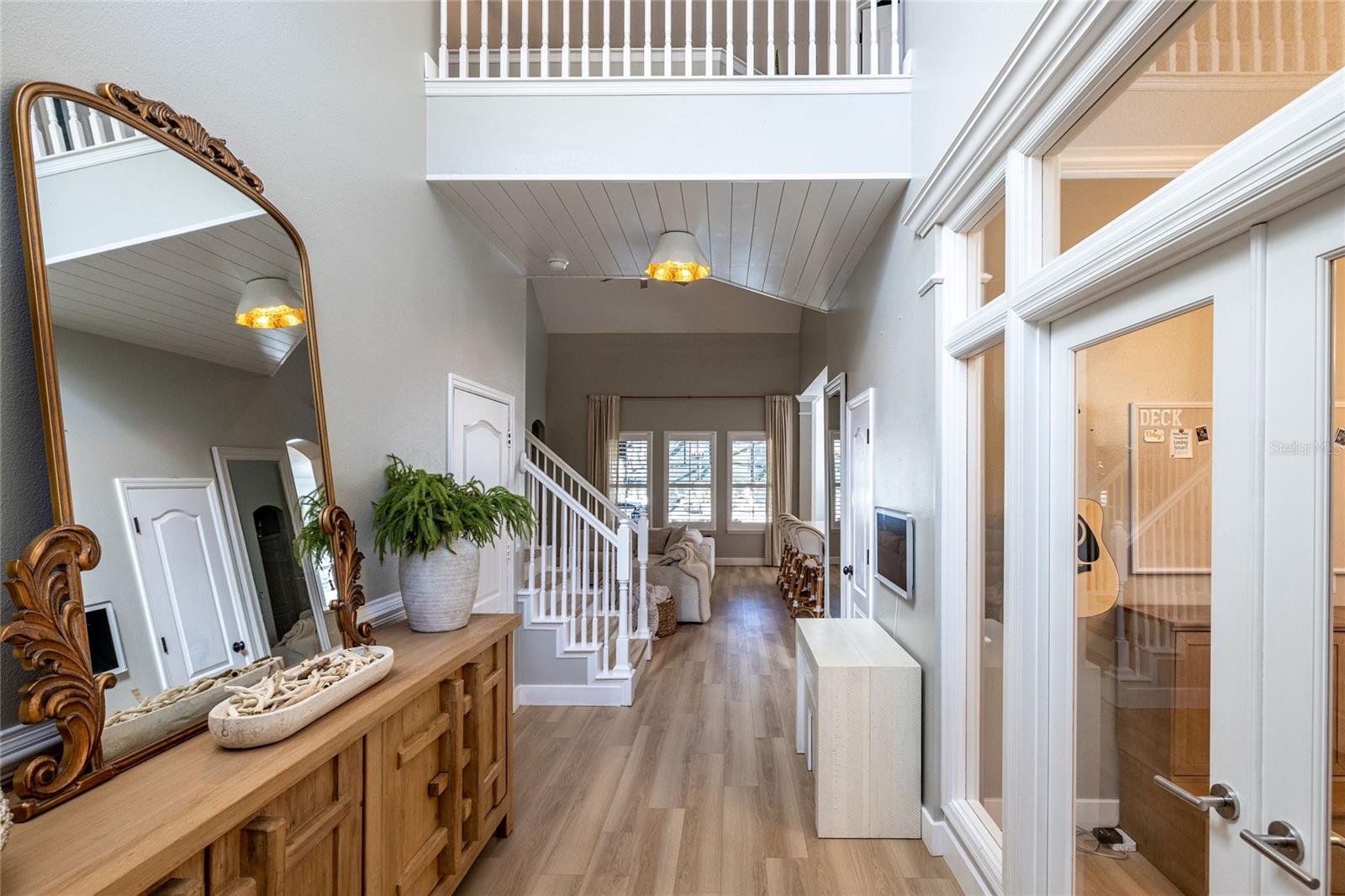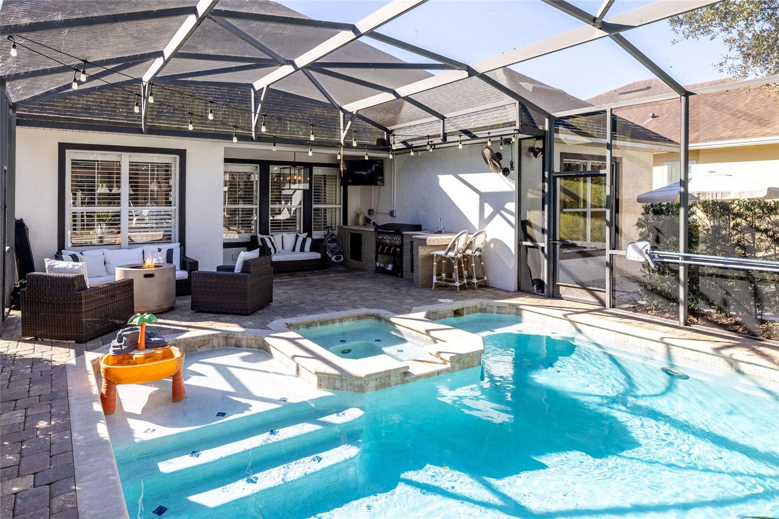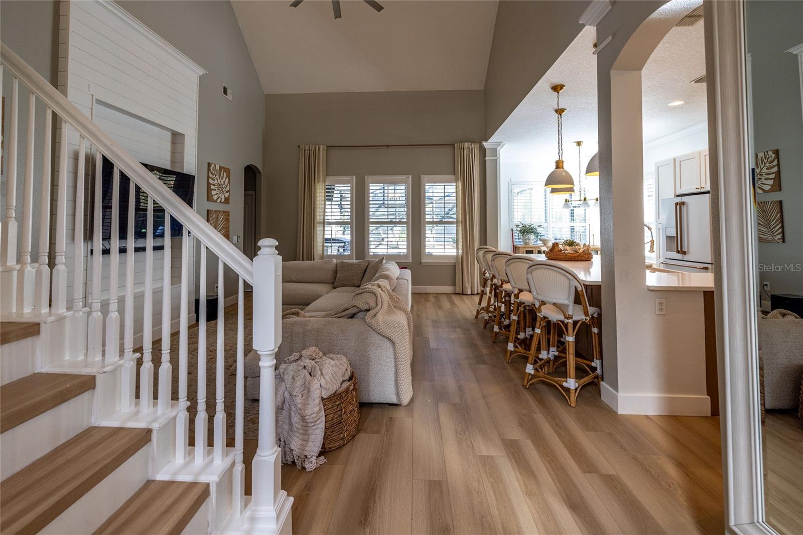 Bem-vindo a esta casa deslumbrante e pronta para uso de David Weekley, localizada nas altamente desejáveis Victoria Hills da comunidade de golfe de Victoria Park, onde atualizações atenciosas atendem ao verdadeiro design de casa modelo. A partir do momento em que você pisa na grande e convidativa varanda da frente e entra no belo hall de entrada, você é recebido por uma vista deslumbrante direto para a piscina e spa em estilo resort. Esta casa de conceito aberto em estilo artesanal apresenta luxuoso piso de carvalho vinílico, tetos altos e iluminação interna e externa de design que elevam todos os espaços. A LINDA cozinha recém-atualizada é um verdadeiro empecilho, com armários premium com gavetas de fechamento suave, eletrodomésticos GE Café, uma ilha ampla com armazenamento abundante em ambos os lados e muito espaço na bancada, um grande recanto para comer, uma impressionante pia de ferro fundido e uma despensa DREAM com espaço de armazenamento excepcional. A suíte principal está convenientemente localizada no térreo e oferece um amplo closet com prateleiras e gavetas com fechamento suave. Esta casa cuidadosamente projetada inclui 4 quartos, 2,5 banheiros, um loft espaçoso e uma sala flexível versátil com portas francesas personalizadas - perfeita para um escritório em casa ou um jantar formal! Saia para o enorme pátio coberto e para a cozinha de verão, onde você pode relaxar ou se divertir em sua piscina e spa aquecido de água salgada, o sonho de um artista e seu próprio RETIRO PRIVADO! Os destaques adicionais incluem um novo telhado (2020), novo AC com mini-split no andar de cima (2021), portas frontais e de garagem atualizadas, racks de armazenamento de garagem e paisagismo cuidadoso projetado com beleza anual e baixa manutenção em mente, apresentado pela iluminação noturna. Todos os eletrodomésticos são transportados, incluindo eletrodomésticos de cozinha GE Café e lavadoras e secadoras LG (outubro de 2024). ECONOMIZE em serviços públicos com fogão a gás, secador a gás, aquecedor de água quente a gás e piscina a gás e aquecedor Hayward de spa (recém-instalado), bem como irrigação, internet e cabo de fibra incluídos no HOA! Situada perto de um beco sem saída tranquilo, esta casa fica a aproximadamente 5 minutos de Publix, a 10 minutos do centro de DeLand, a 38 km de New Smyrna Beach e Flagler Avenue e a cerca de 88 km do Walt Disney World. Victoria Park oferece um HOA renomado com acesso a quadras de golfe, pickleball e tênis, academias e piscinas, bem como eventos comunitários. PRONTO PARA MUDAR e verdadeiramente ÚNICO!! Os vendedores estão ansiosos, traga pré-aprovação para agendar um tour!! (As cortinas nas fotos não transmitem)