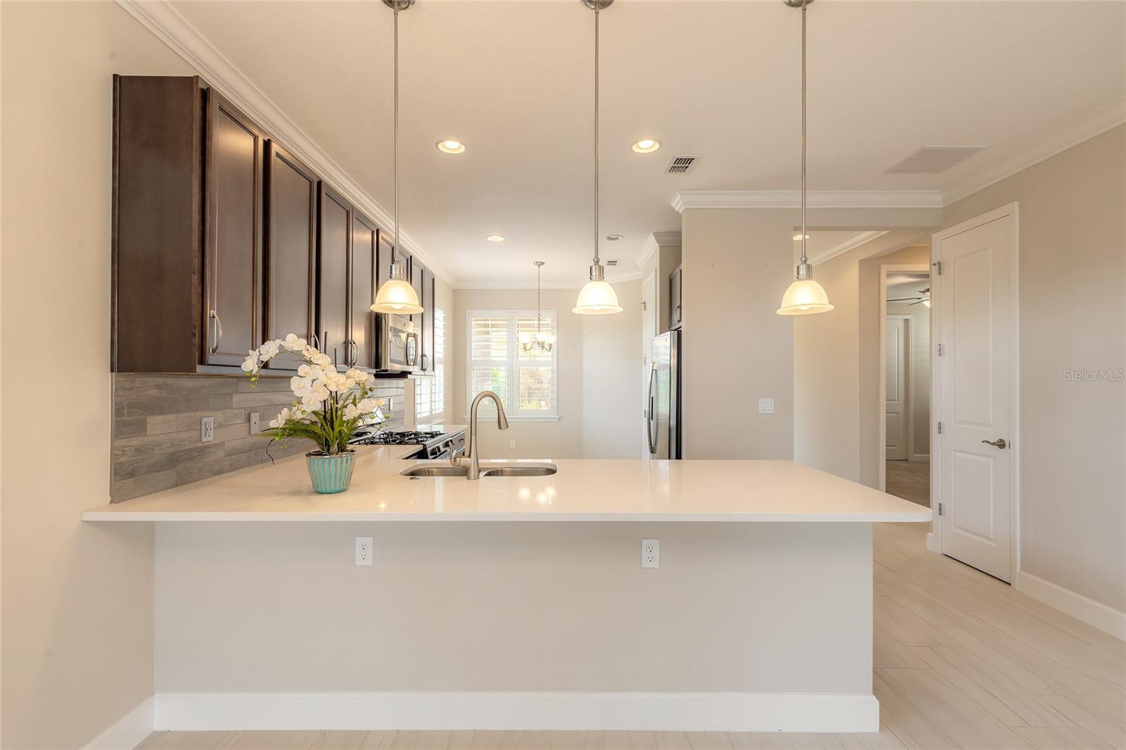 Uma ou mais fotos foram virtualmente encenadas. Desfrute de uma vida em estilo resort nesta bela casa cheia de luz, localizada no desejável condomínio fechado para mais de 55 pessoas em Victoria Gardens. Perfeitamente posicionada, esta casa mais nova é cercada por um pequeno lago em dois lados, oferecendo vistas tranquilas para o mar e uma sensação aberta e iluminada por toda parte. Lindos azulejos claros e venezianas acrescentam charme e funcionalidade. A cozinha moderna oferece fogão a gás, bancadas de quartzo, balcão, despensa e uma aconchegante copa - perfeita para refeições casuais ou divertidas. A espaçosa área de estar apresenta sancas elegantes e um teto decorativo, enquanto grandes portas de vidro deslizantes fornecem acesso à varanda com vista panorâmica do pequeno lago. A suíte Primária oferece vista direta para o mar e um espaçoso banheiro privativo com pia dupla e dois closets para armazenamento generoso. O segundo quarto oferece um segundo banheiro completo, enquanto a sala com portas francesas é ideal para home office ou sala de hobby. A lavanderia interna dá acesso à garagem para 2 carros. Os residentes desfrutam de comodidades excepcionais em estilo resort, incluindo um lindo clube com bar e bistrô, piscina espaçosa, academia, quadras de tênis e pickleball, trilhas naturais pitorescas, lagos e reservas. Este bairro fechado também oferece gramados de baixa manutenção, permitindo que você passe mais tempo aproveitando o estilo de vida e menos tempo com manutenção. Esta é uma oportunidade maravilhosa de desfrutar de uma vida confortável à beira-mar em uma comunidade ativa e rica em comodidades!