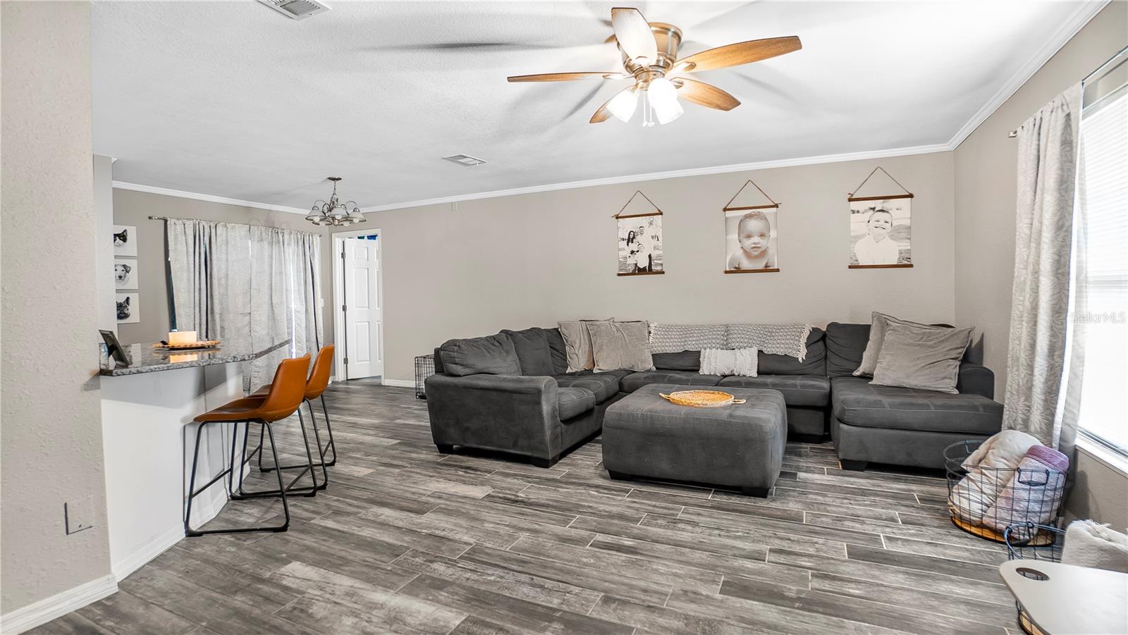Bem-vindo a este recentemente renovado, atualizado de 4 quartos, 2 banheiros, situado em um lote panorâmico de canto e apresenta uma planta moderna e moderna, pisos de azulejos, um quarto principal espaçoso com suíte master atualizado. AC instalado em 2018. A propriedade também possui um grande pátio coberto, amplo espaço no quintal e acesso conveniente a comodidades e principais estradas. A propriedade está localizada perto do cruzamento da Providence e da Saxon Blvd, ao virar da esquina do Complexo Esportivo Dewey Boster, com fácil acesso à I-4, Orlando e às praias.