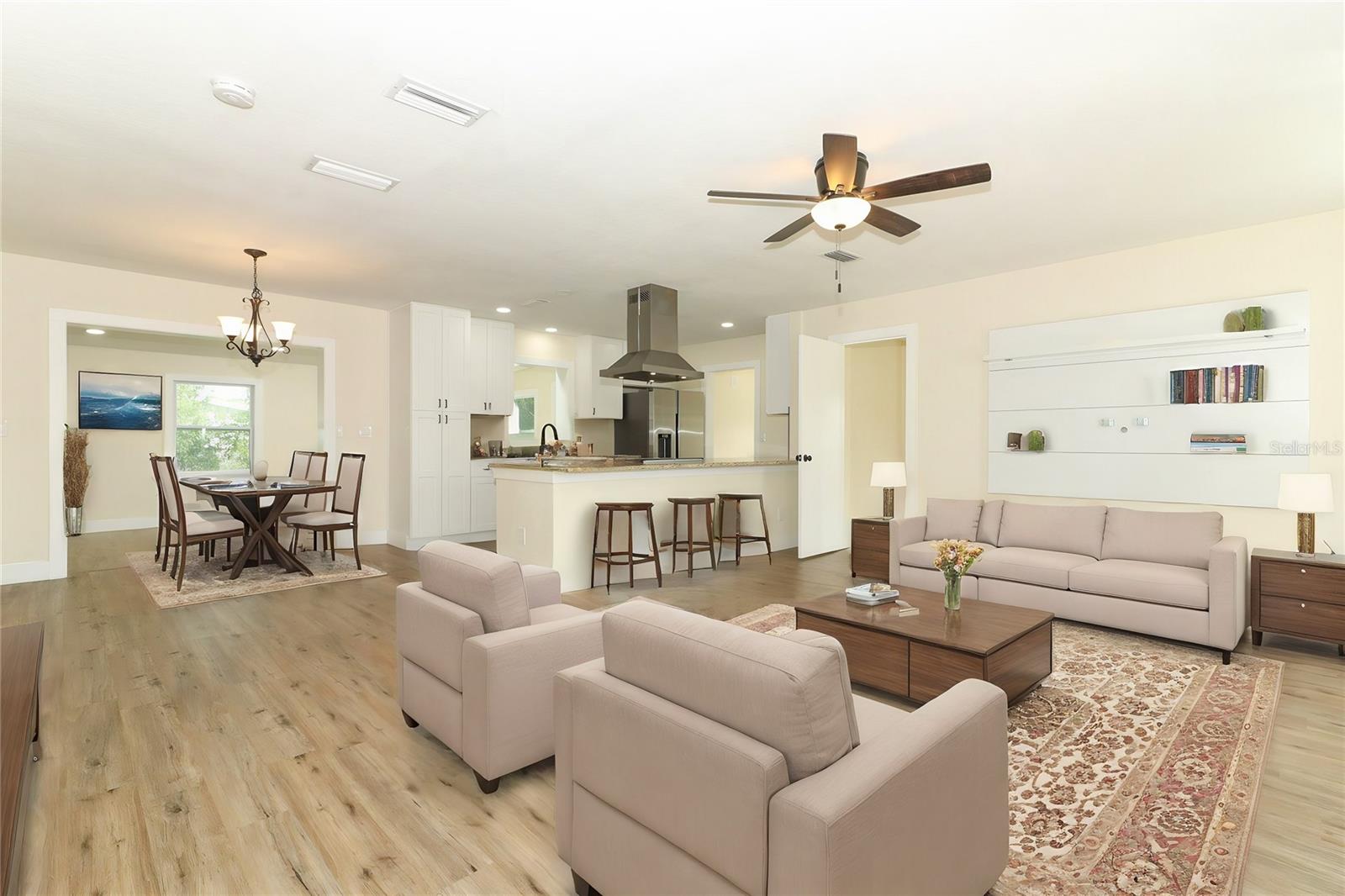 Uma ou mais fotos foram virtualmente encenadas. Bem-vindo a esta encantadora residência de 4 quartos e 2 banheiros, localizada em um terreno de esquina, no bairro estabelecido de Deltona Lakes. Ao entrar na casa, você é recebido nos espaços de entretenimento e jantar de conceito aberto, com uma bela cozinha no centro de tudo. Desfrute de acabamentos de bancadas de granito, eletrodomésticos de aço inoxidável, exaustor ventilado para o exterior e bar de jantar nesta cozinha recentemente remodelada. A localização da lavanderia está perfeitamente posicionada para funcionalidade e multitarefa, perto da cozinha. Escondida atrás da cozinha há uma ampla sala flexível, que também dá acesso à garagem e ao ar livre. À direita da sala principal encontra-se um quarto secundário, com facilidade de dupla função para um espaço polivalente com separação e privacidade. Movendo-se para a ala esquerda, você encontrará dois quartos secundários adicionais, banheiro no hall e retiro principal. O retiro principal inclui um amplo closet e banheiro privativo, com pias duplas, bancadas de granito e chuveiro de pé. Esta casa está em uma localização privilegiada, com proximidade ao Seminole Town Center, Stetson University, Daytona State College e muito mais, com menos de 10 minutos de carro da I-4, tornando a viagem pela Flórida Central muito fácil! Agende hoje mesmo seu tour privado.