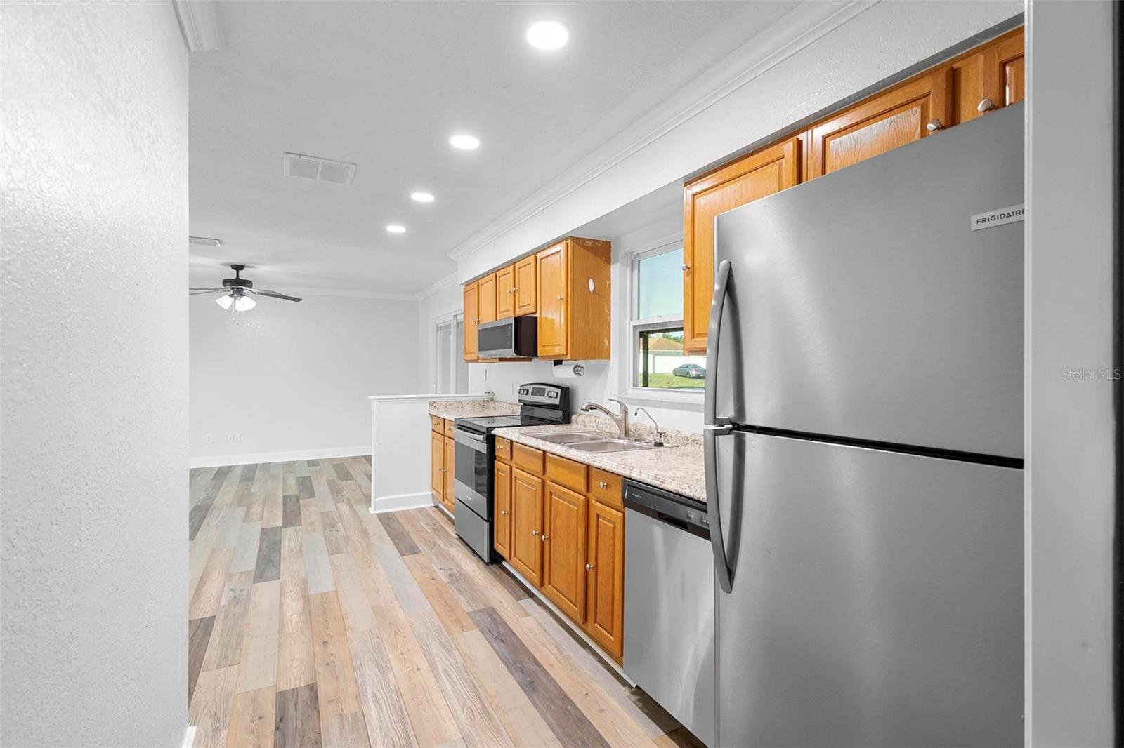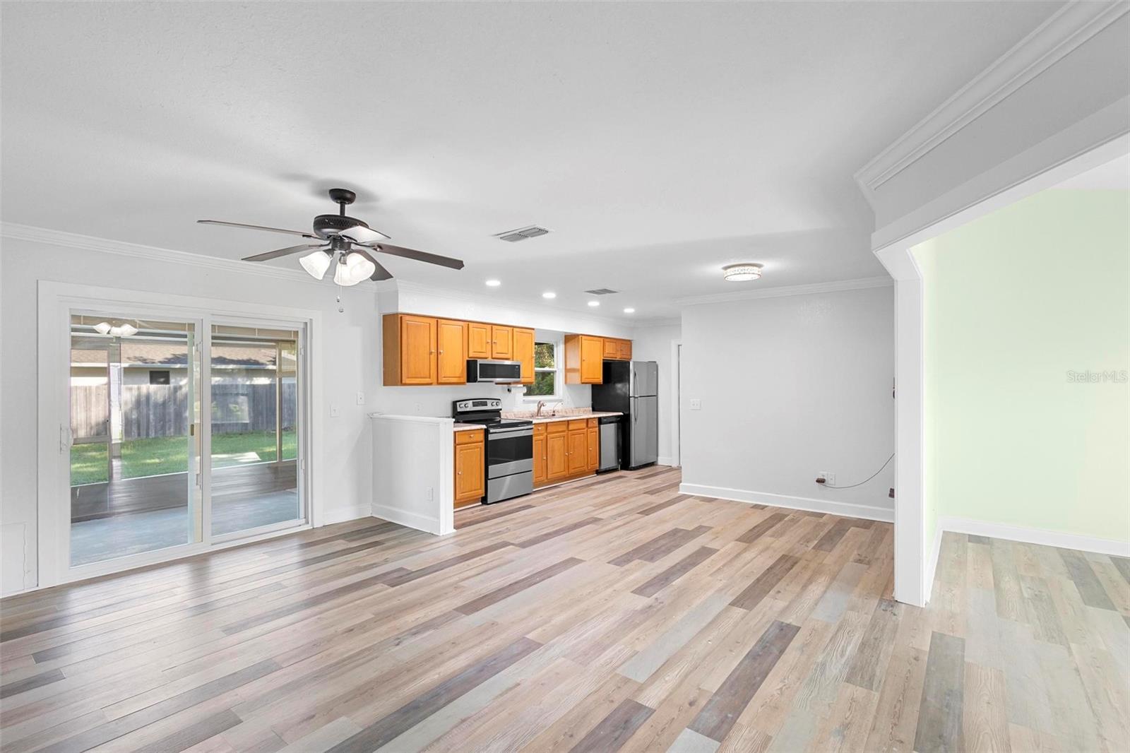 Bem-vindo ao 930 S Dean Circle, Deltona, FL 32738! Esta encantadora casa de 3 quartos e 2 banheiros oferece 1.118 pés quadrados de espaço confortável, perfeita para compradores de primeira viagem, famílias pequenas ou aqueles que desejam reduzir o tamanho. A propriedade foi cuidadosamente atualizada com NOVAS JANELAS e portas de vidro deslizantes traseiras externas, substituídas em 2020. O interior apresenta pintura fresca e piso novo e elegante, criando uma atmosfera luminosa e convidativa. A varanda traseira, ampliada e protegida em 2020, oferece um espaço perfeito para relaxar ou se divertir enquanto aproveita o lindo clima da Flórida. O telhado também foi substituído em 2018. O banheiro principal foi reformado com bom gosto, com box amplo e pia individual. Situada no bairro de Deltona Lakes, esta casa combina atualizações modernas com charme clássico. Convenientemente localizado perto de lojas, restaurantes e outras comodidades, o 930 S Dean Circle oferece conforto e conveniência. Não perca a oportunidade de fazer deste o seu novo endereço!